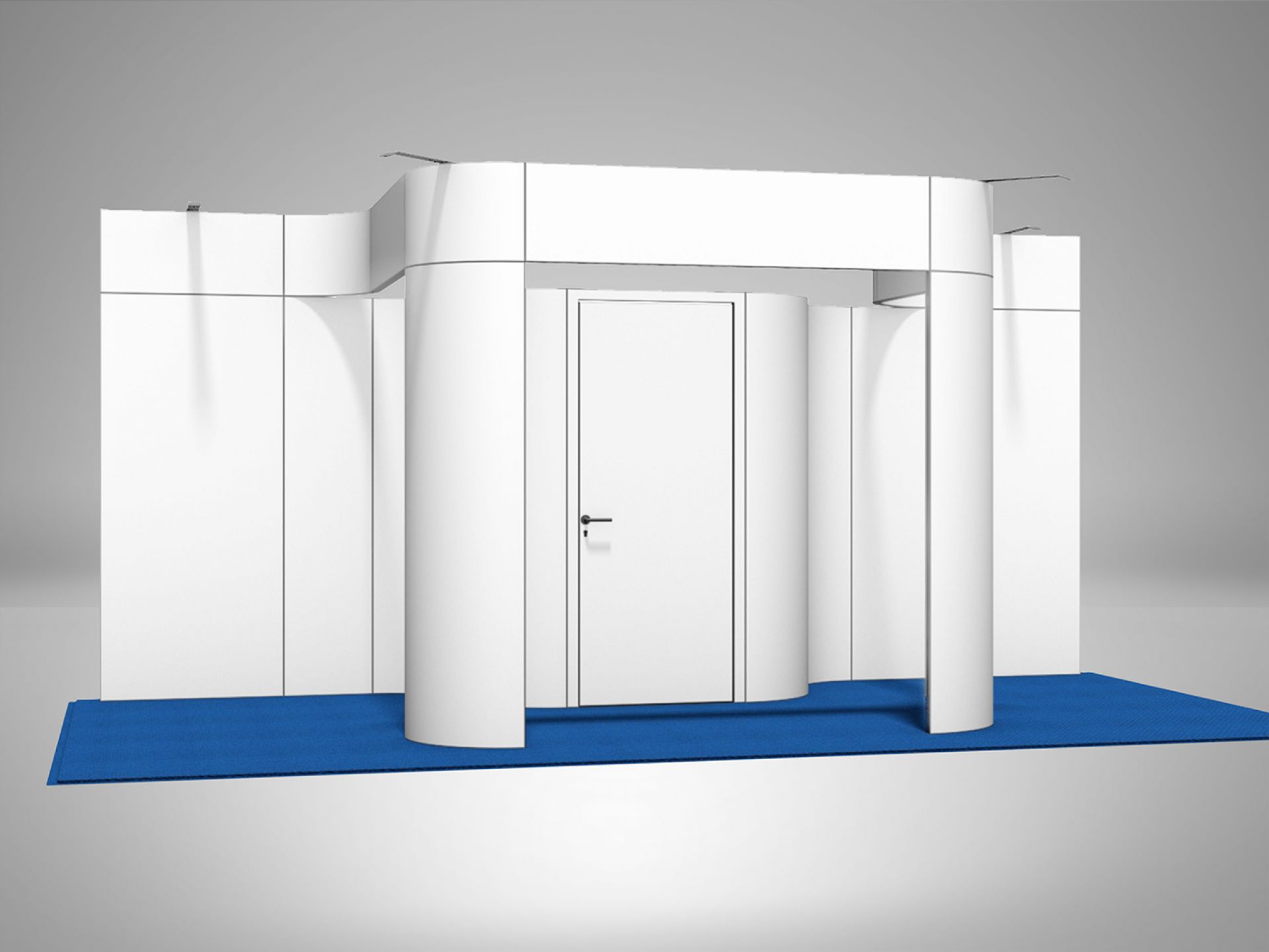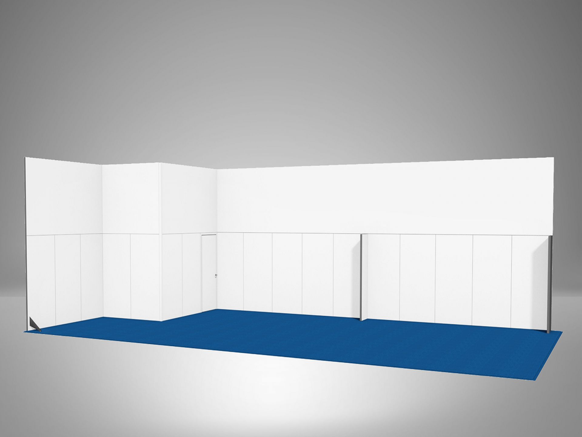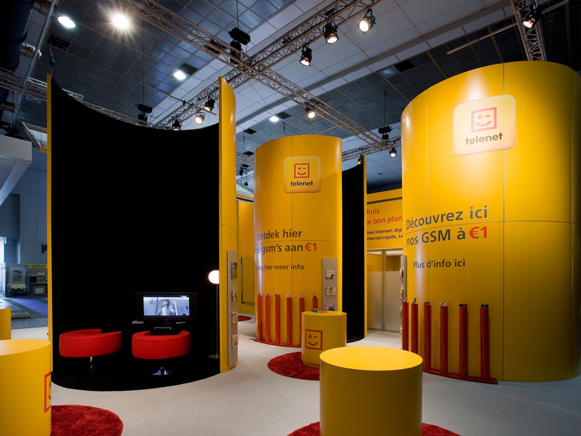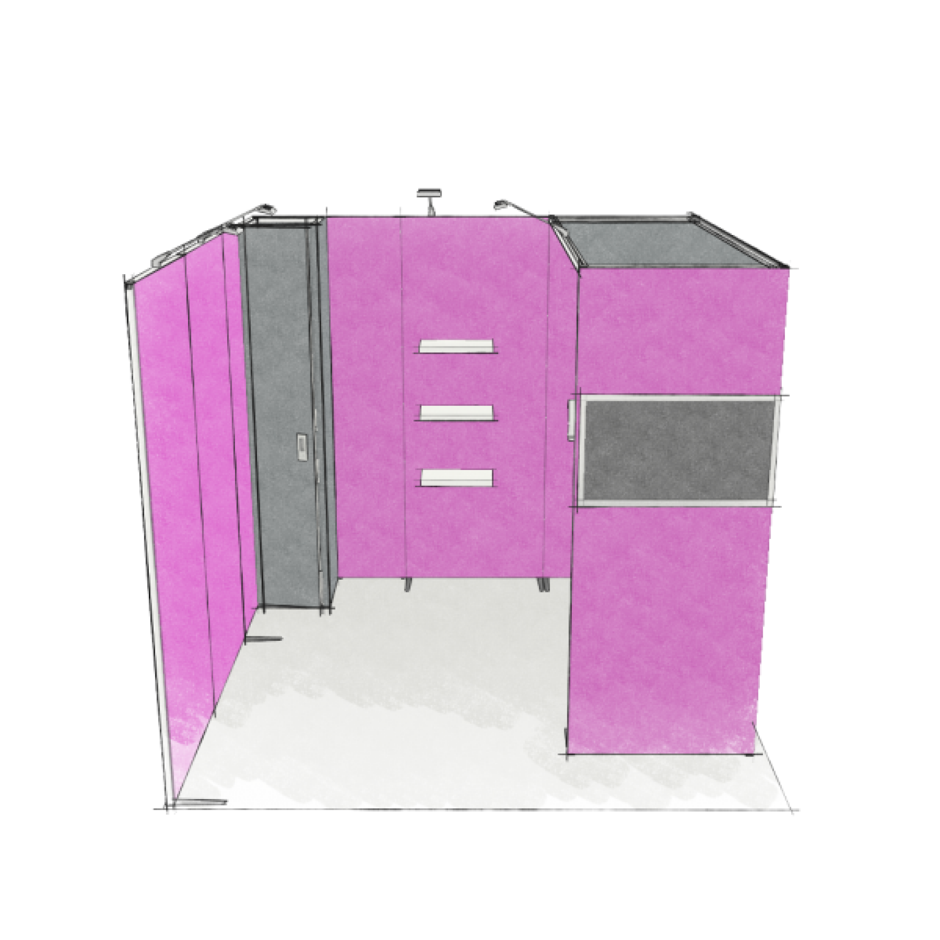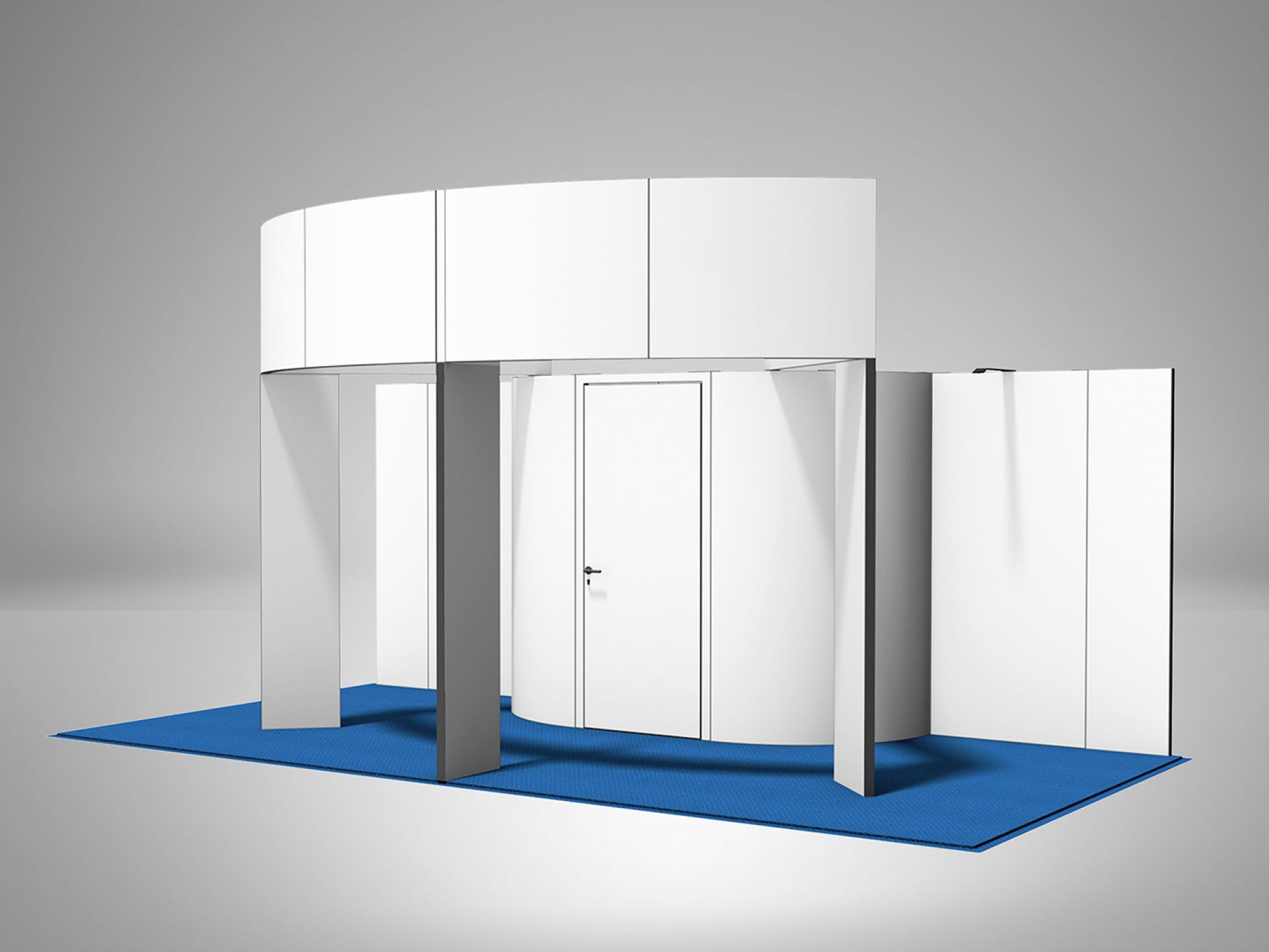 Modulaire et évolutif : les cadres se connectent entre eux et les accessoires optionnels tels que TV, étagères, éclairage transforment les cadres en stands d'exposition.
