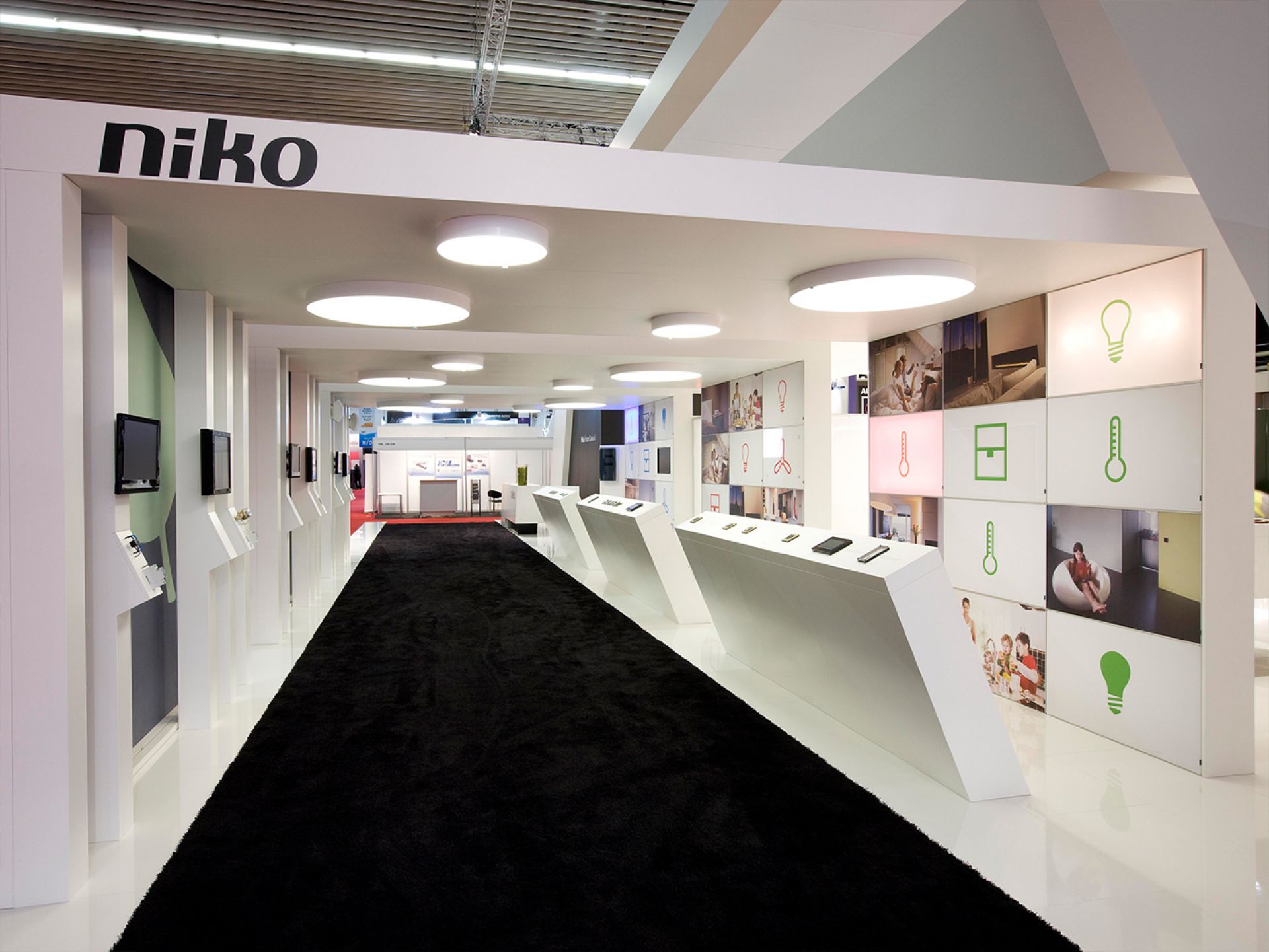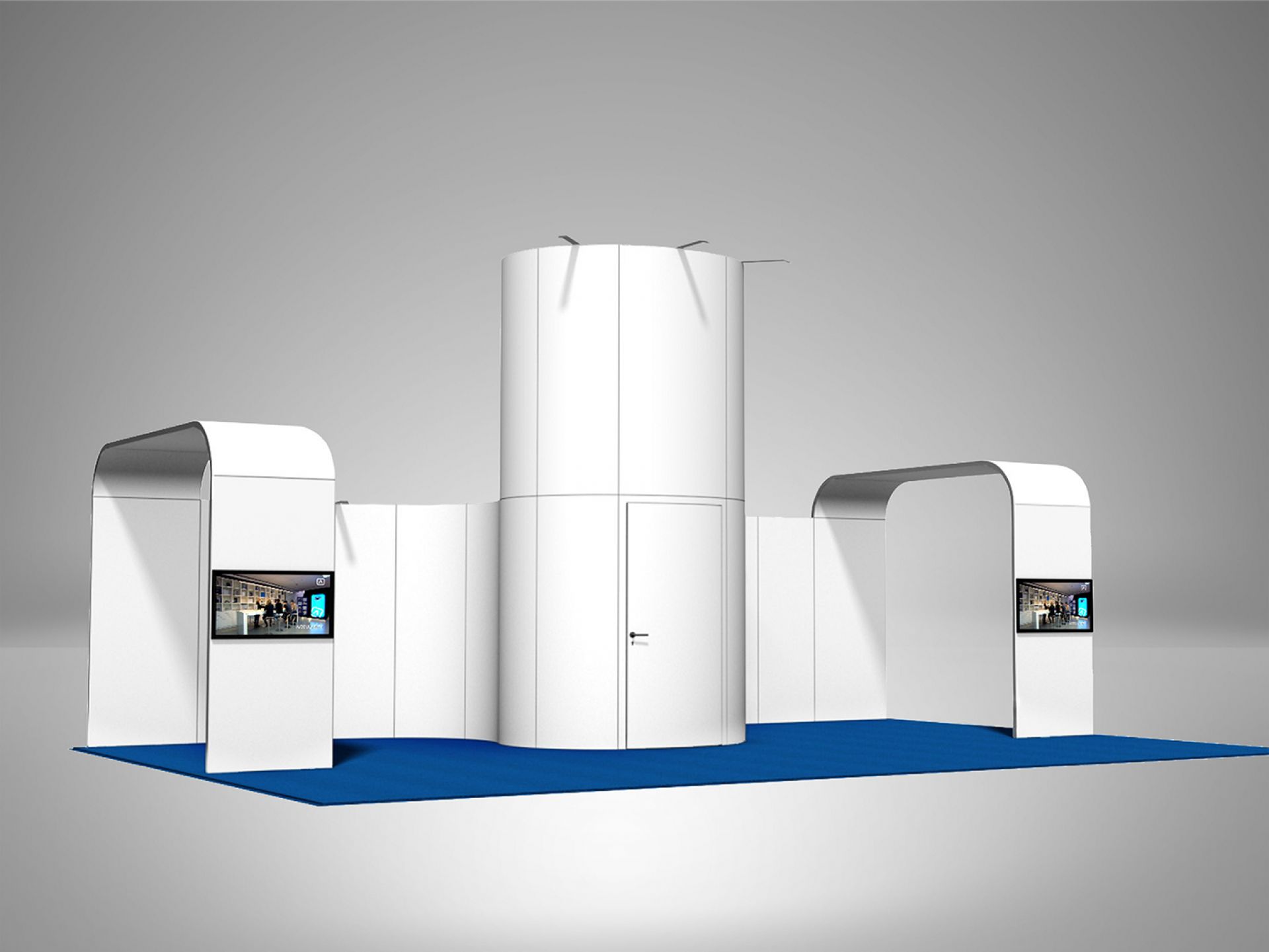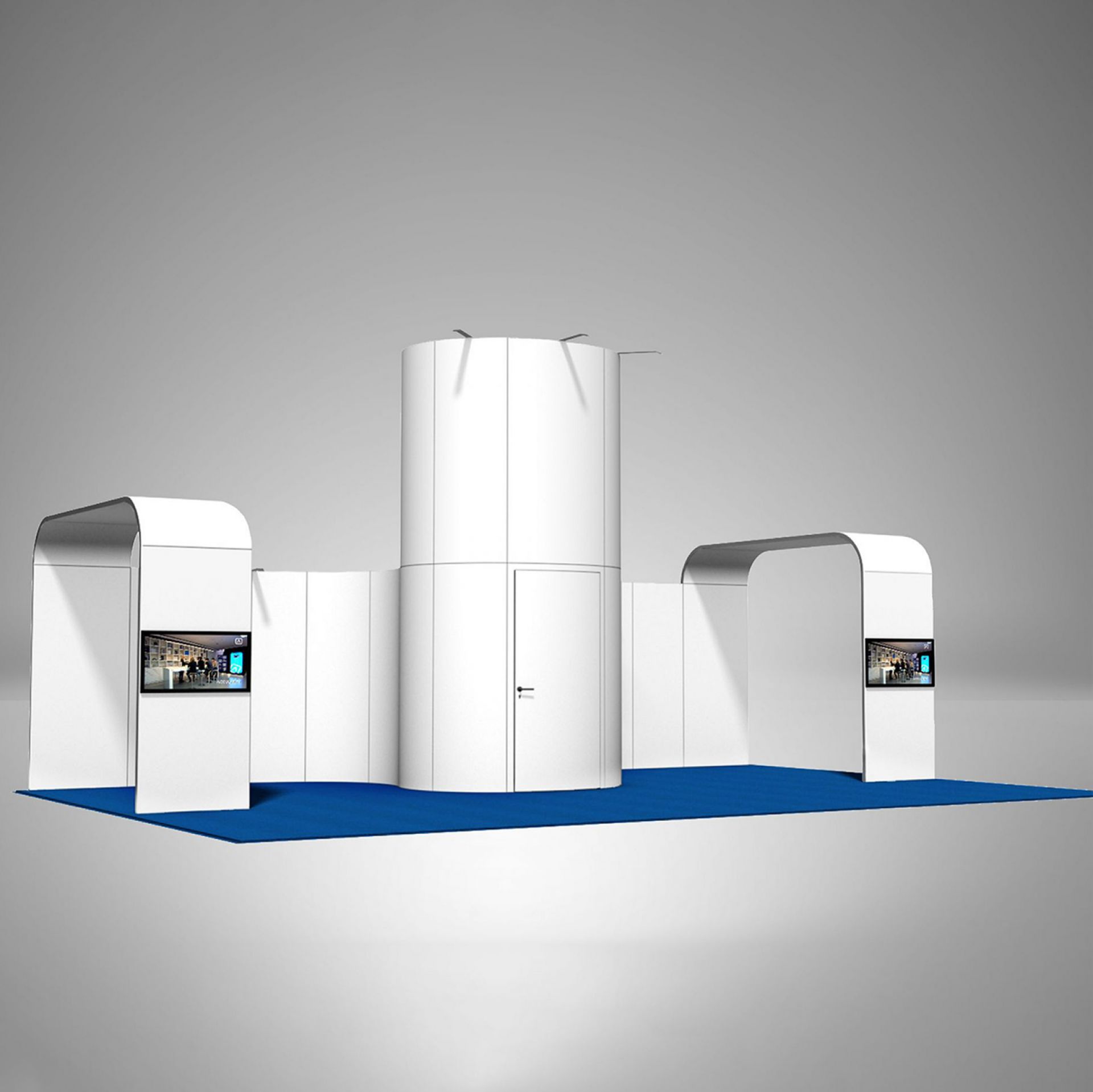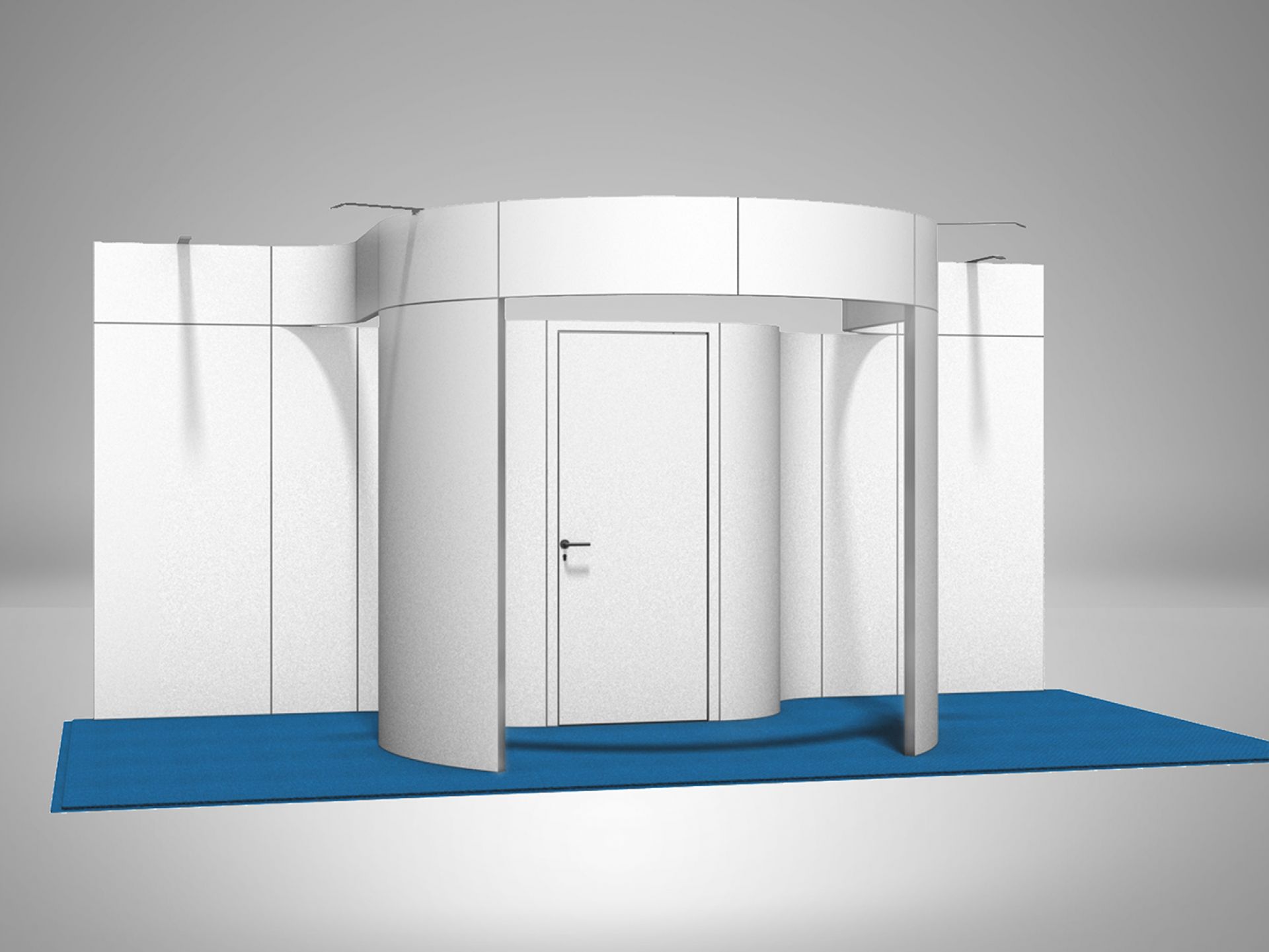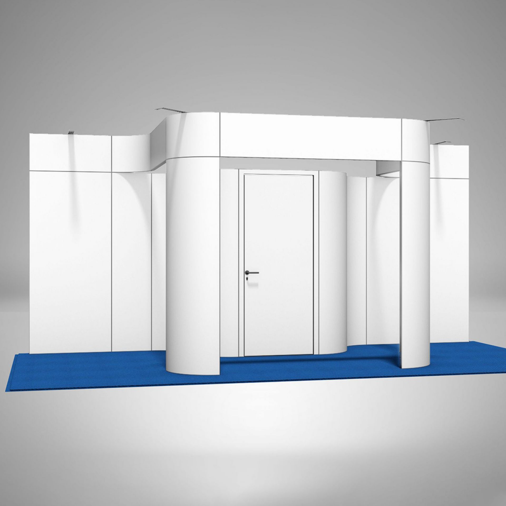 Modulaire et évolutif : les cadres se connectent entre eux et les accessoires optionnels tels que TV, étagères, éclairage transforment les cadres en stands d'exposition.