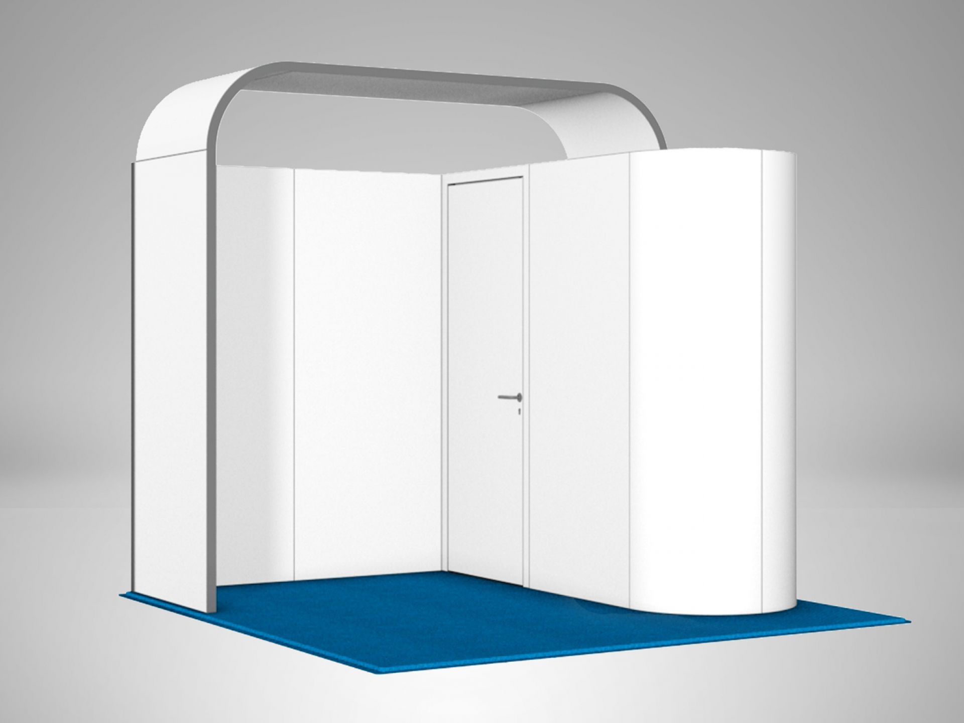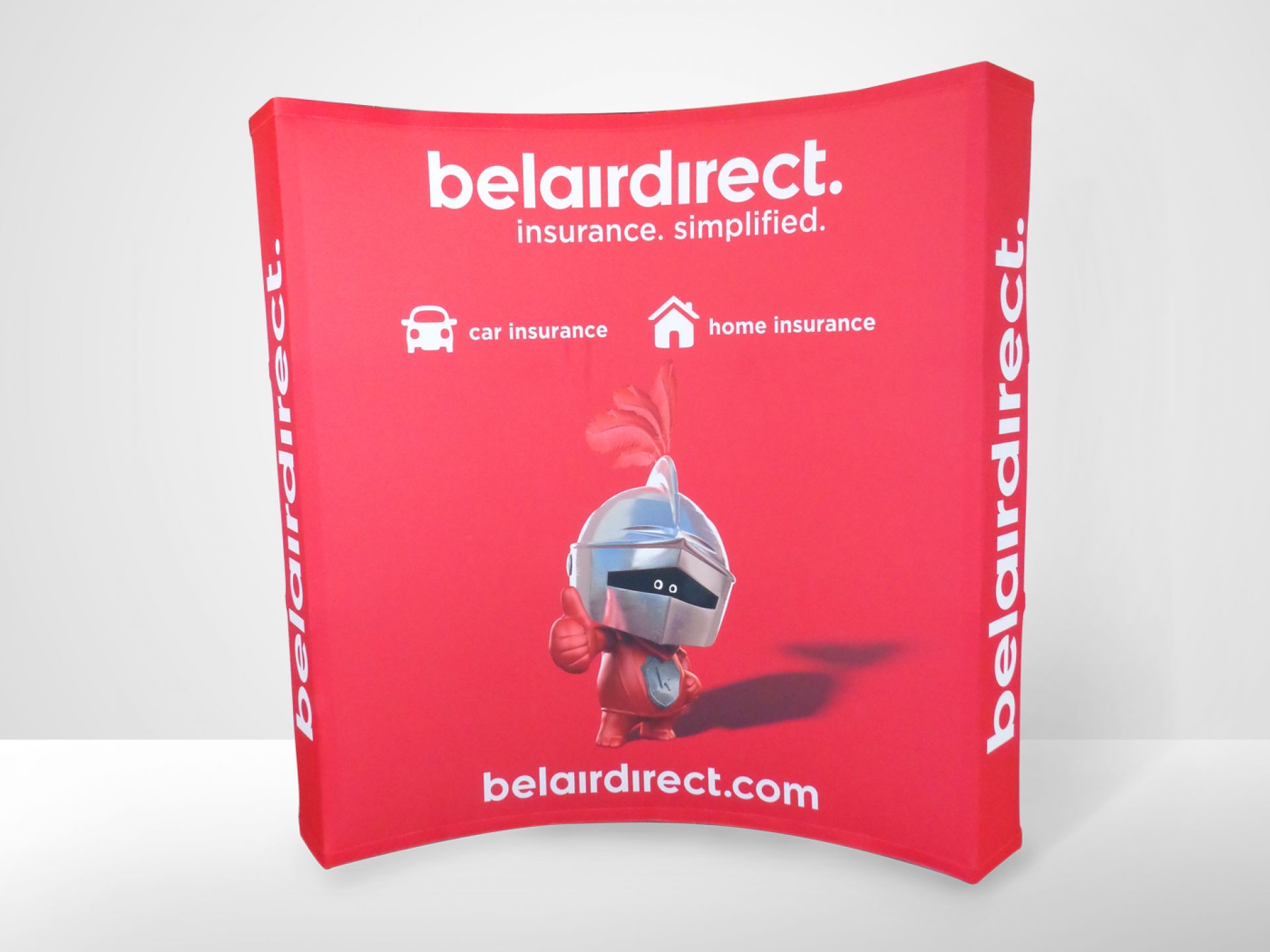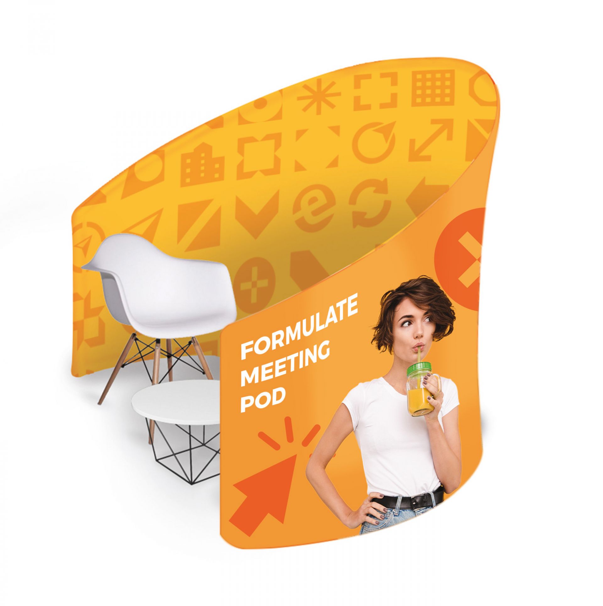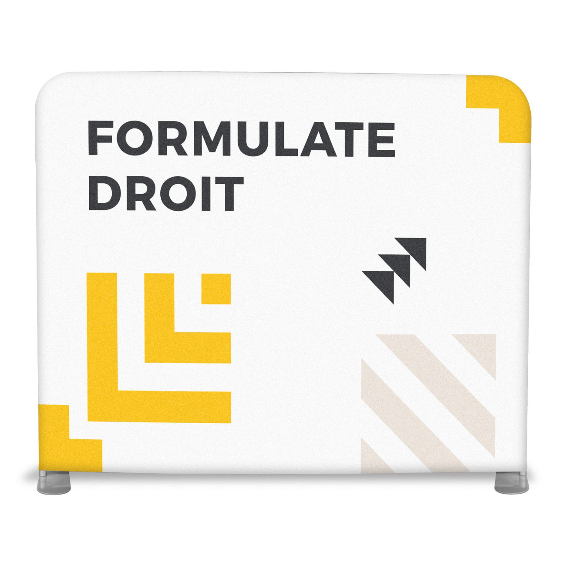 Le Virage est un stand parapluie textile courbe. L'association du stand d'exposition pliable avec un visuel en tissu permet de créer un impact visuel en quelques minutes seulement.