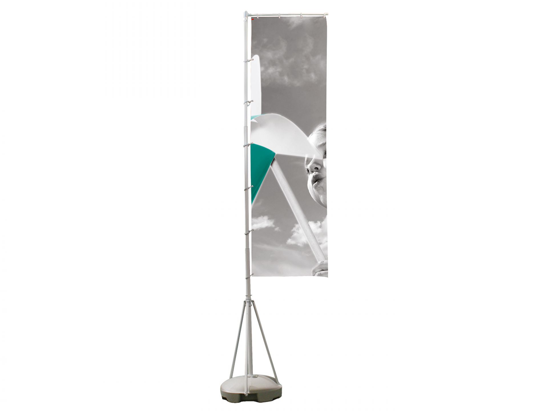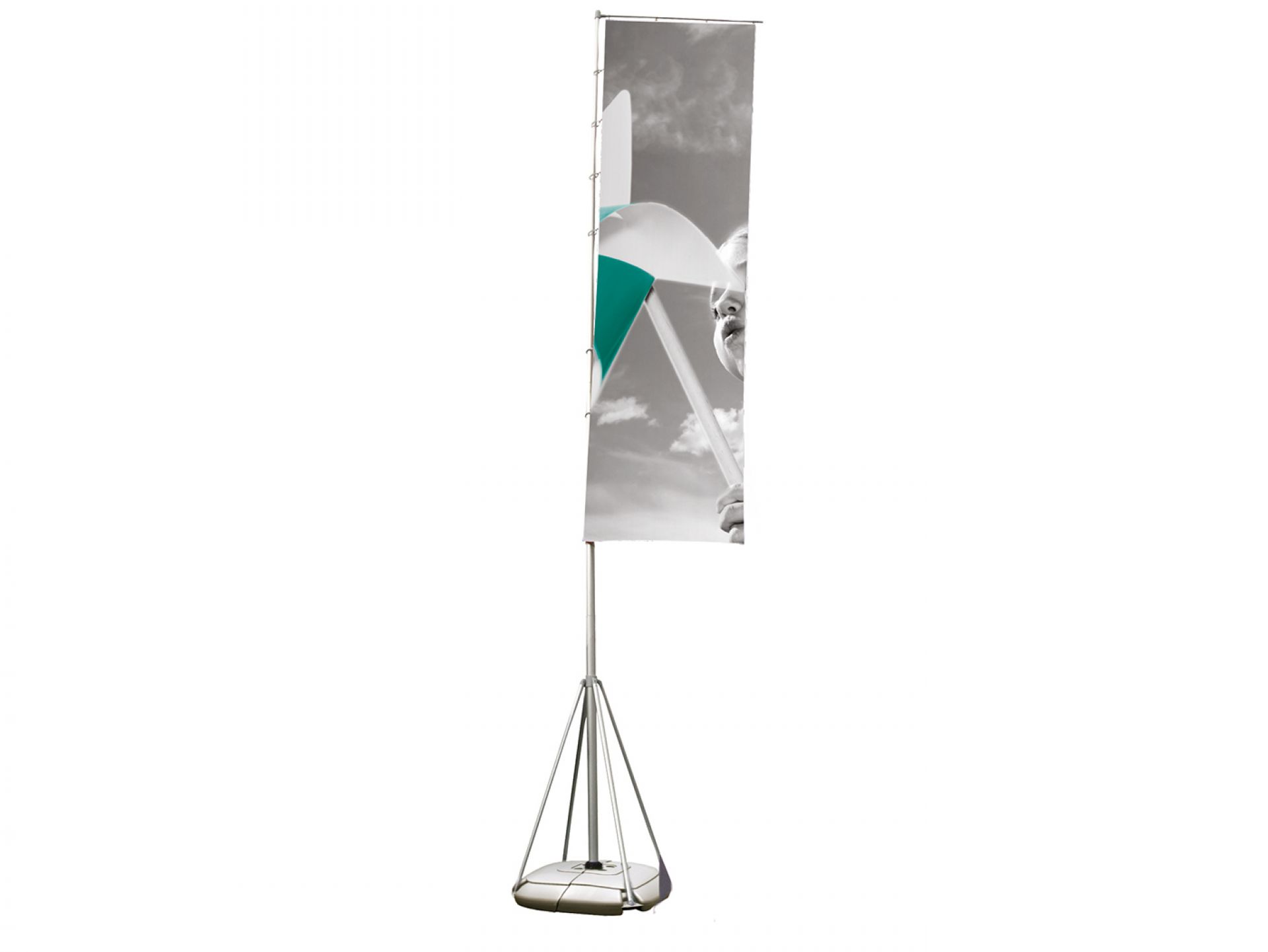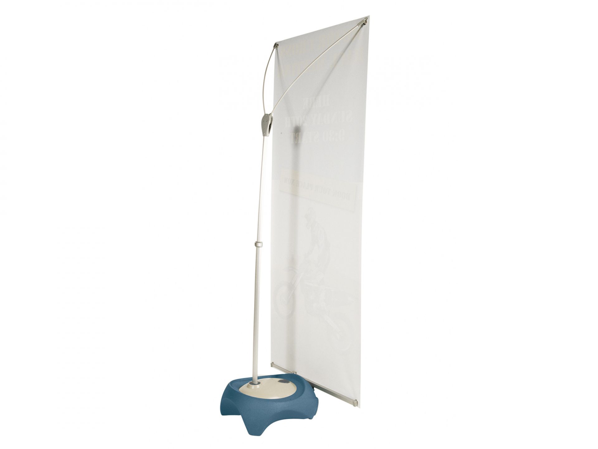 La présentation de vos visuels reste impeccable en toutes circonstances. Pour plus de stabilité, le réservoir est rempli d’eau et pèse ainsi 25 kg.