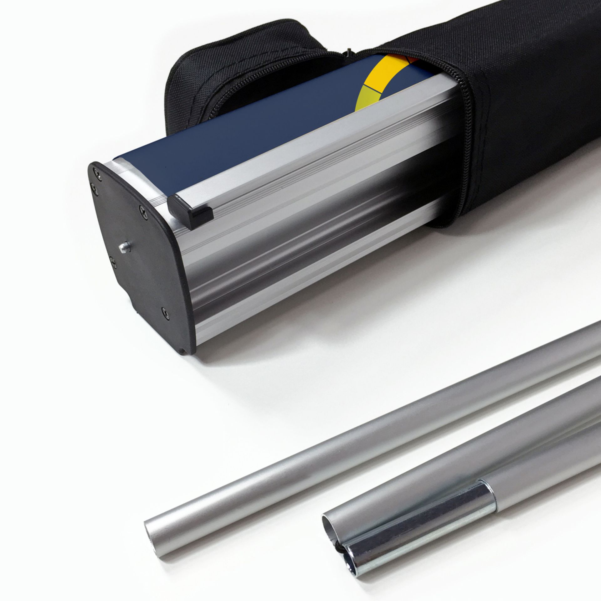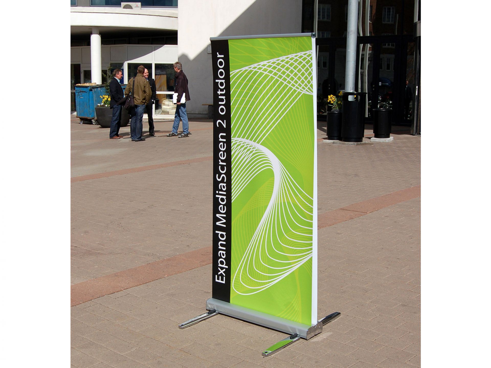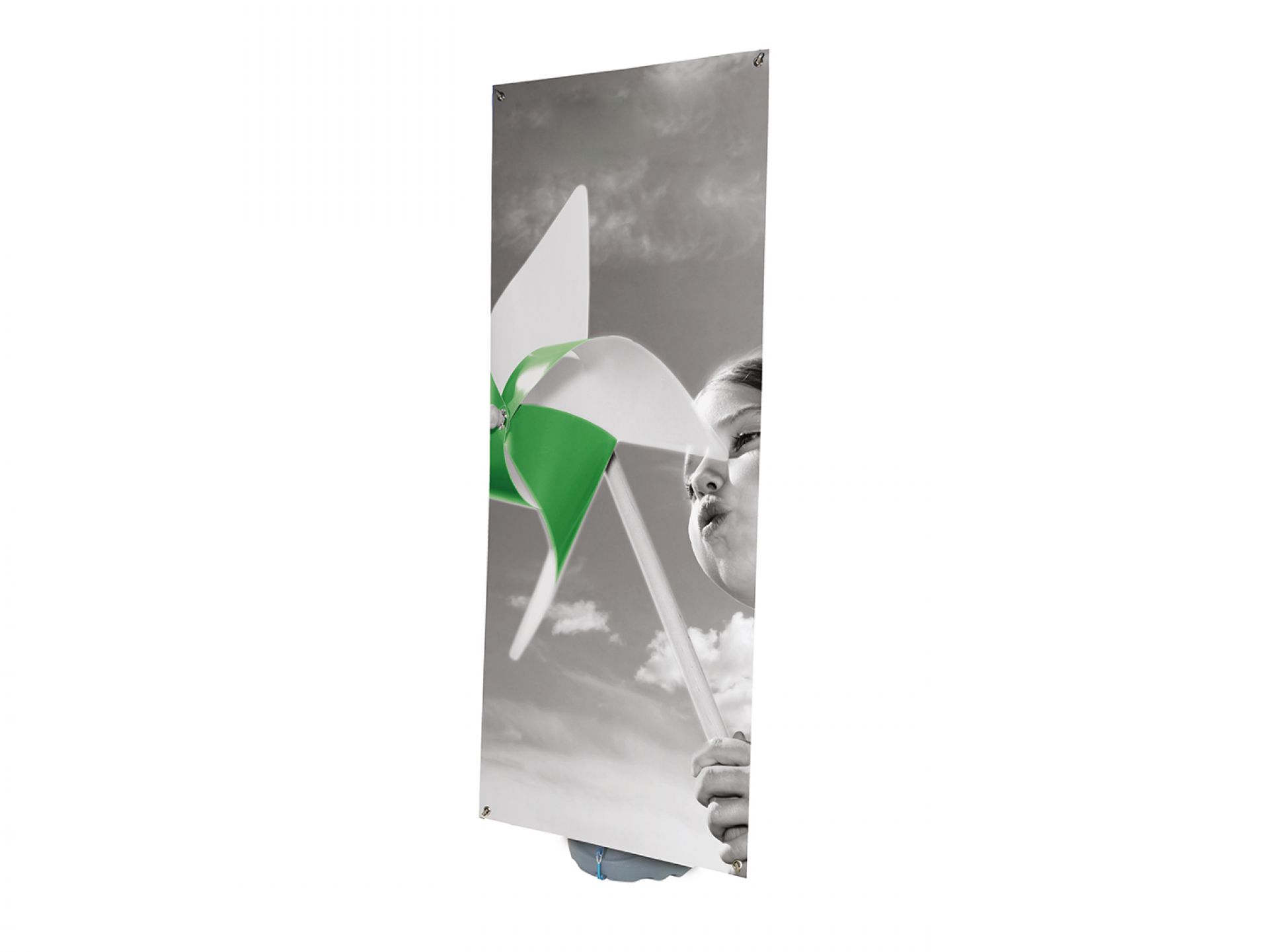 La présentation de vos visuels reste impeccable en toutes circonstances. Pour plus de stabilité, le réservoir est rempli d’eau et pèse ainsi 25 kg.