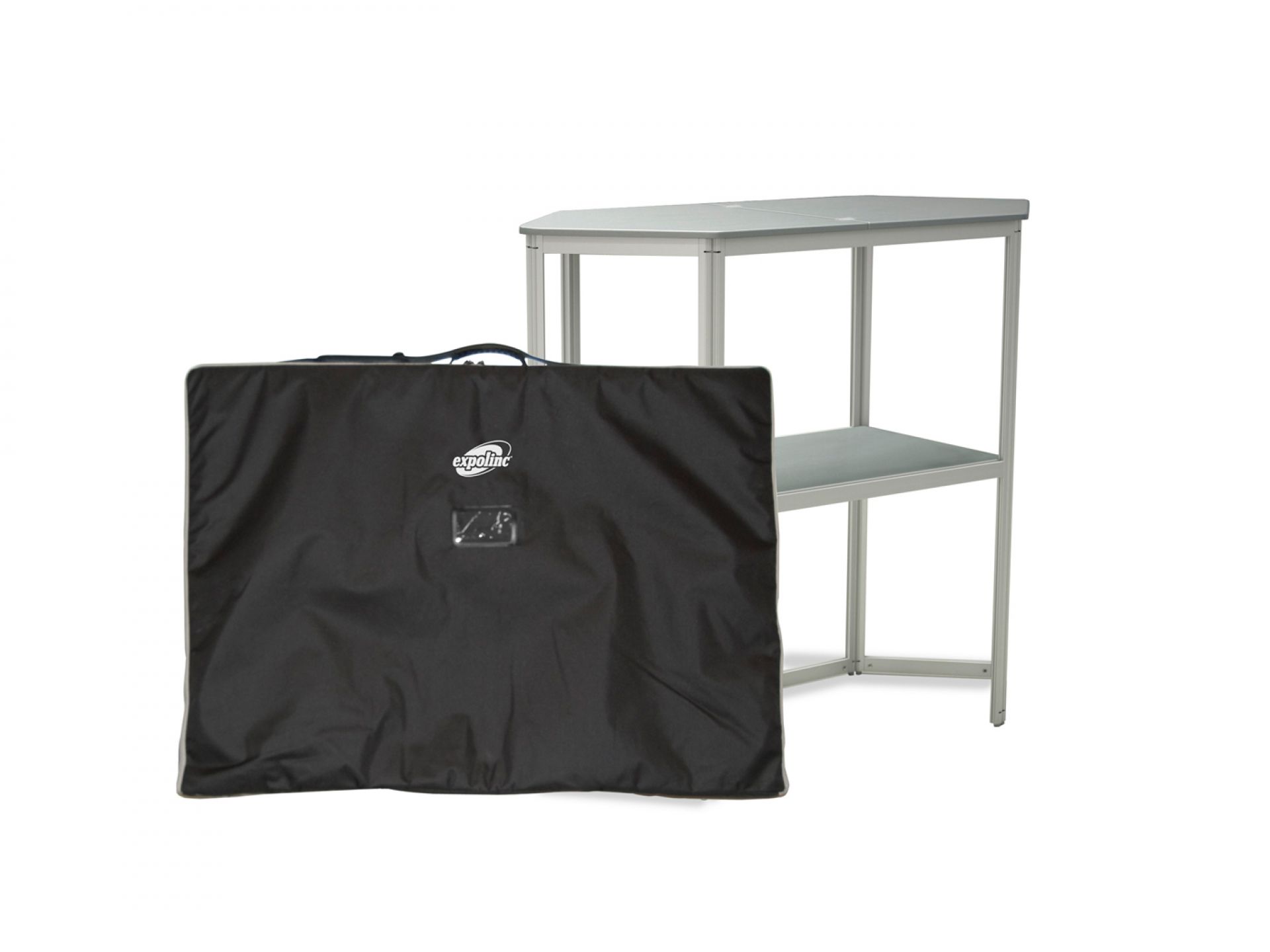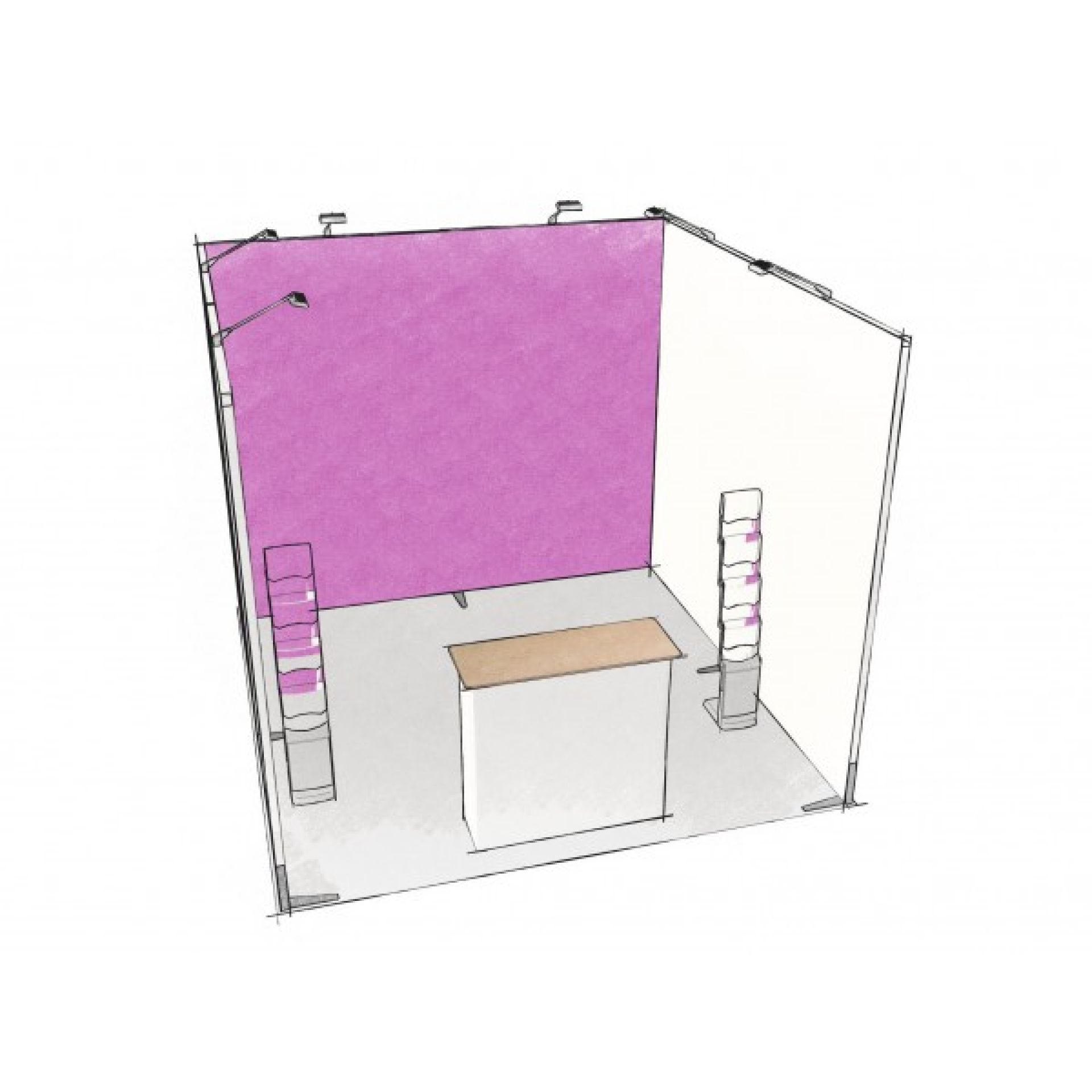 Disponible en largeur de 1 ou 2 mètres, ce comptoir d’exposition offre une tablette solide pour vos brochures, produits ou matériel promotionnel.