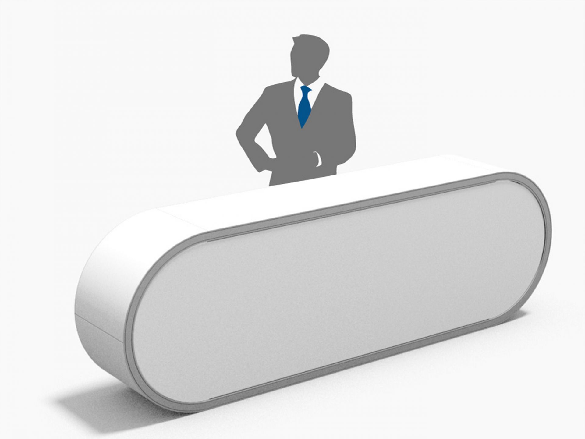 Le mini enrouleur Breeze est idéal pour une utilisation sur une table, un comptoir ou un bureau d’accueil.