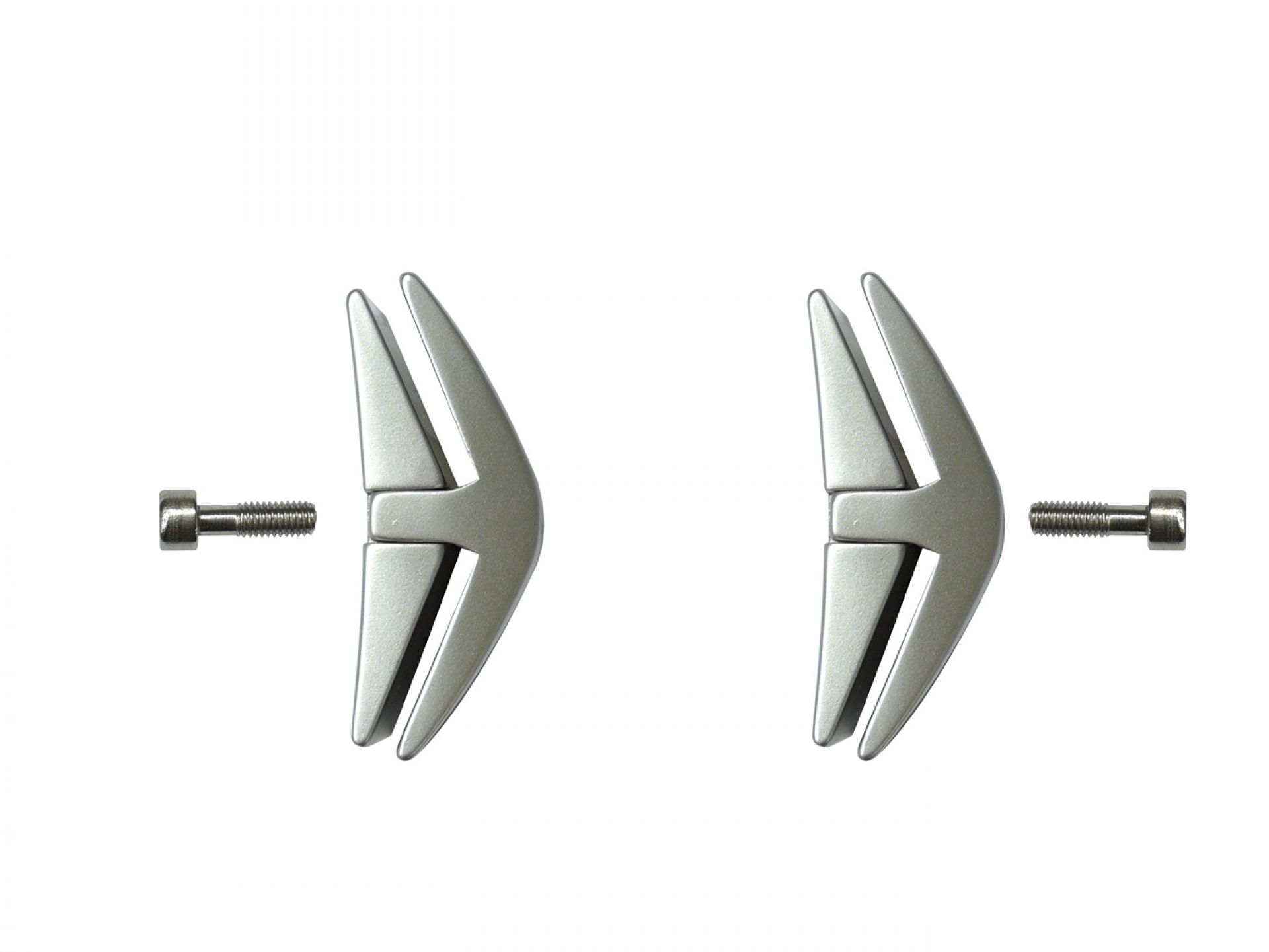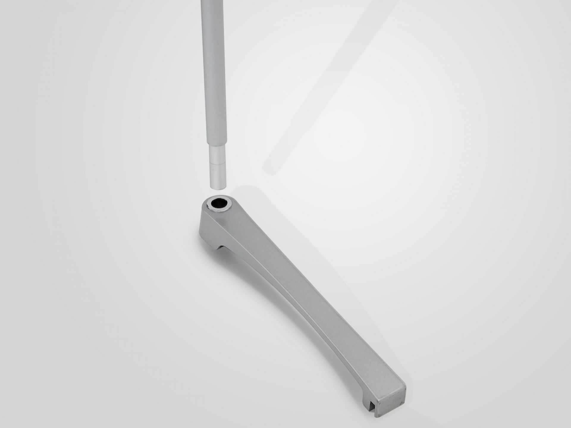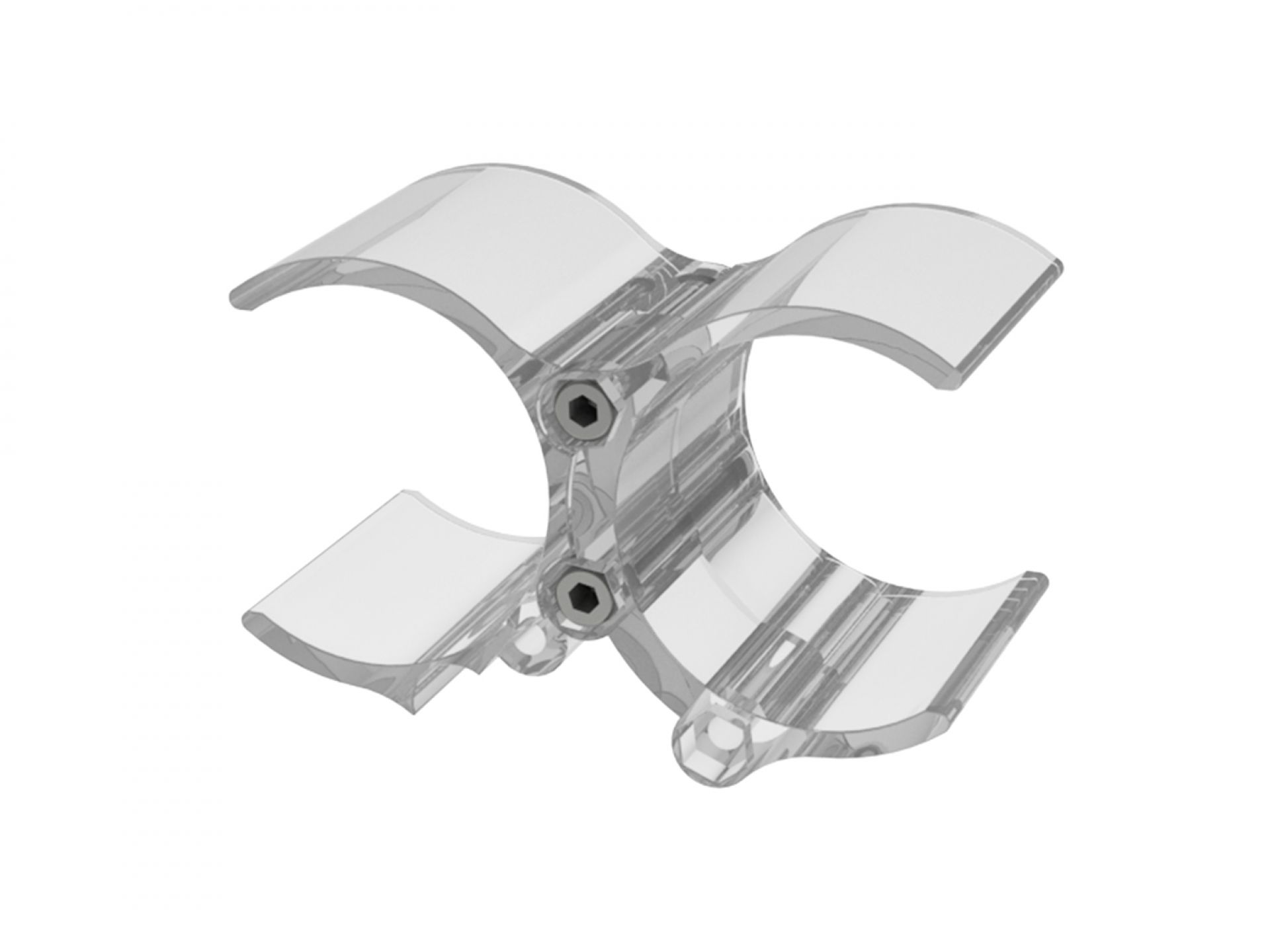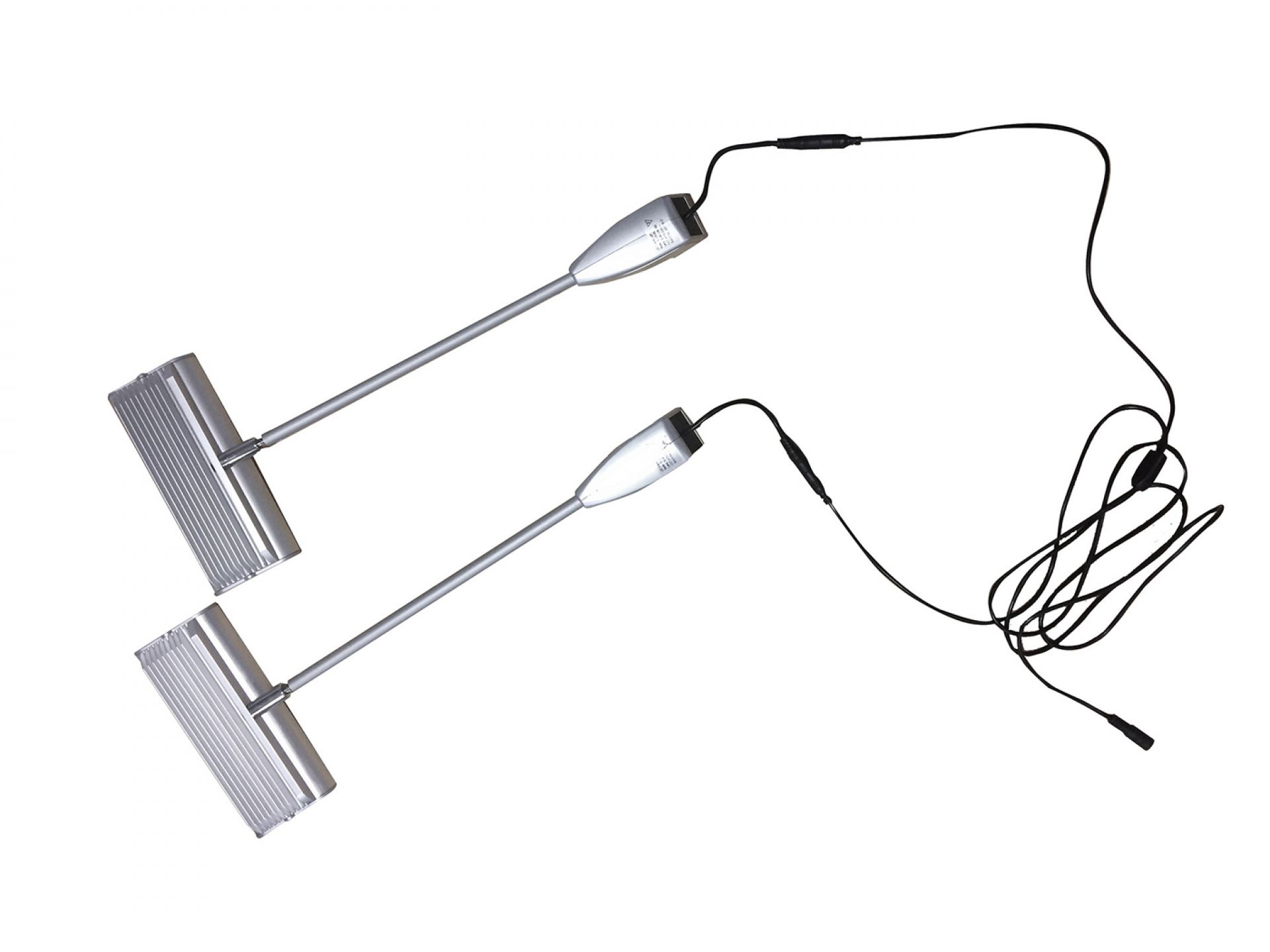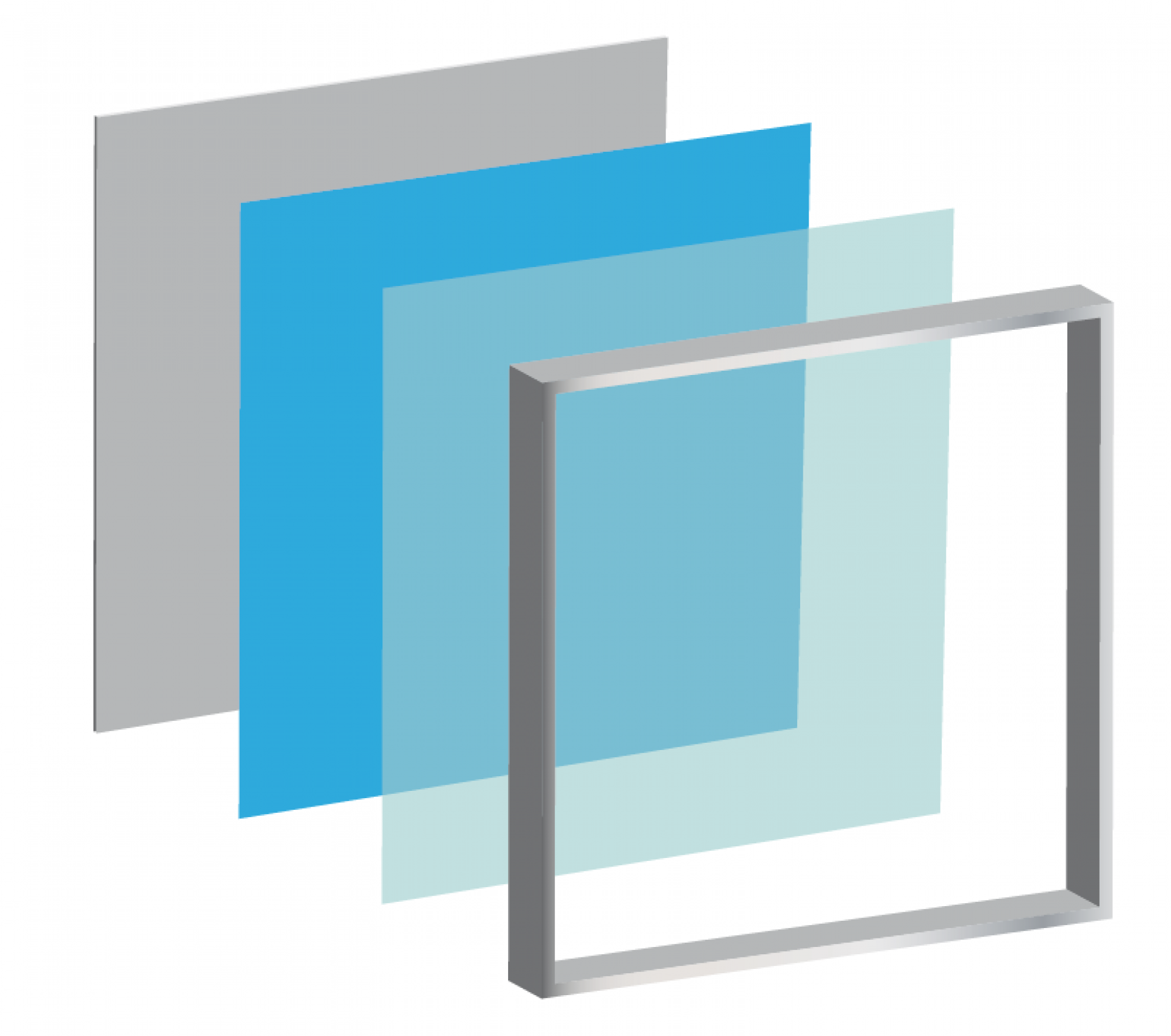 Le panneau de projection double-face Nova est composé d’un cadre incurvé en aluminium argenté, d’un bras de projection en aluminium, d’embouts en plastique gris et de films de couverture transparents en polycarbonate (brillant/mat).