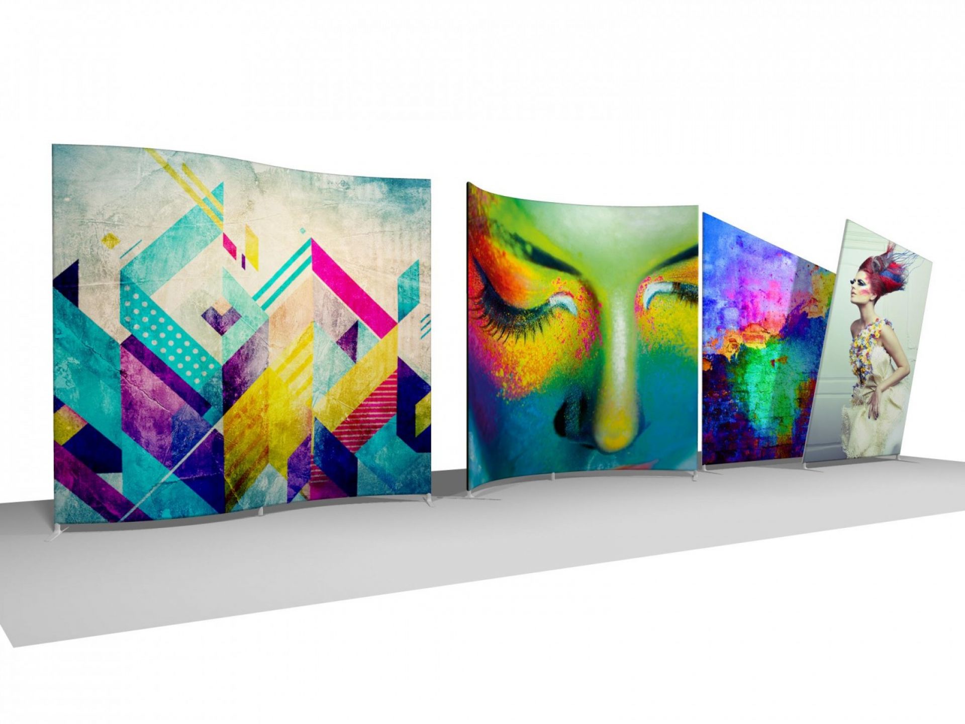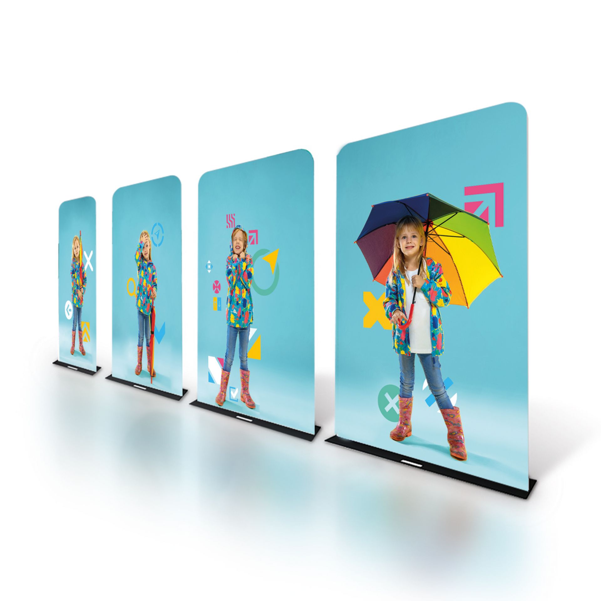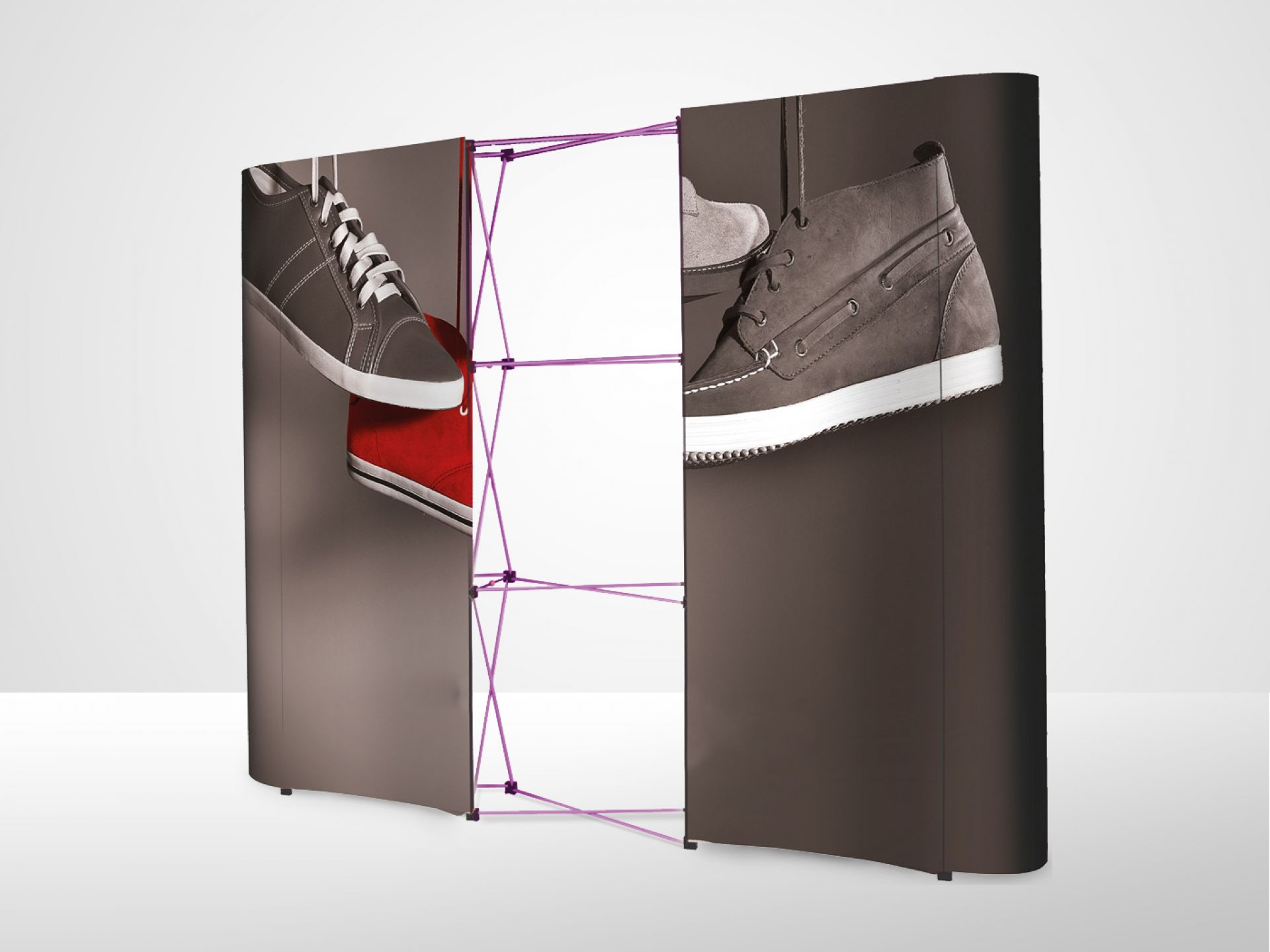 Avec sa structure invisible, cette gamme est polyvalente et peut facilement se transformer en stand d'exposition, murs d'image, paravent, fond de stand ou simple totem.