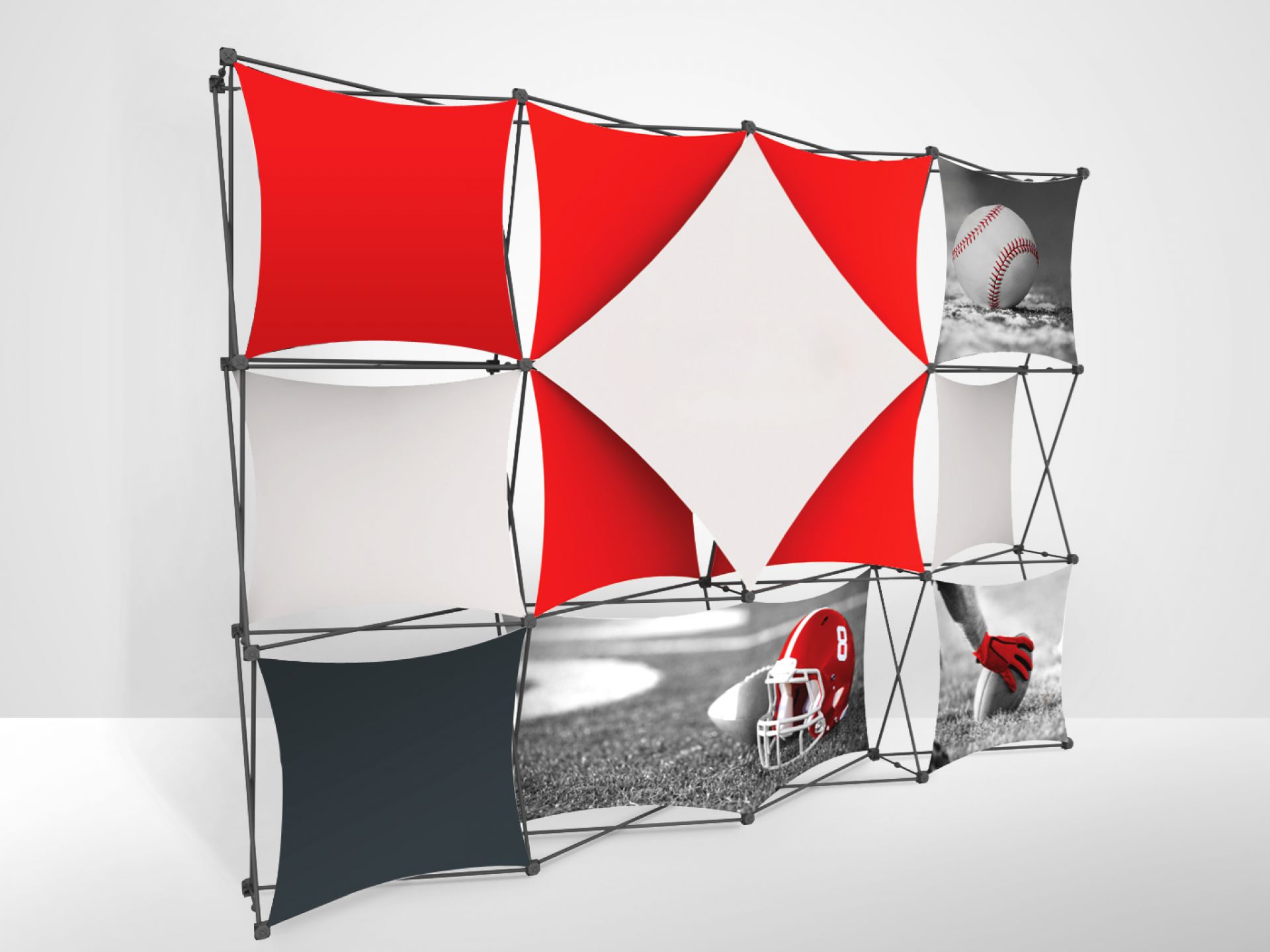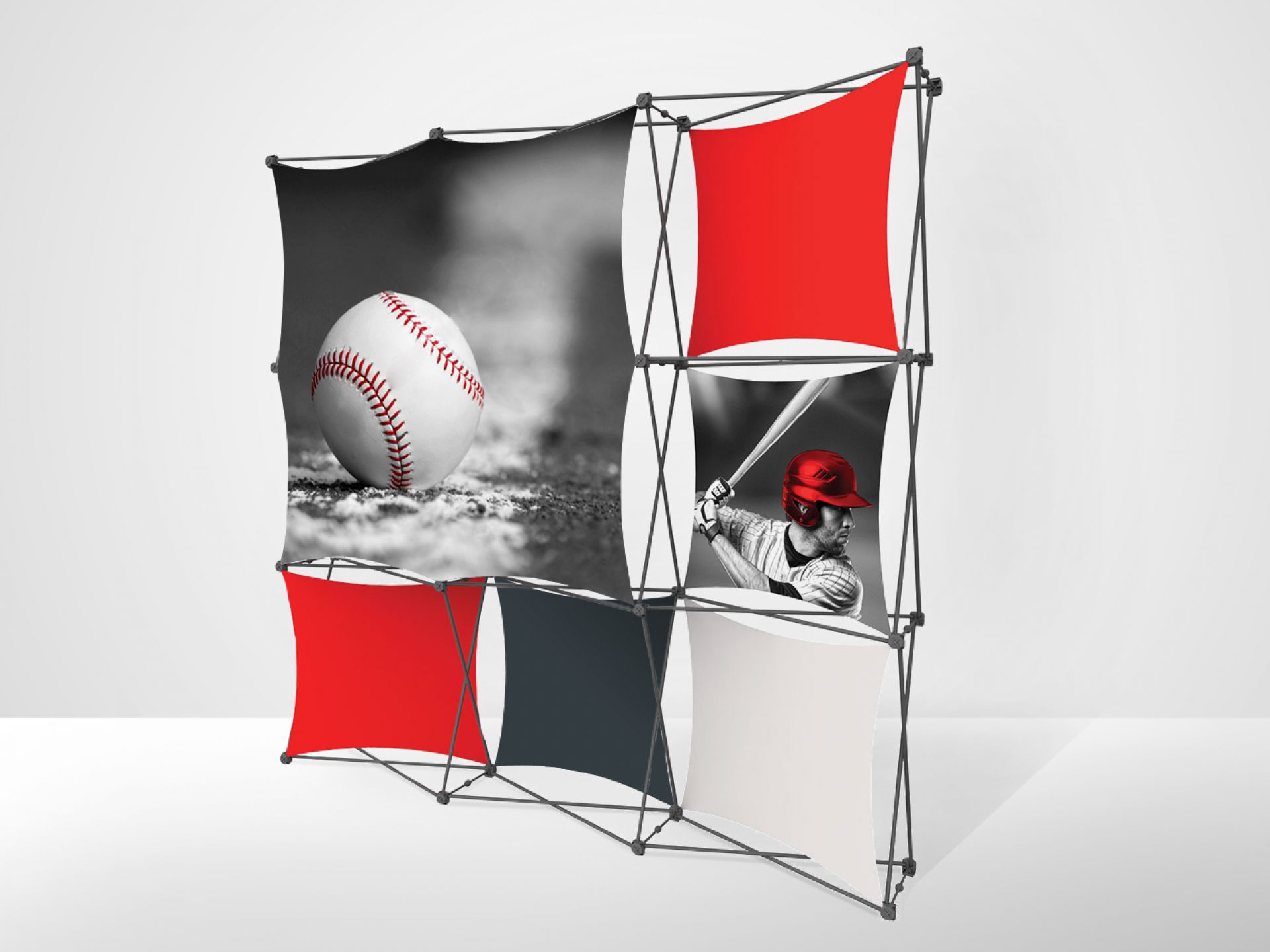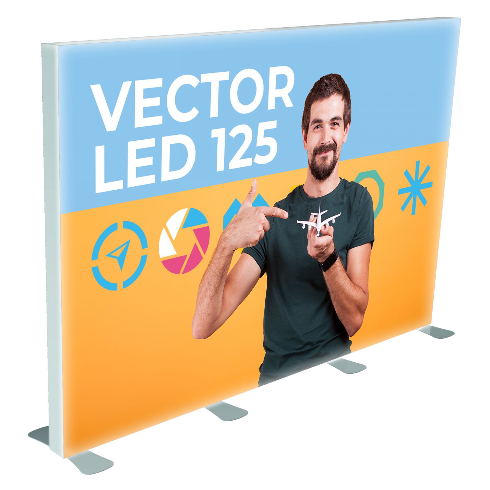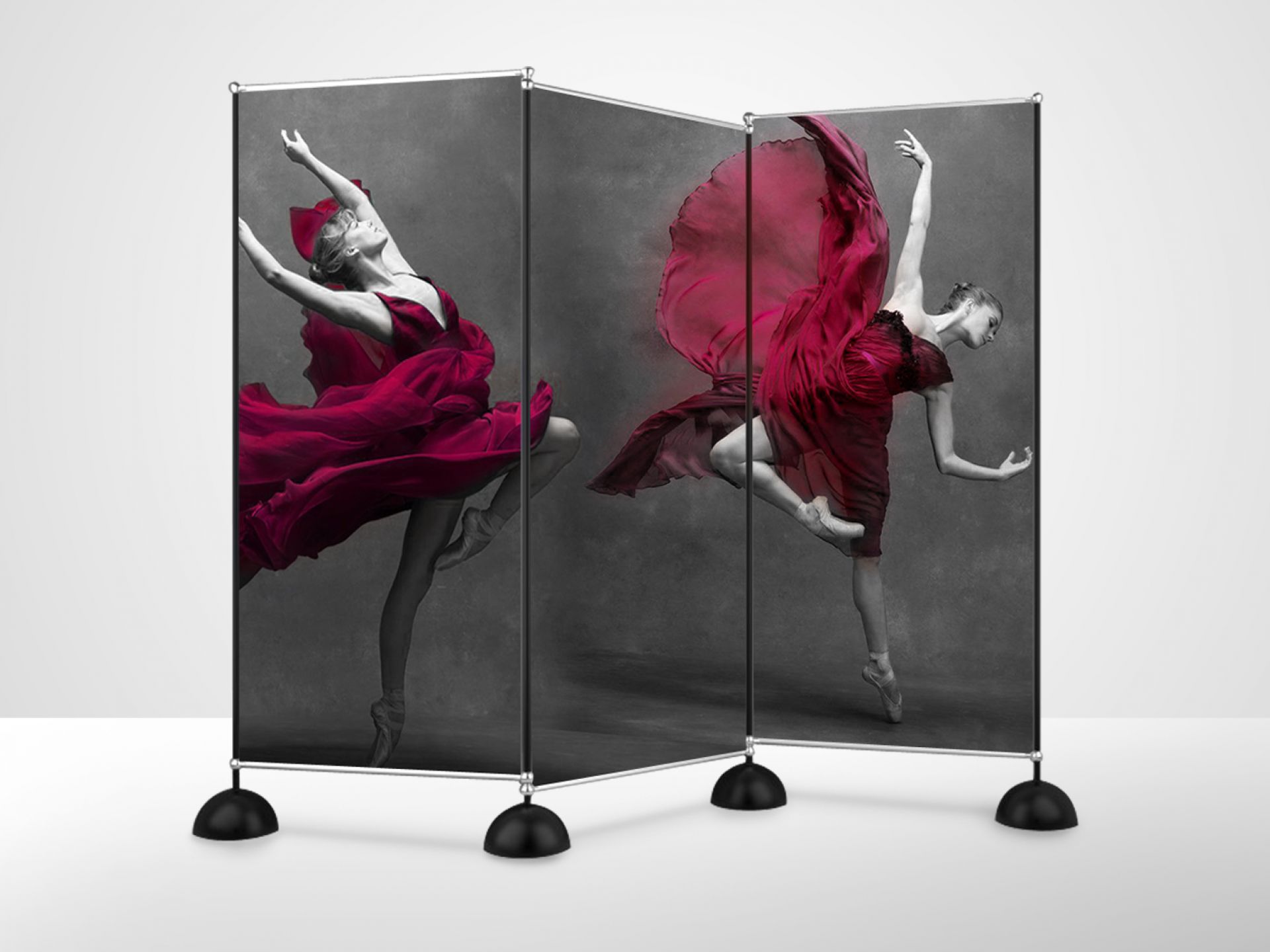Avec sa structure invisible, cette gamme est polyvalente et peut facilement se transformer en stand d'exposition, murs d'image, paravent, fond de stand ou simple totem.