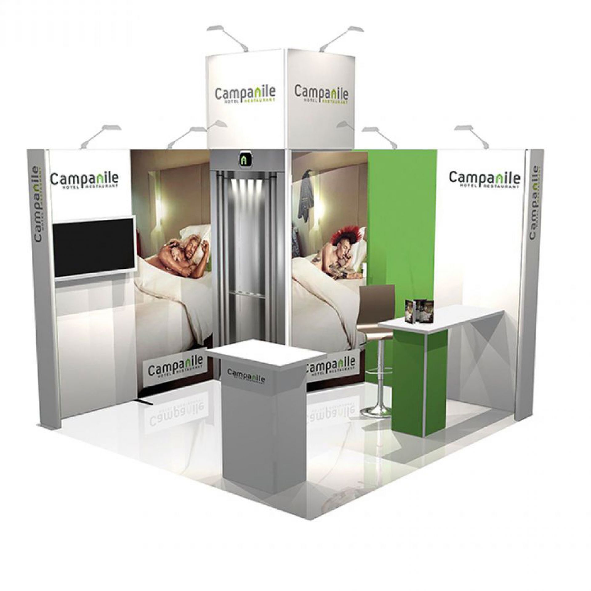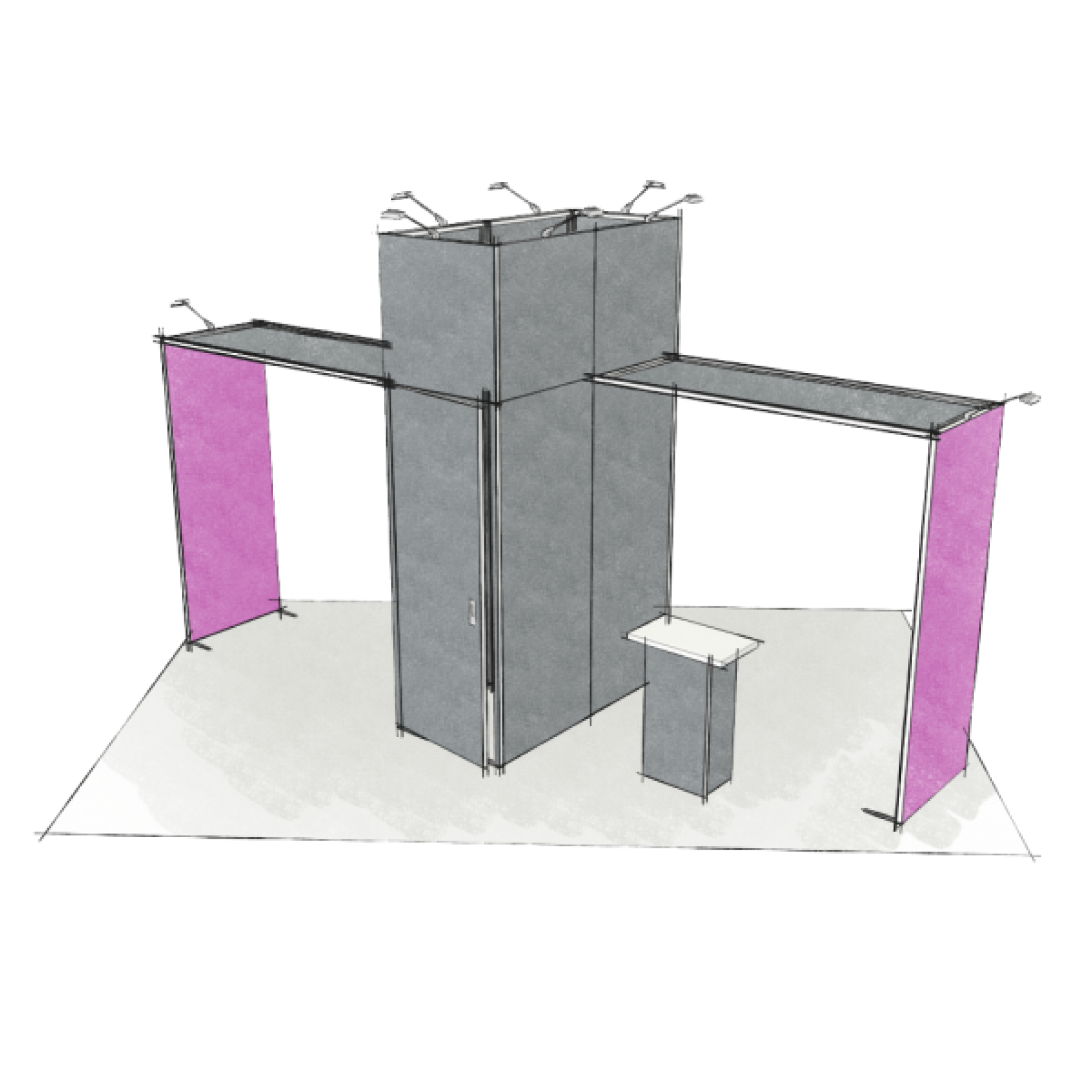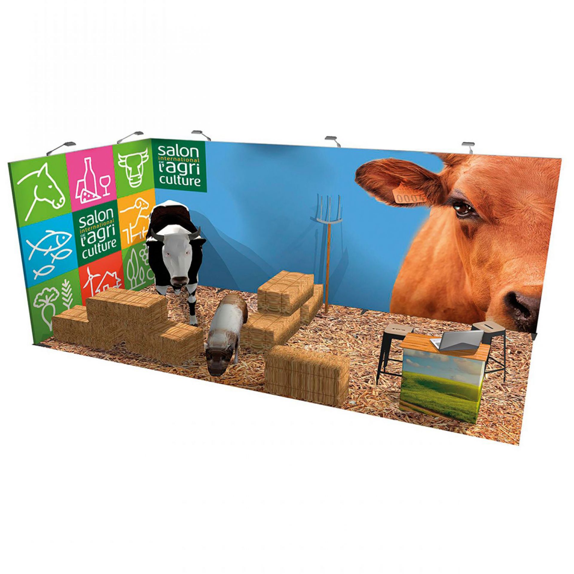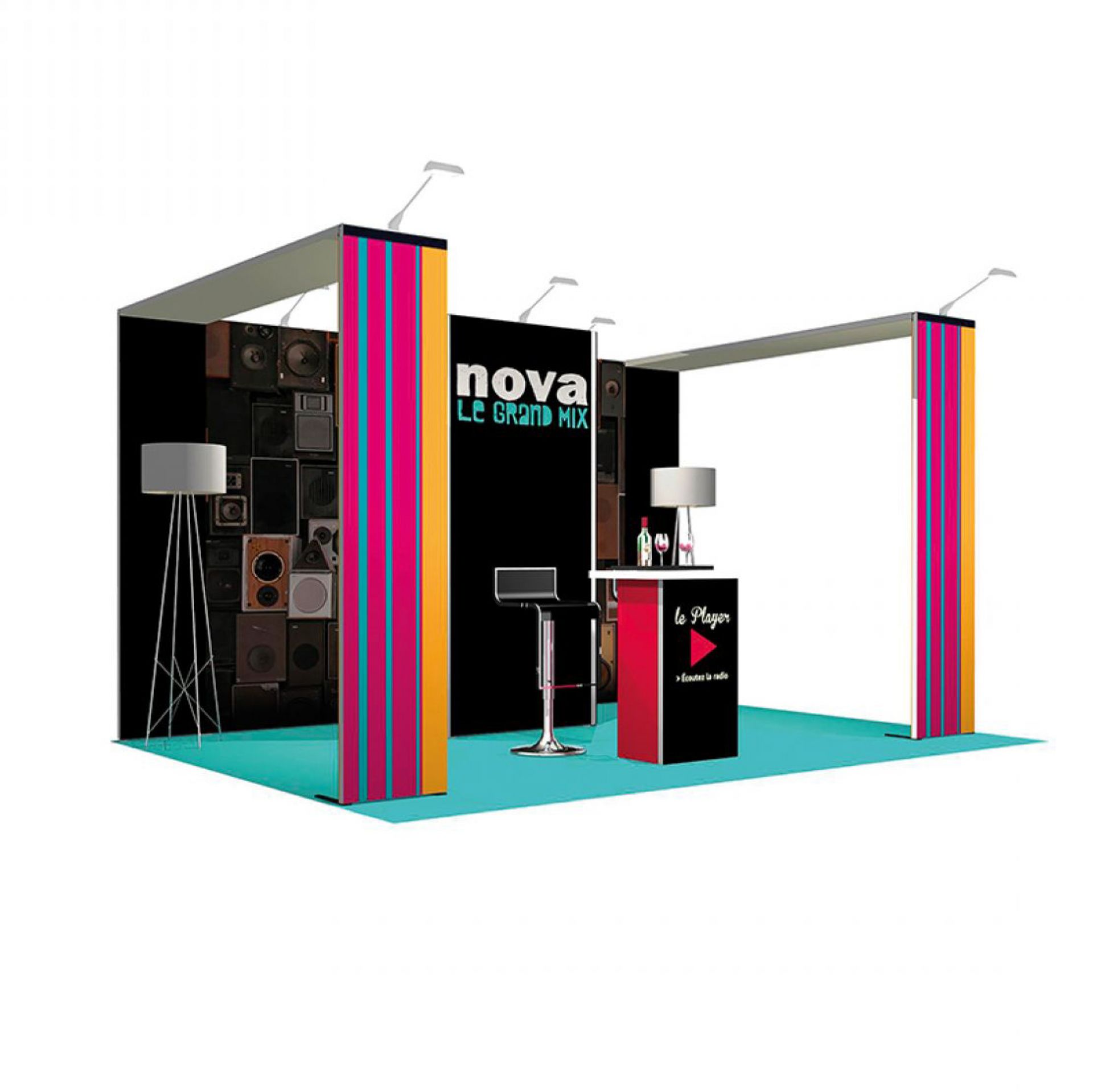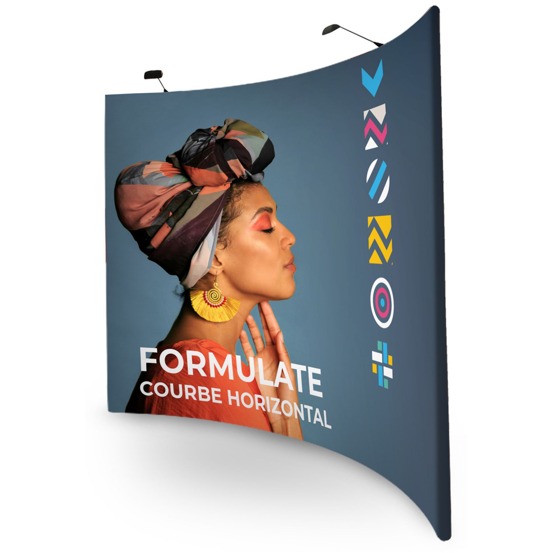 Le stand contour est une solution d’exposition évolutive et impactante. Sa structure en aluminium tubulaire s'habille d'un tissu imprimé extensible.