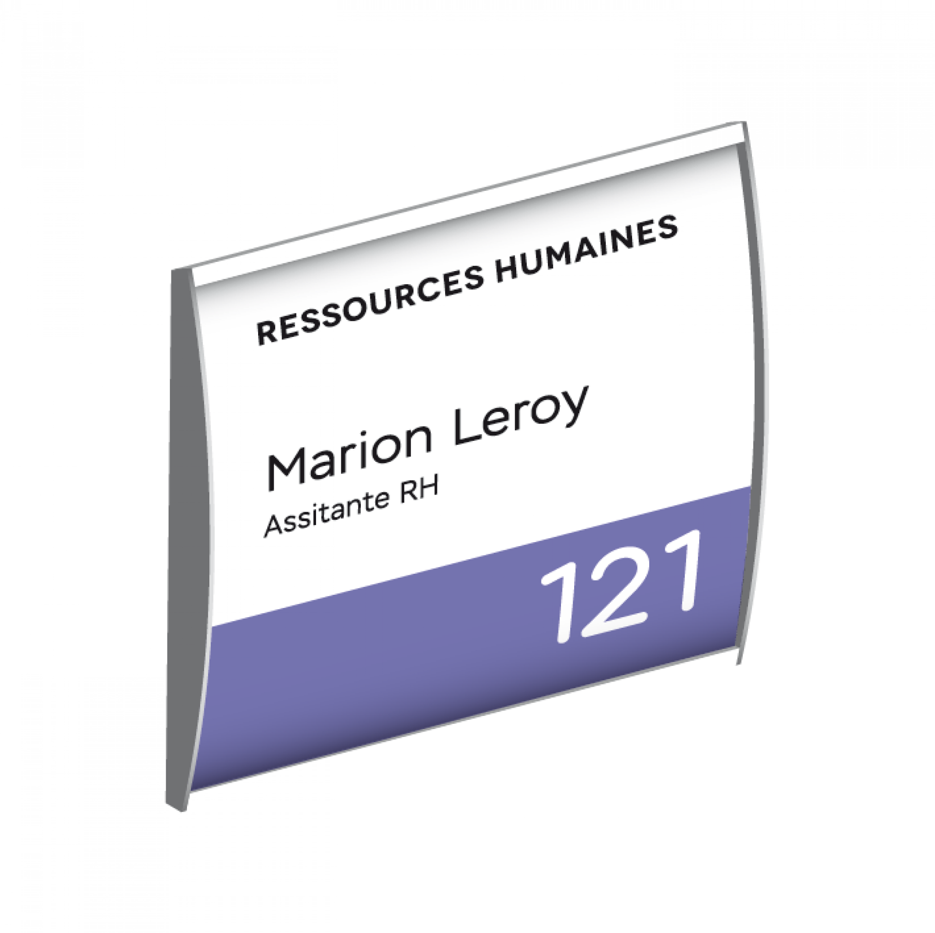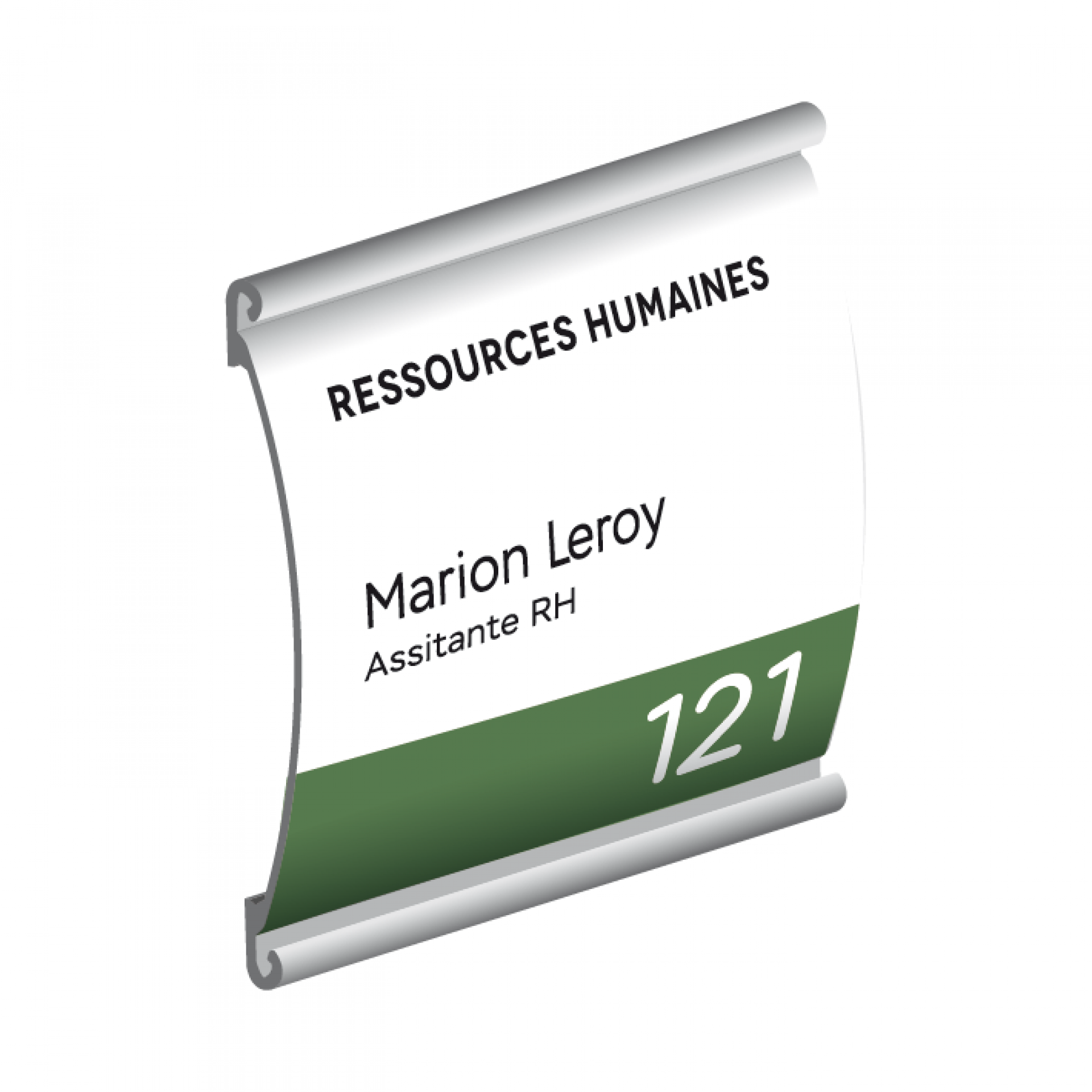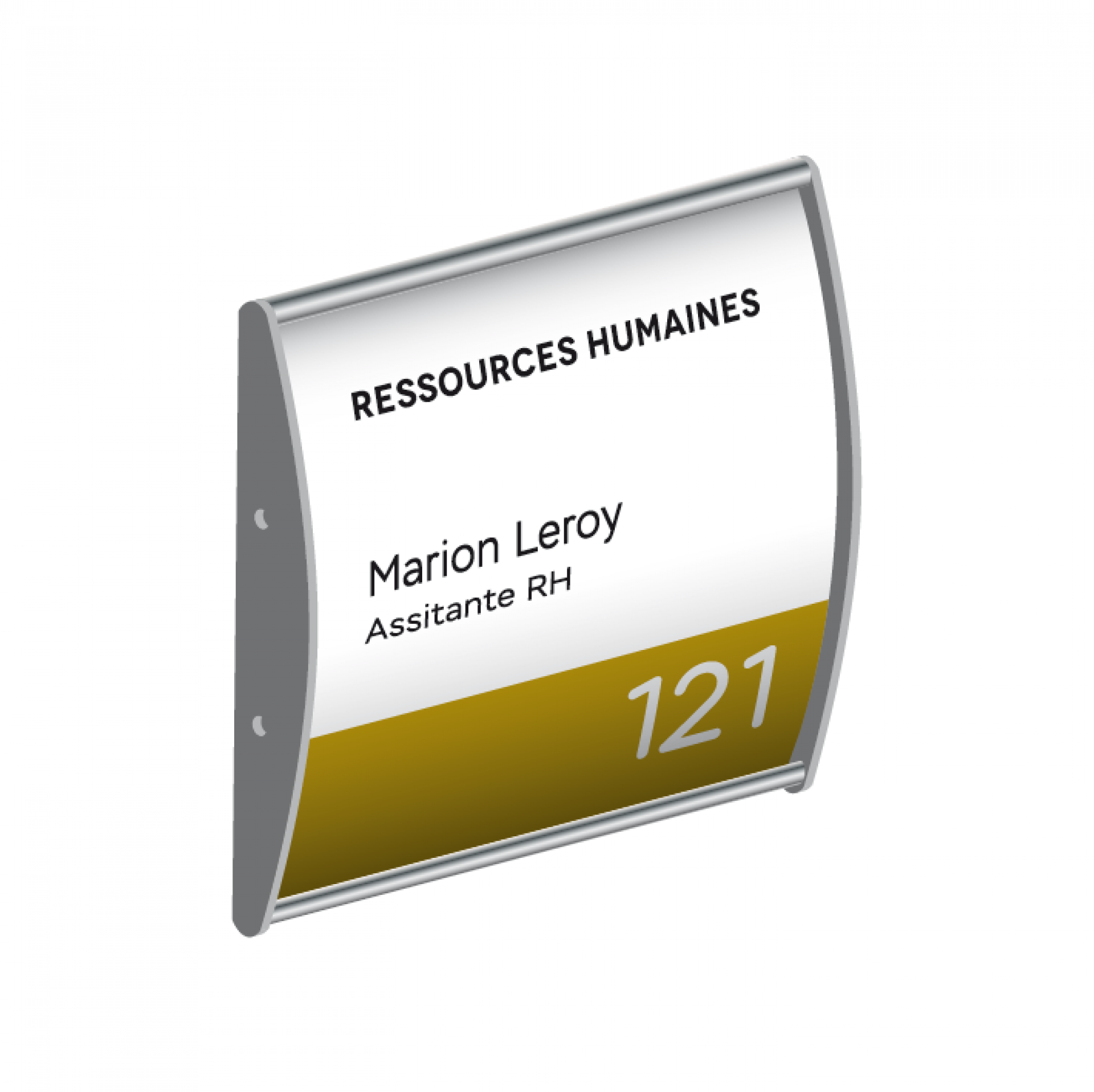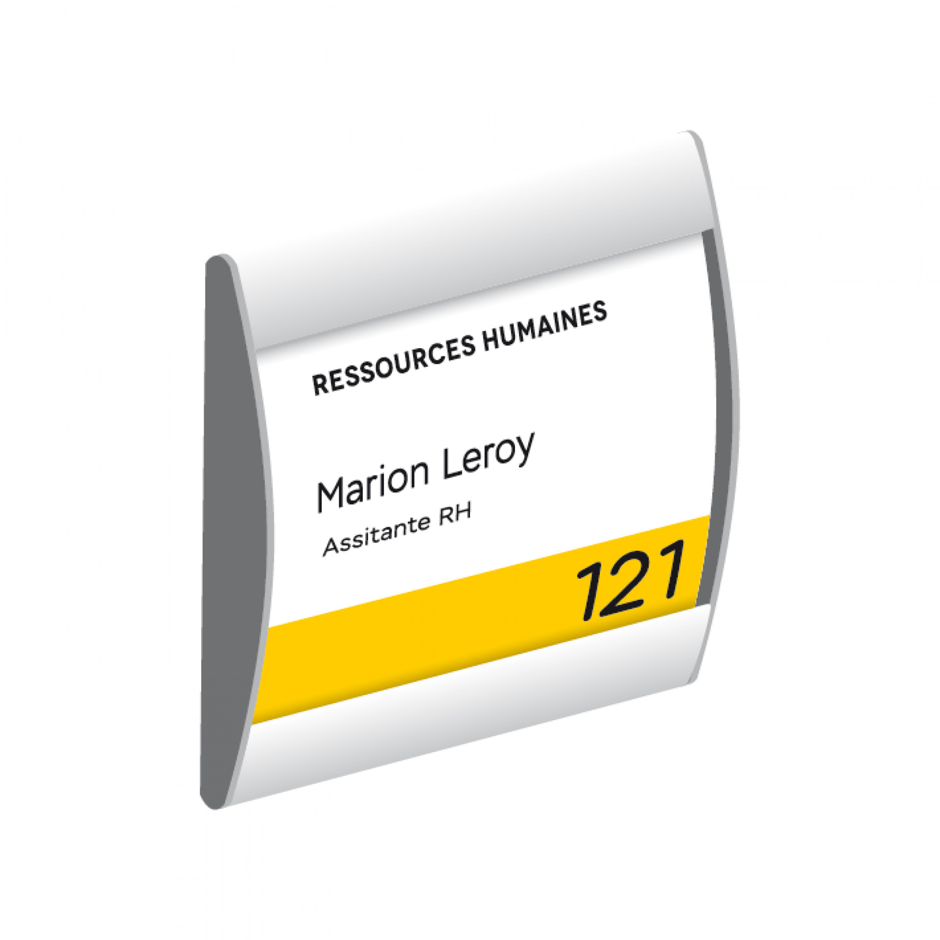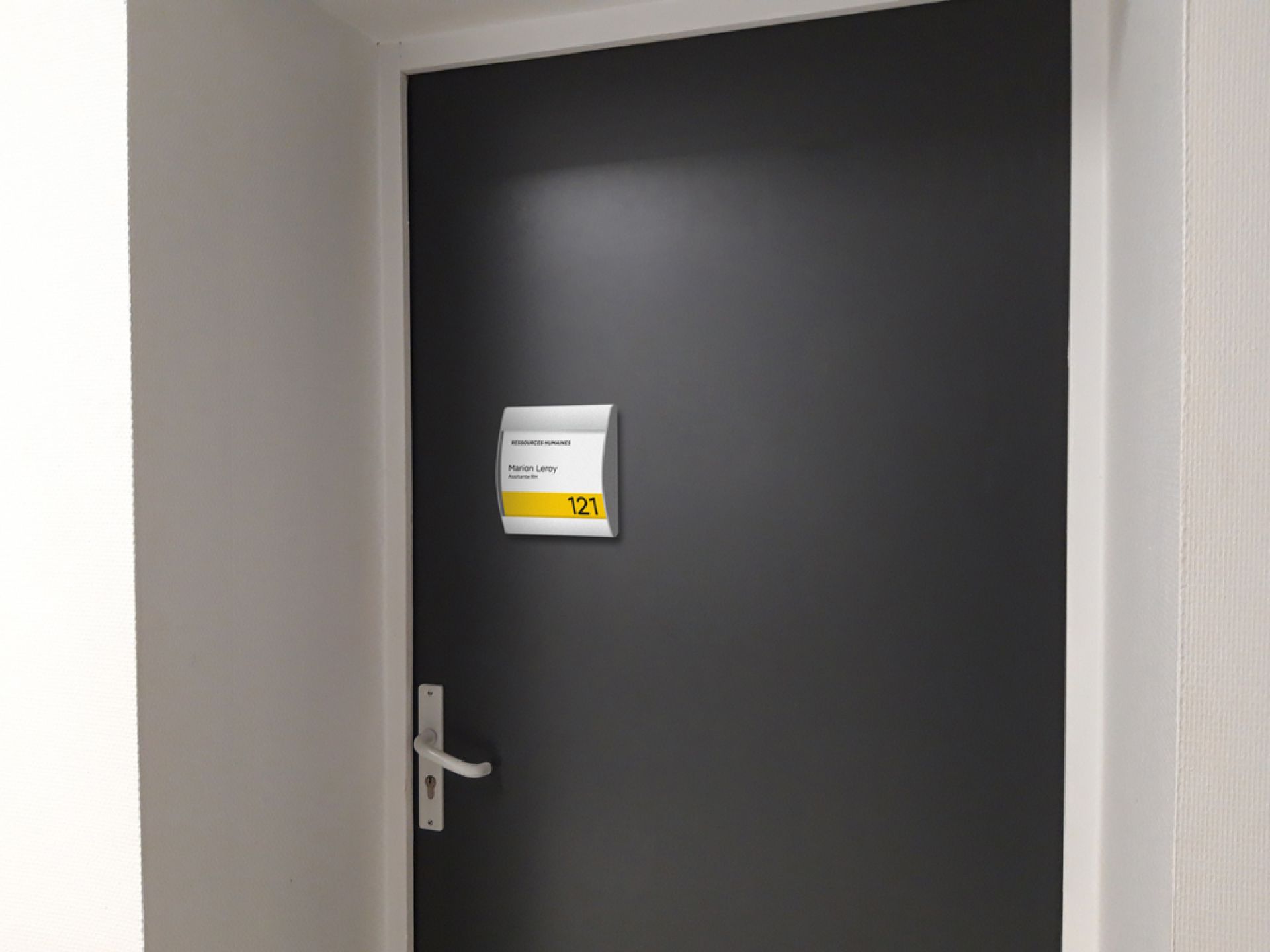 Plume est le système de signalisation flexible, personnalisable et contemporain. C'est une plaque de porte qui se compose d’une gamme de profilés légèrement galbés en aluminium anodisé avec des côtés rectilignes et ses embouts noirs.