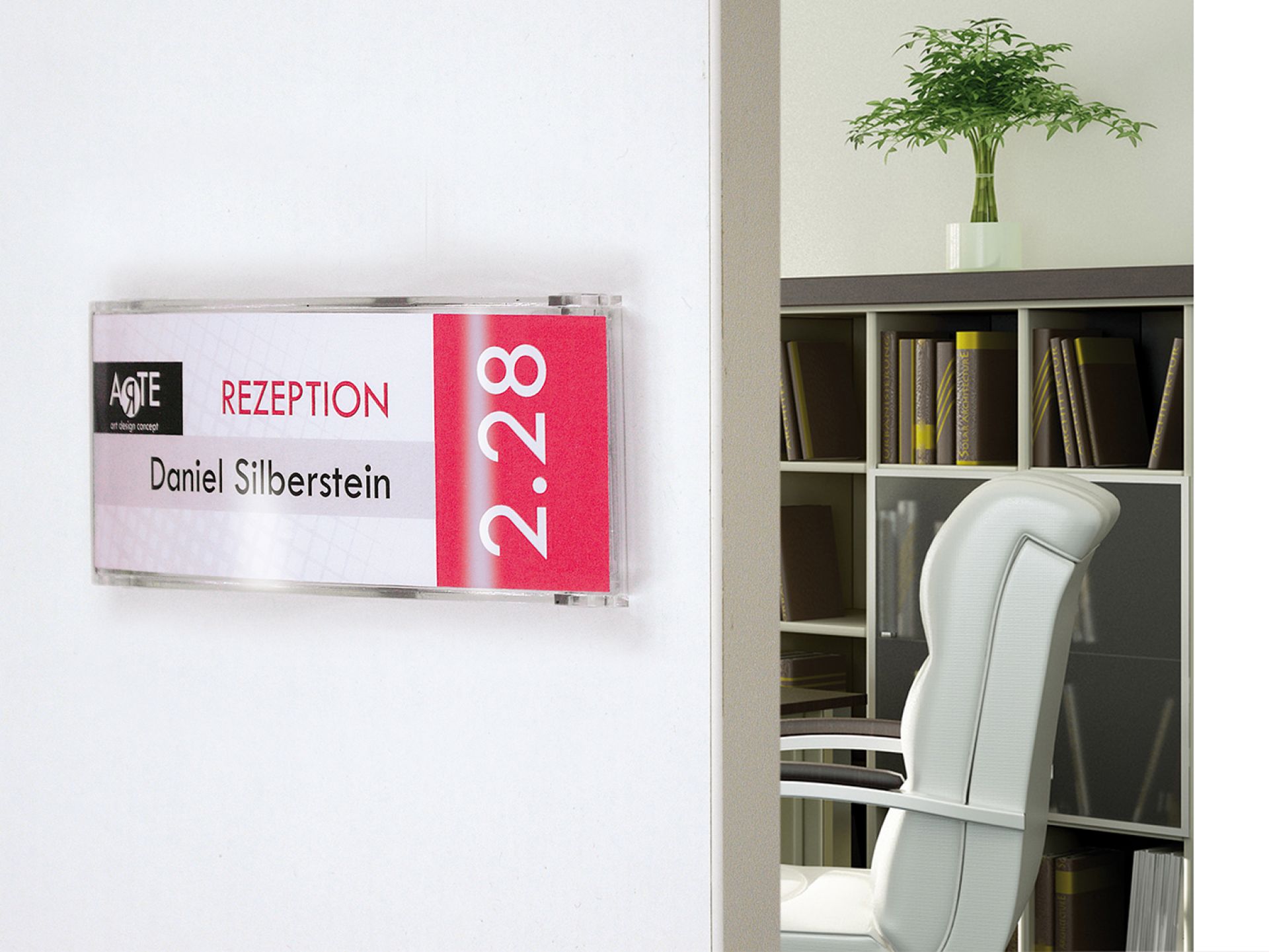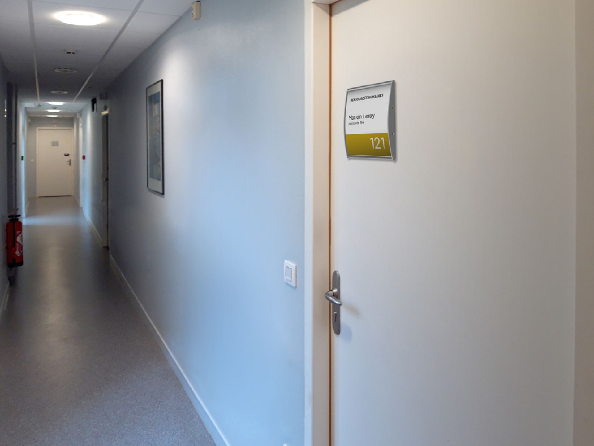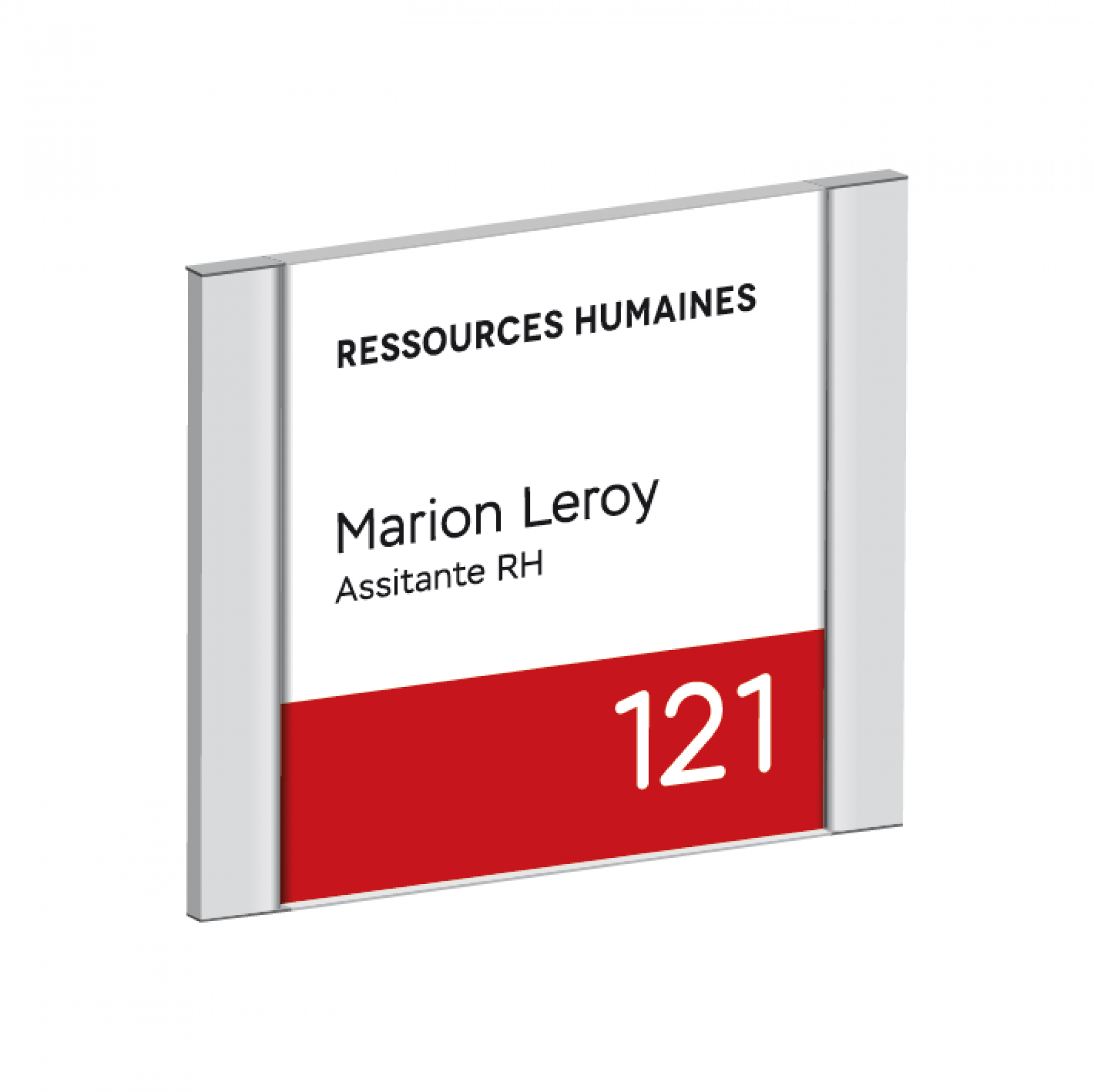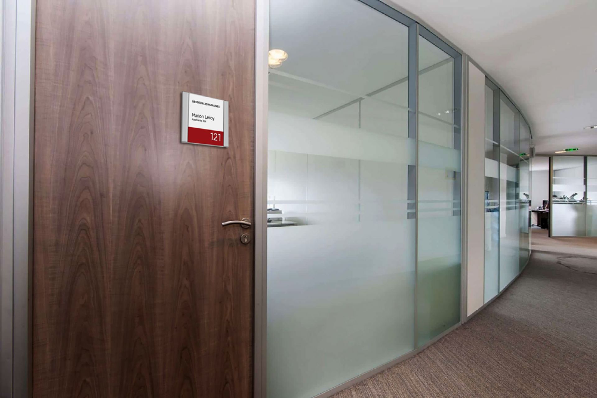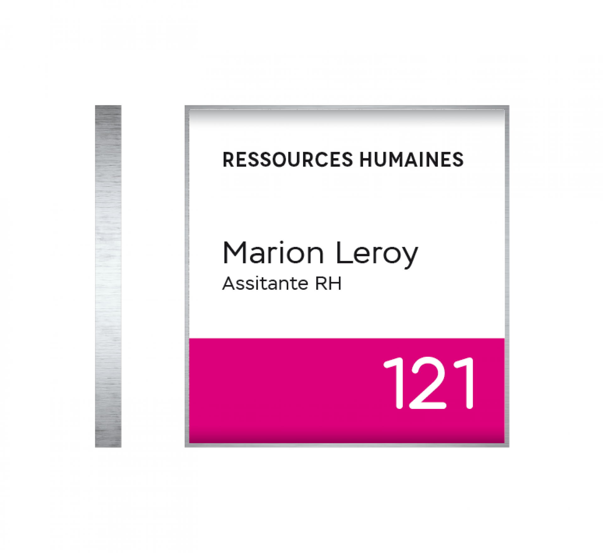 Plume est le système de signalisation flexible, personnalisable et contemporain. C'est une plaque de porte qui se compose d’une gamme de profilés légèrement galbés en aluminium anodisé avec des côtés rectilignes et ses embouts noirs.