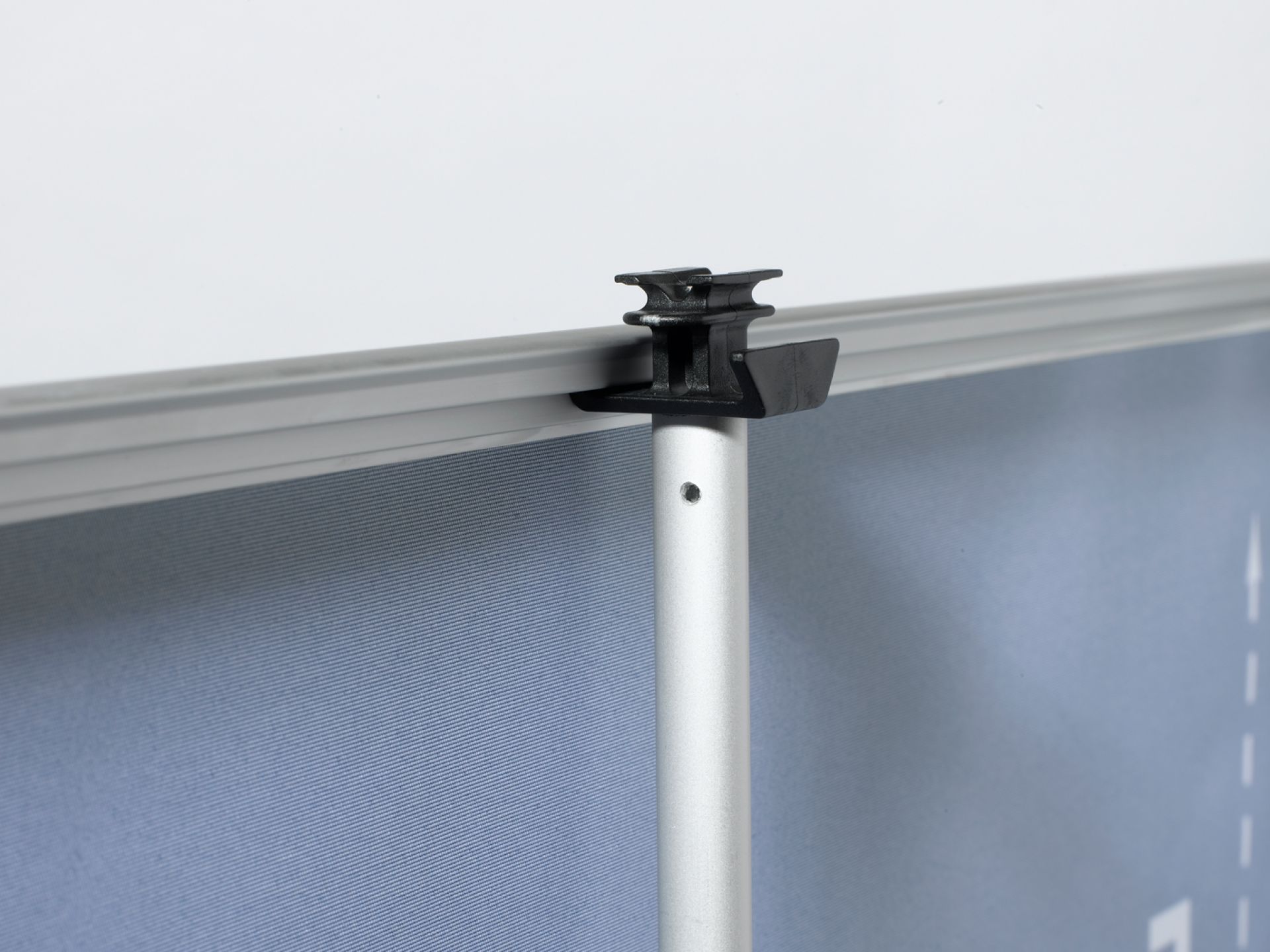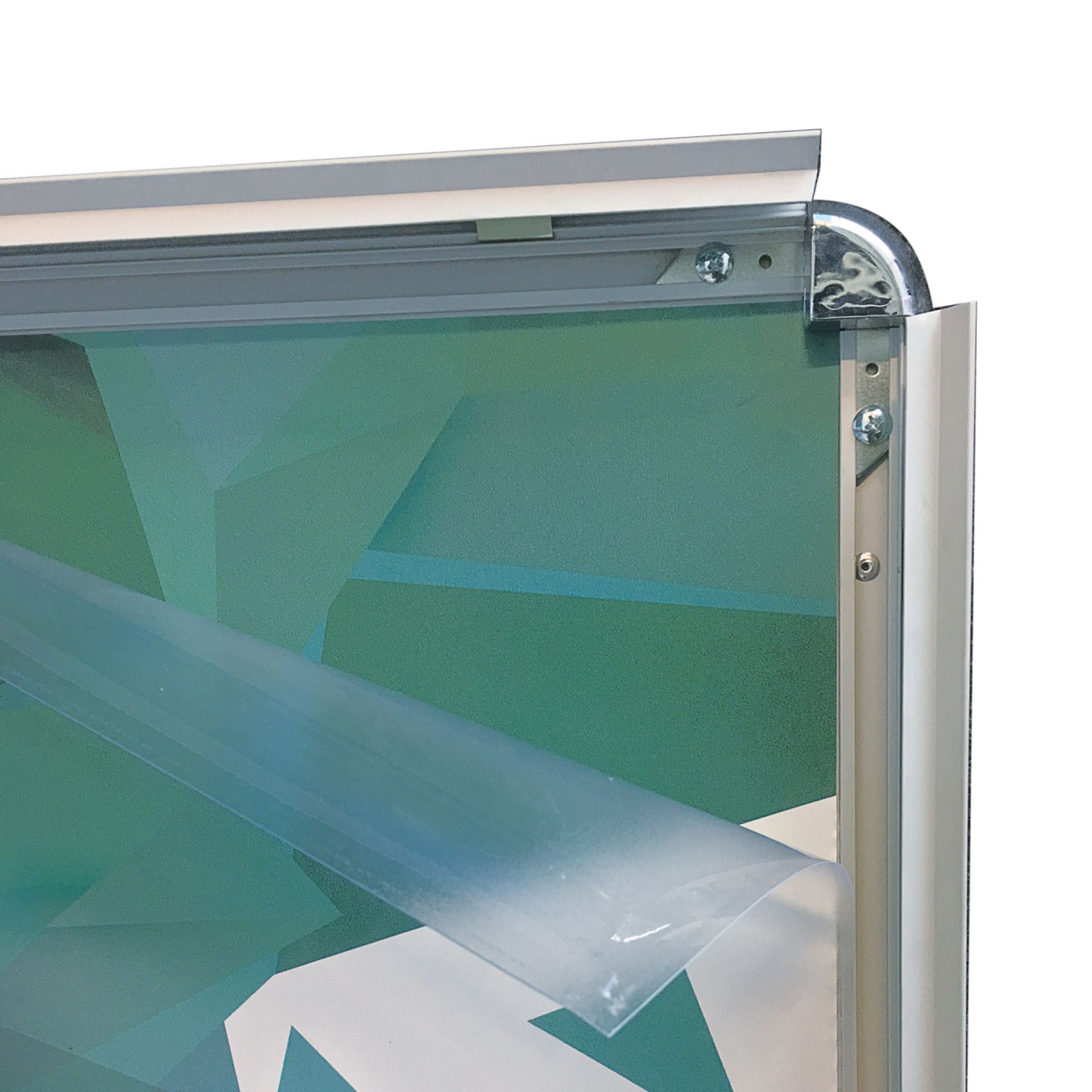 La pancarte murale Vista System est composée d’un cadre en aluminium incurvé, de deux embouts en plastique et d’un film de couverture transparent en polycarbonate (brillant/mat).