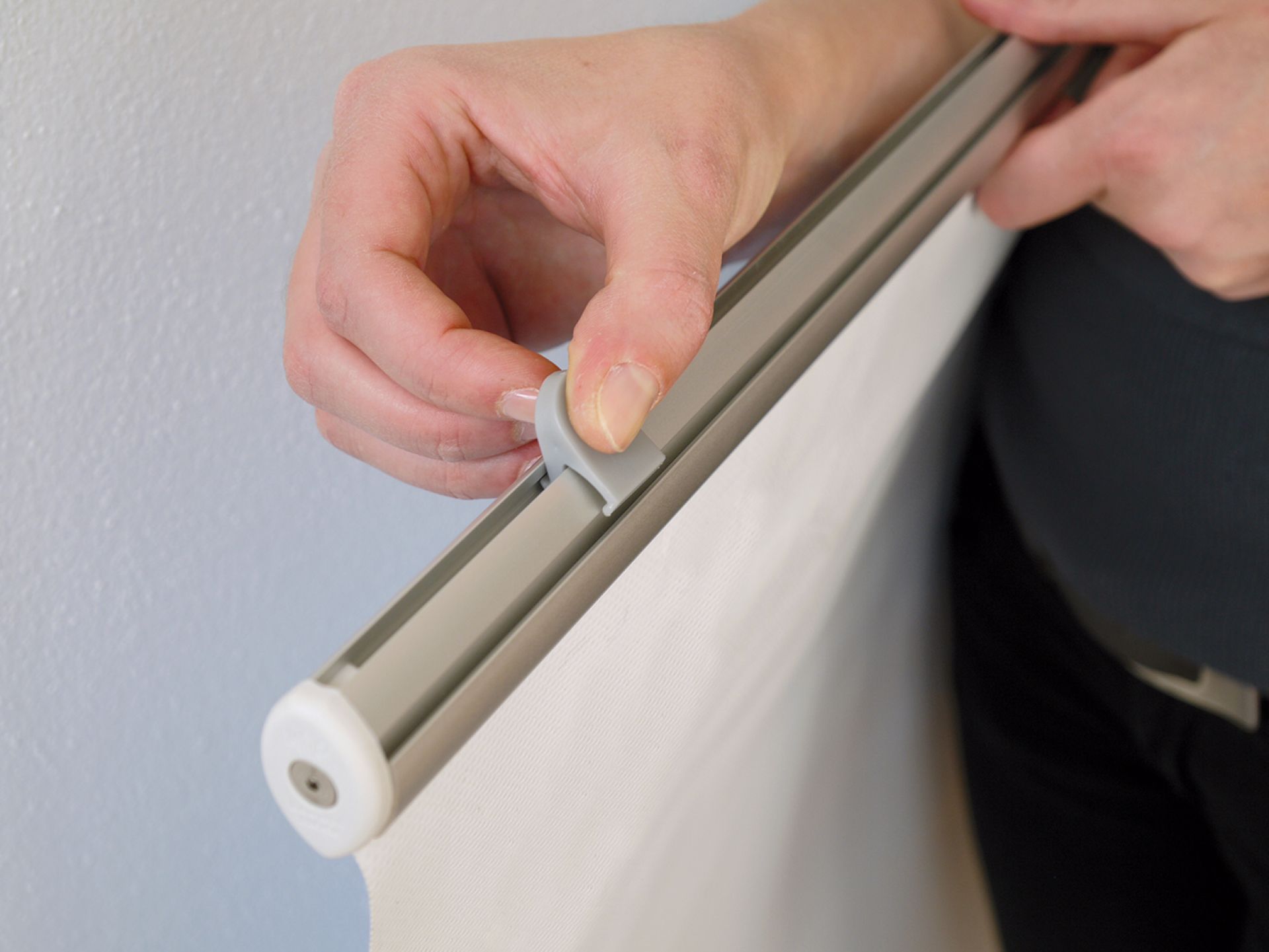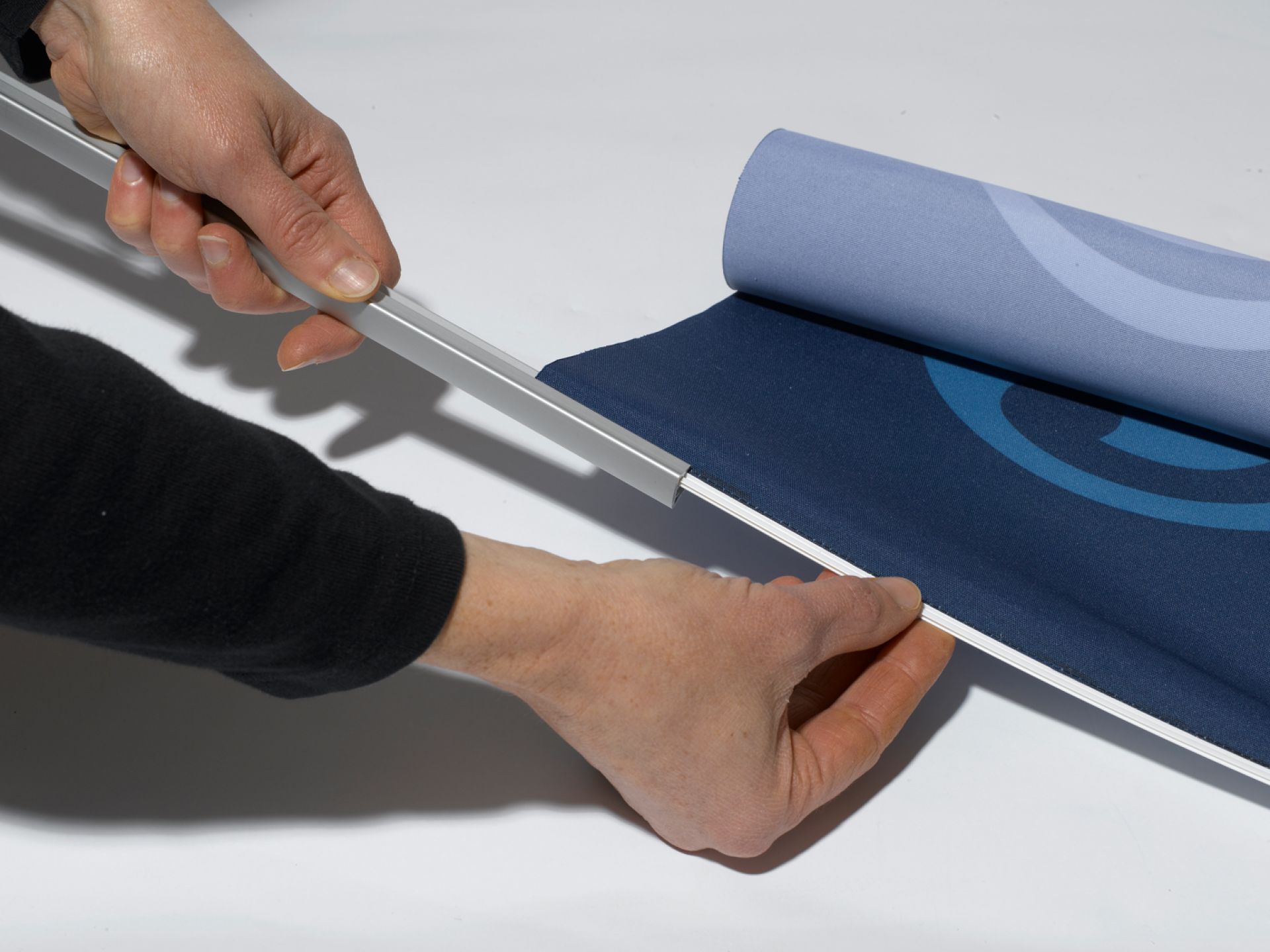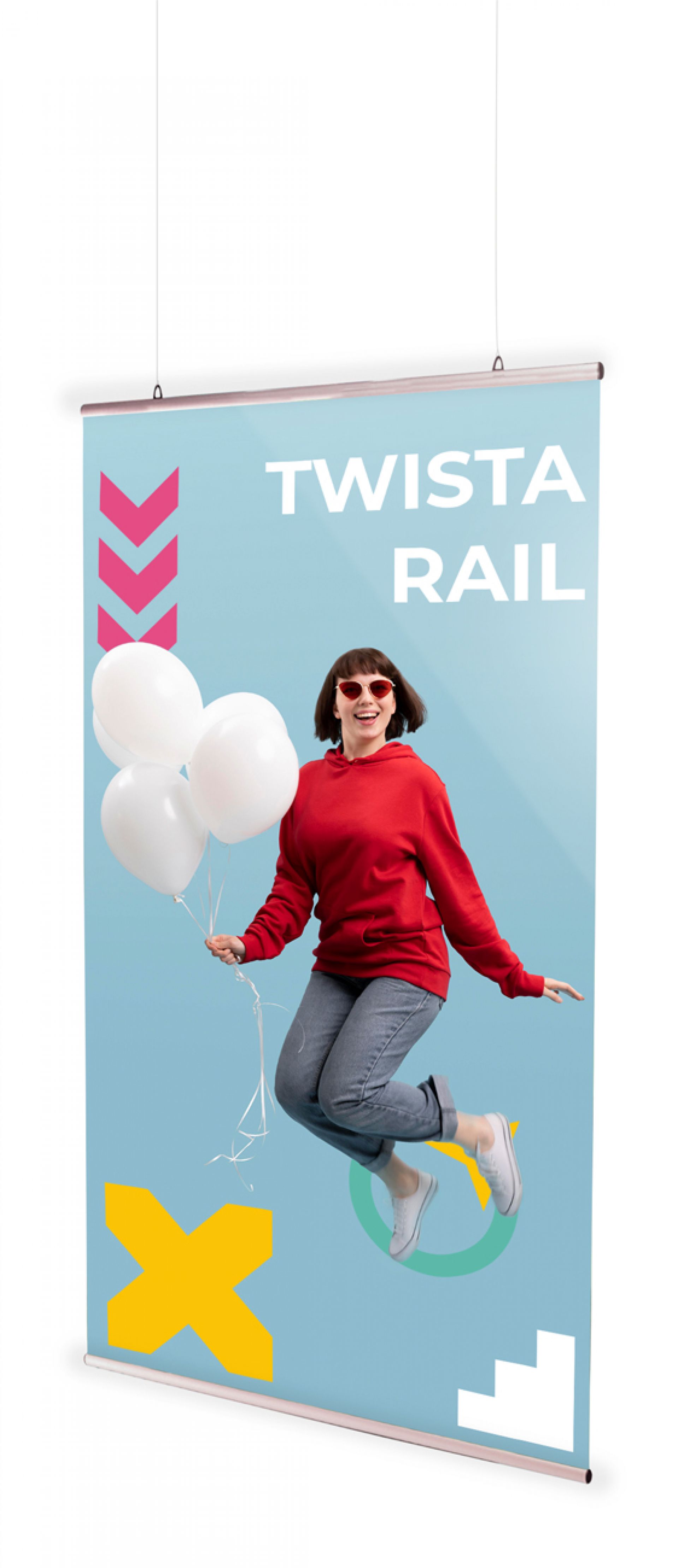 Twista Rail est un profilé clippant, au design rainuré, pour kakémono à suspendre.