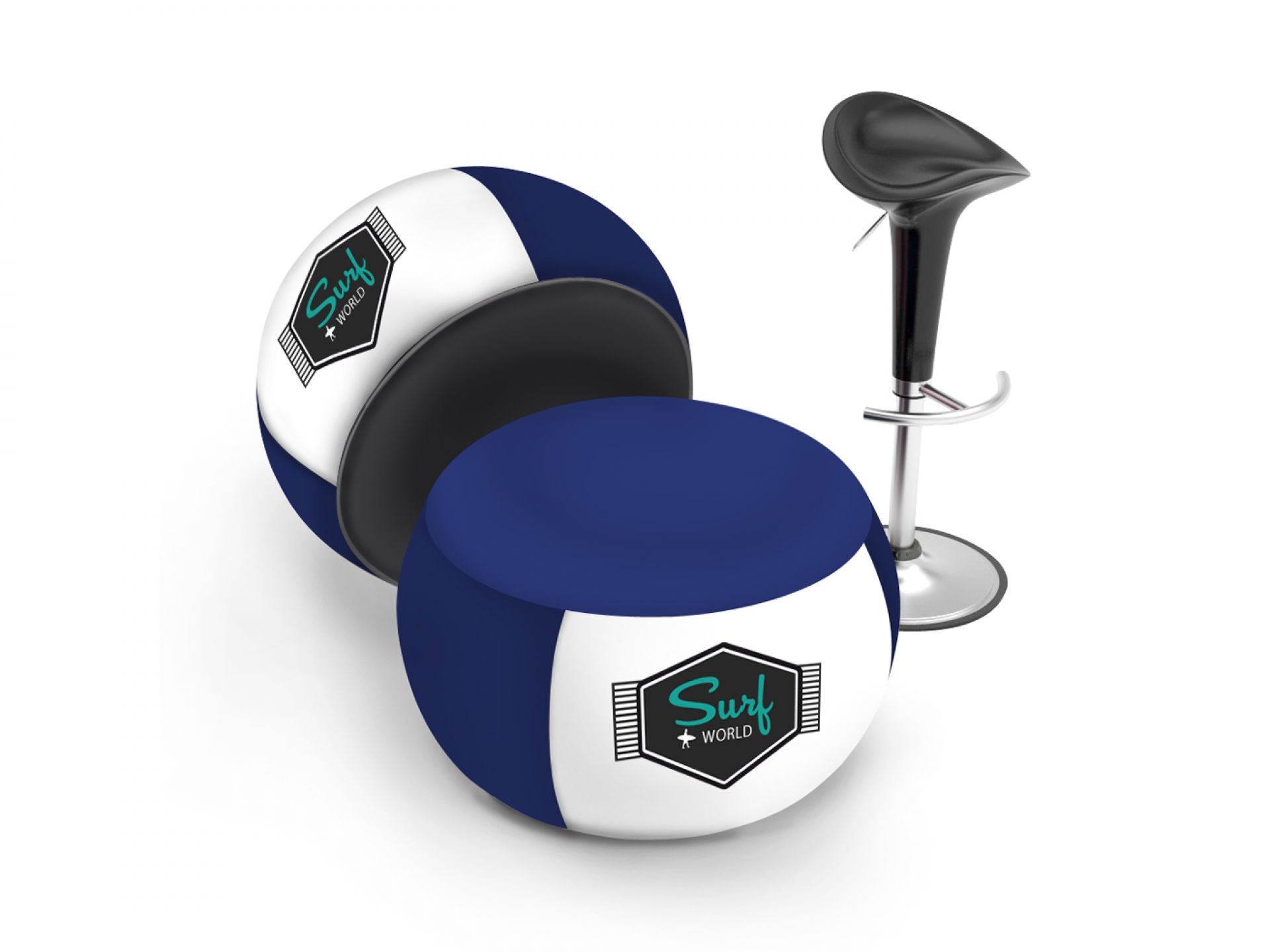 Expocom se charge de la personnalisation de ce fauteuil et de l’impression en sublimation numérique sur toute la surface, recto et verso.