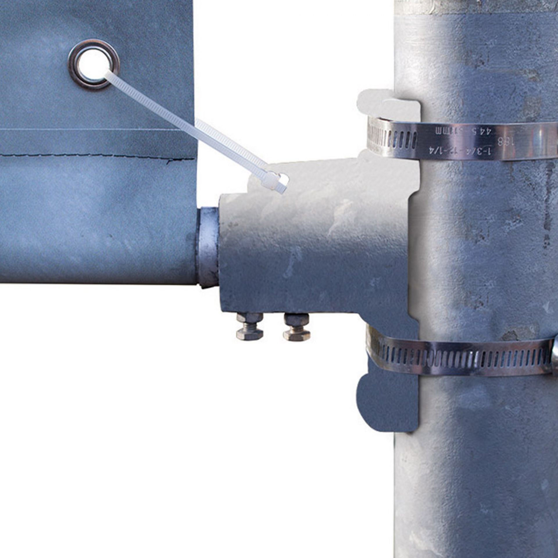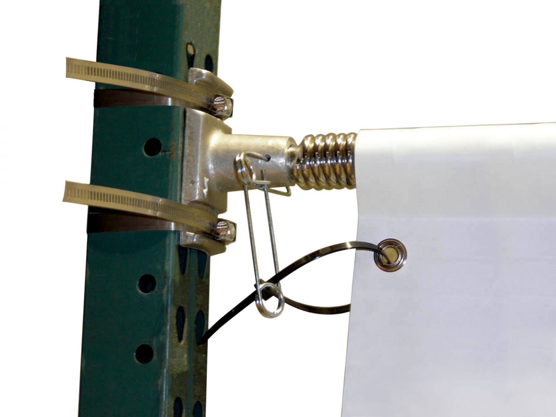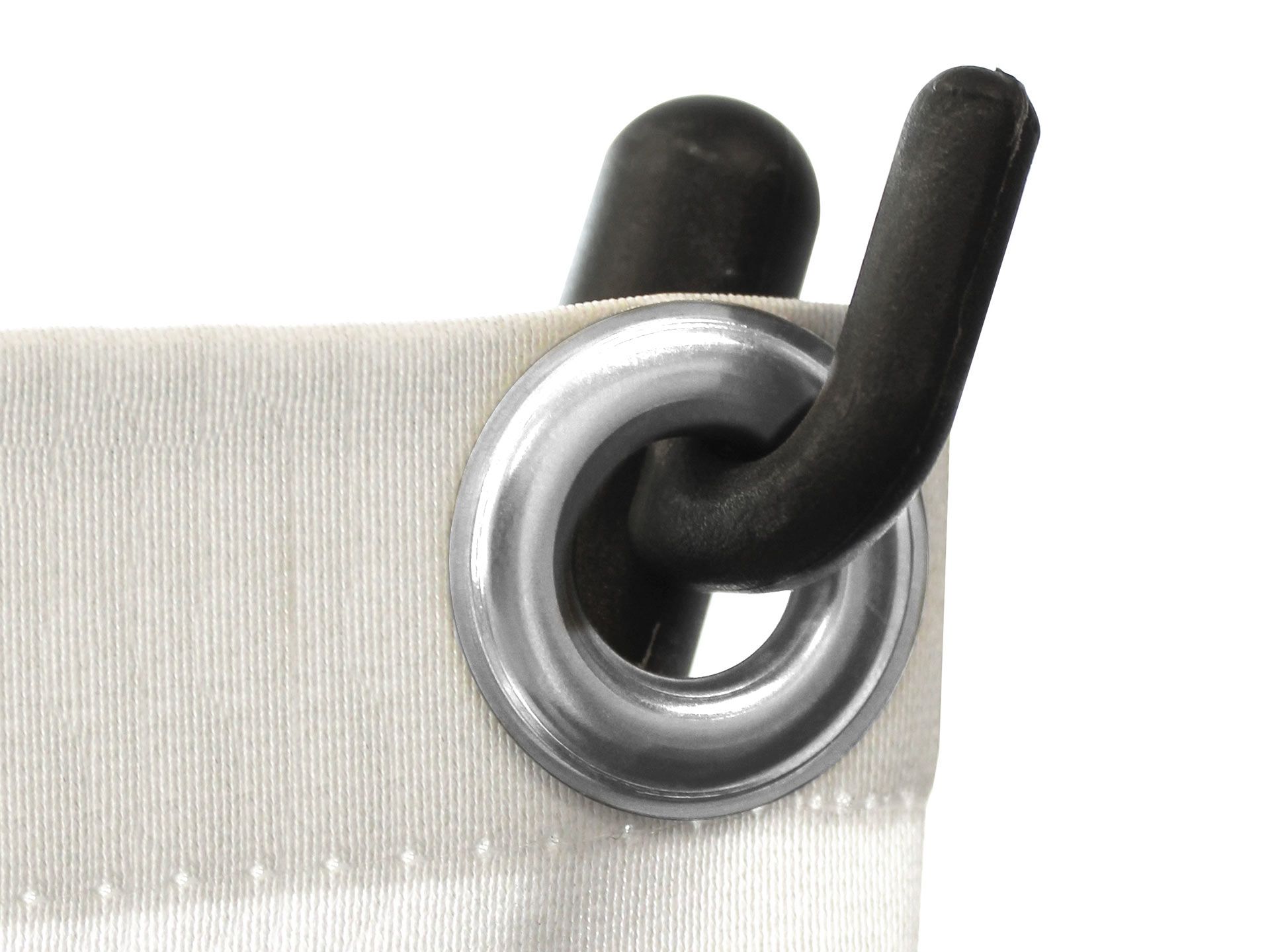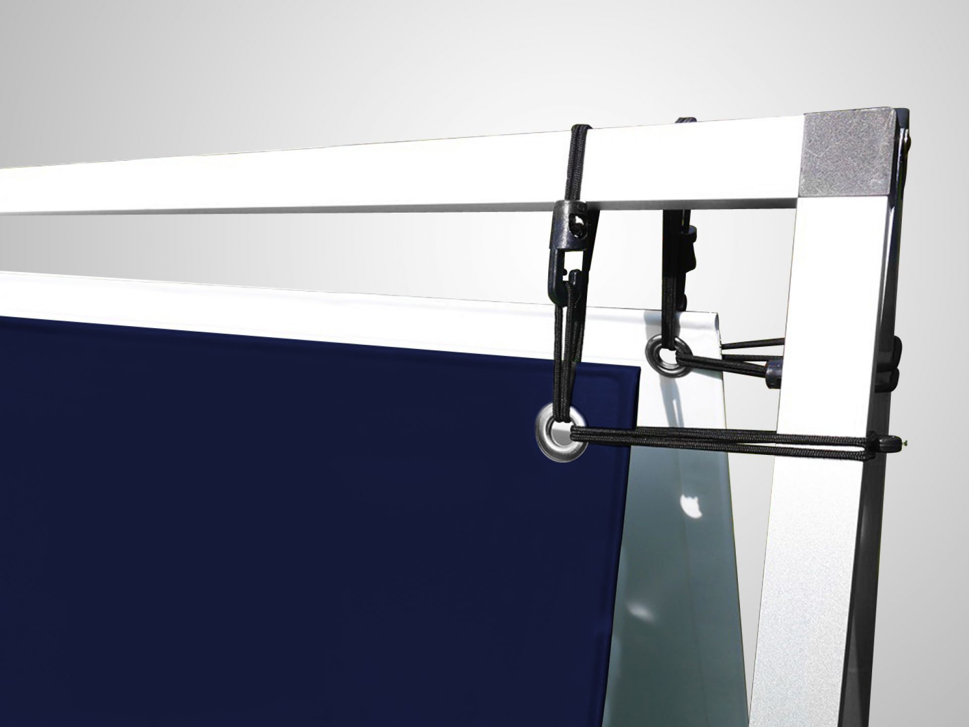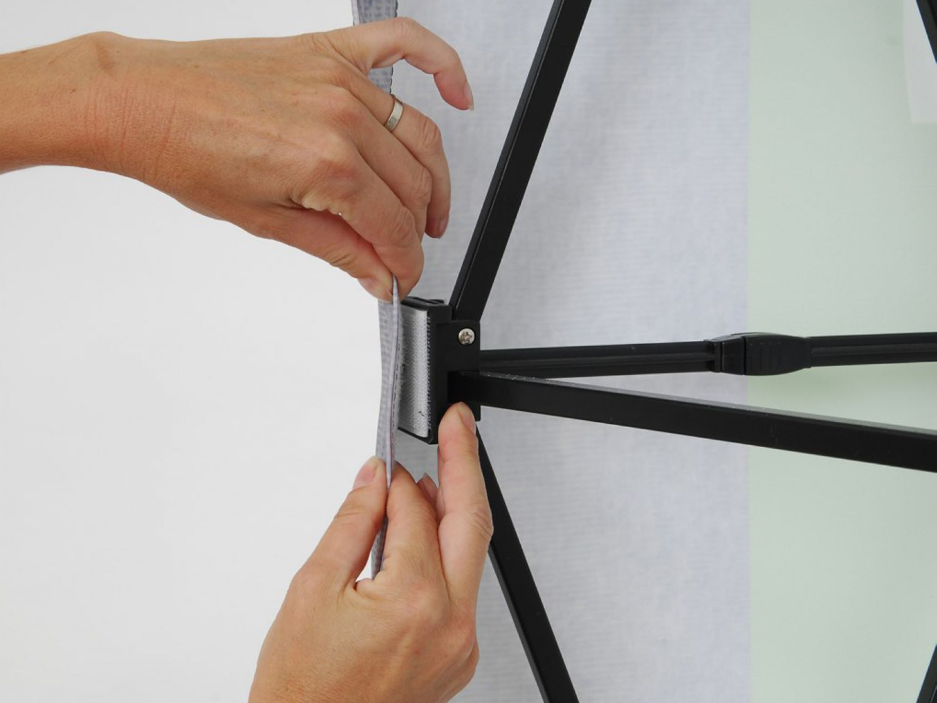Son fonctionnement : le visuel est accroché à la structure par un système d’œillets.
