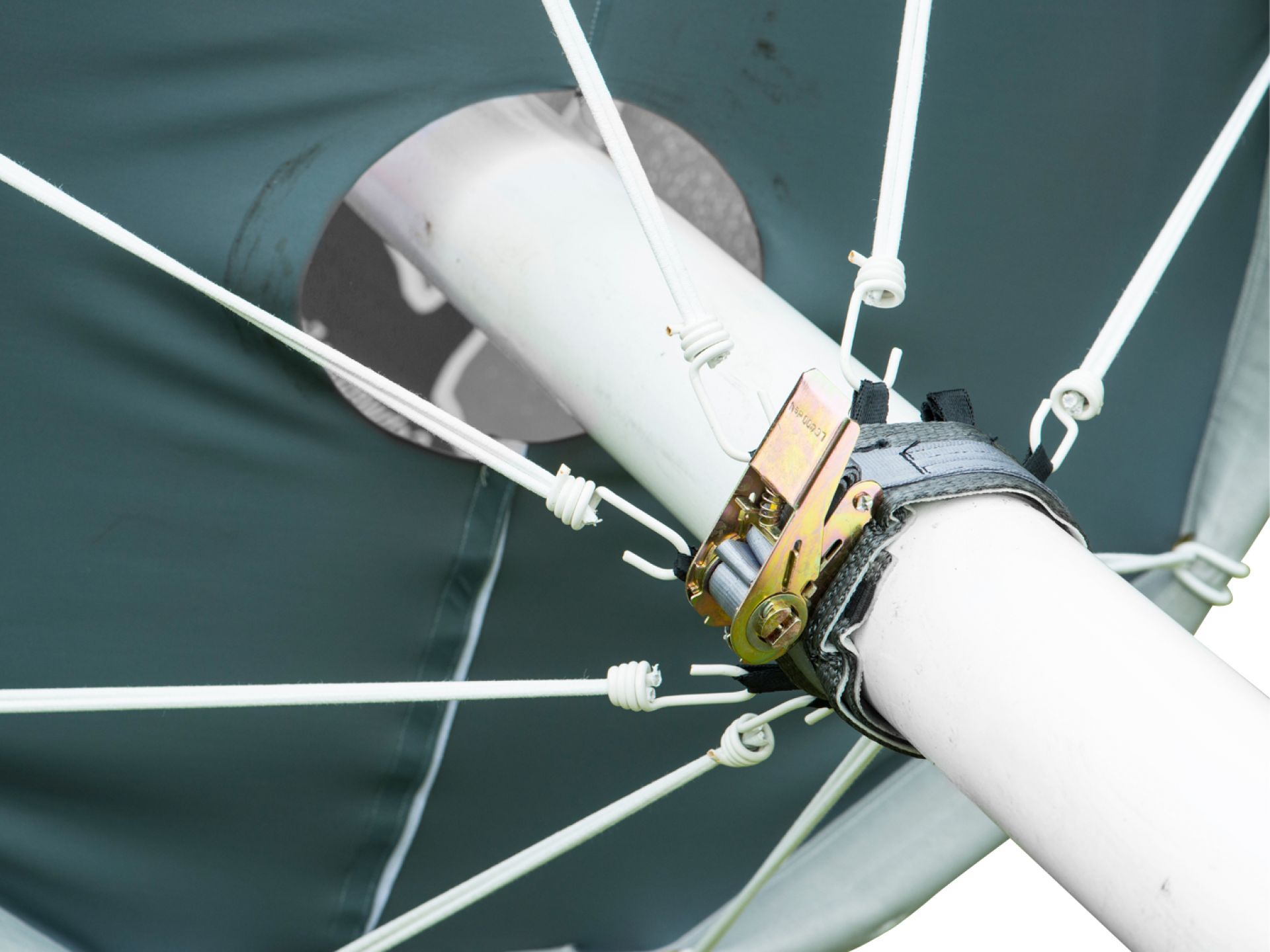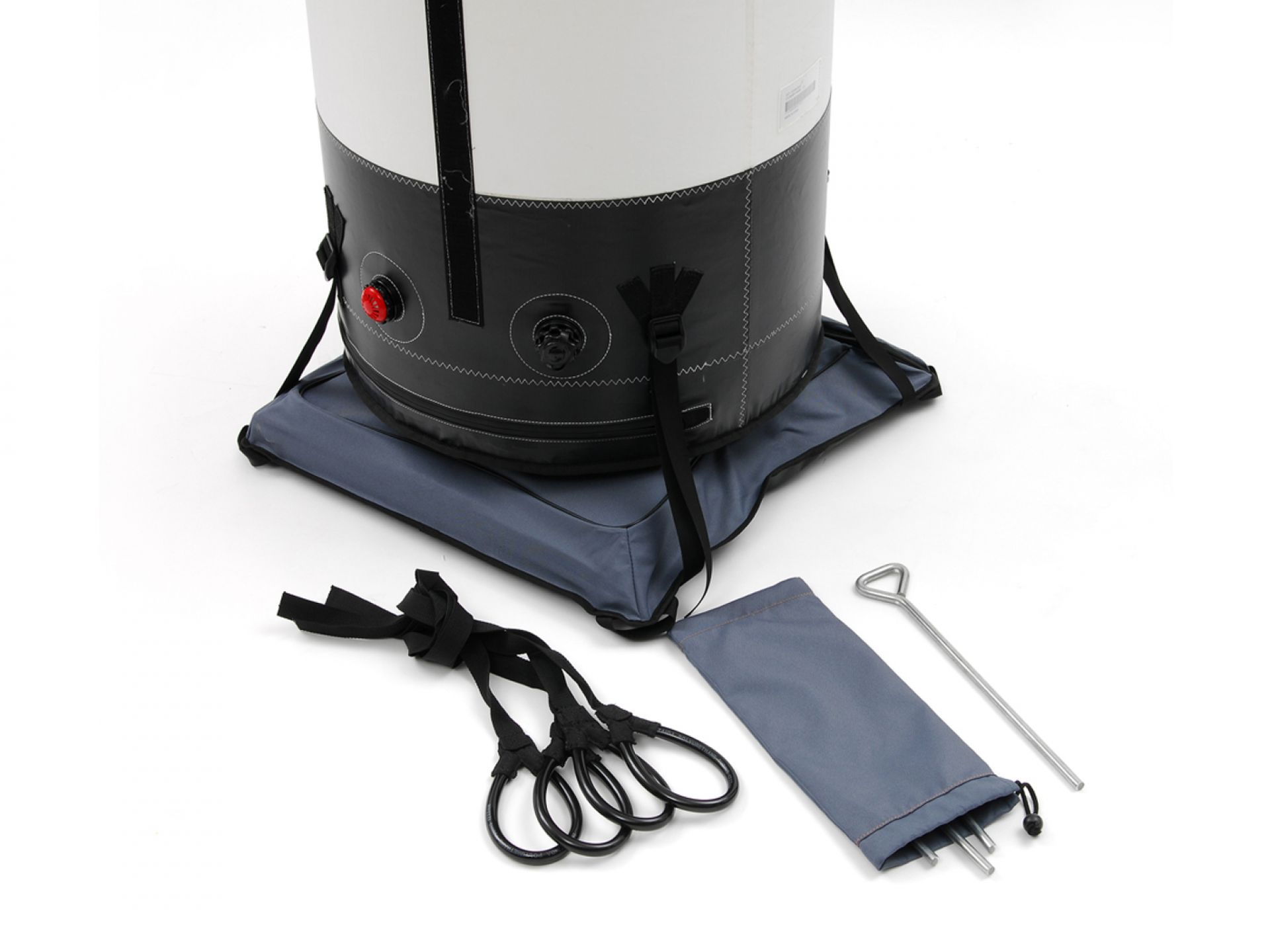 U-Gate se gonfle en 3 minutes et s’installe en 5 minutes. Elle est livrée dans son sac de transport avec sardines et cordes de fixation.