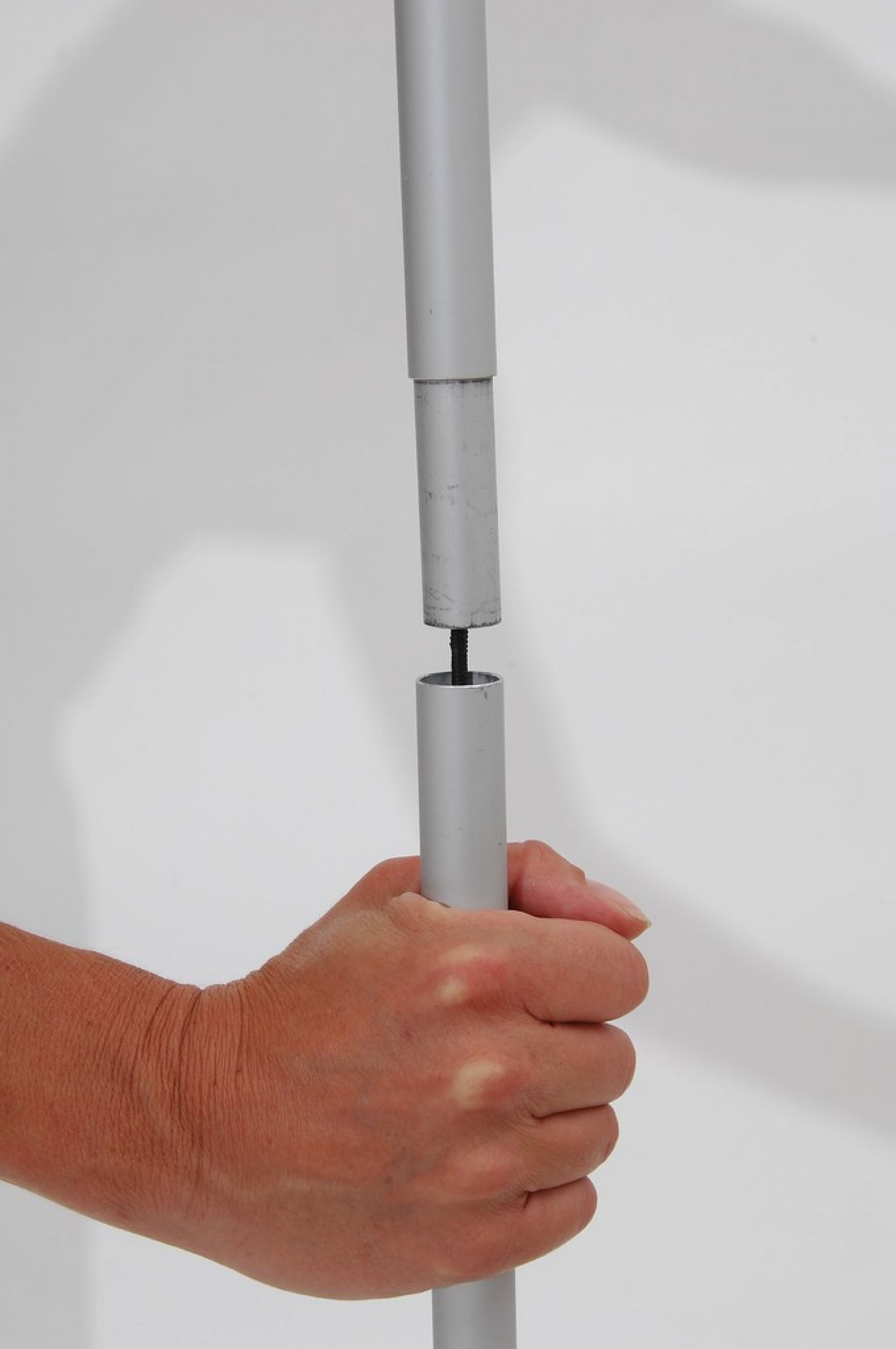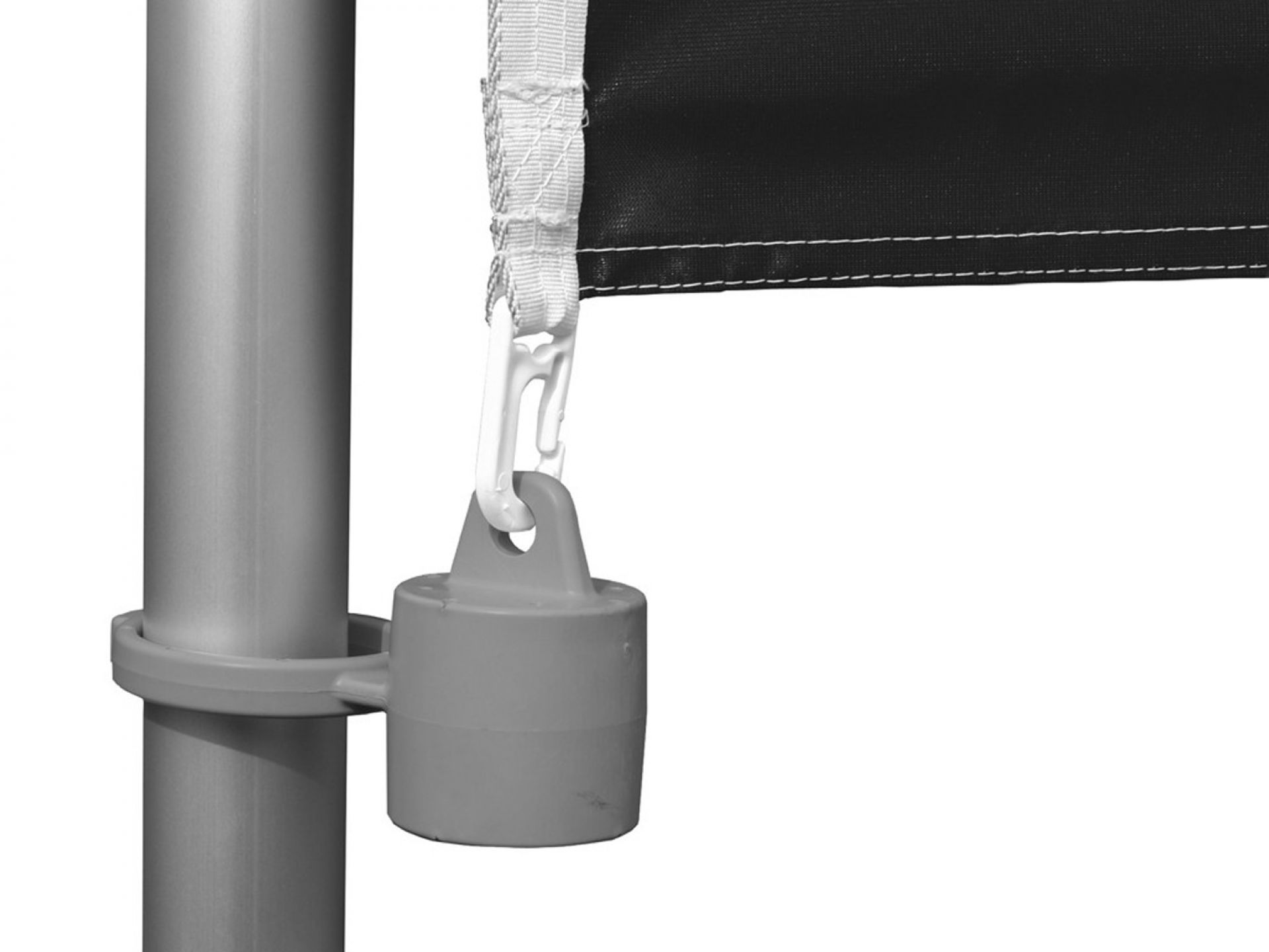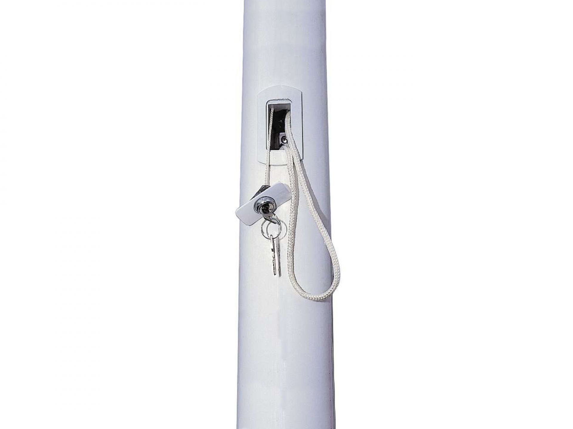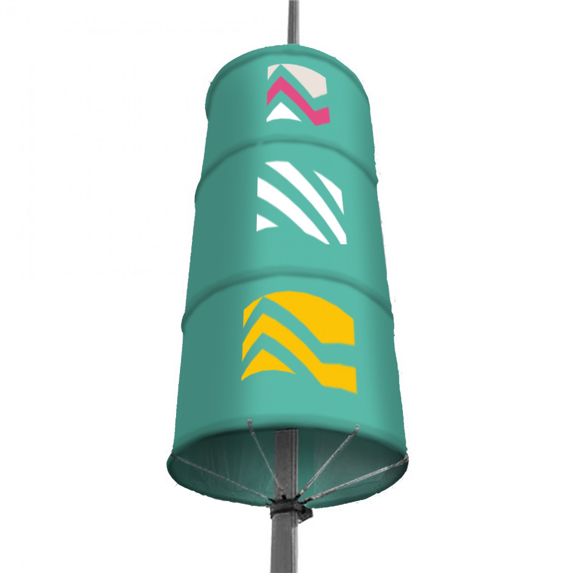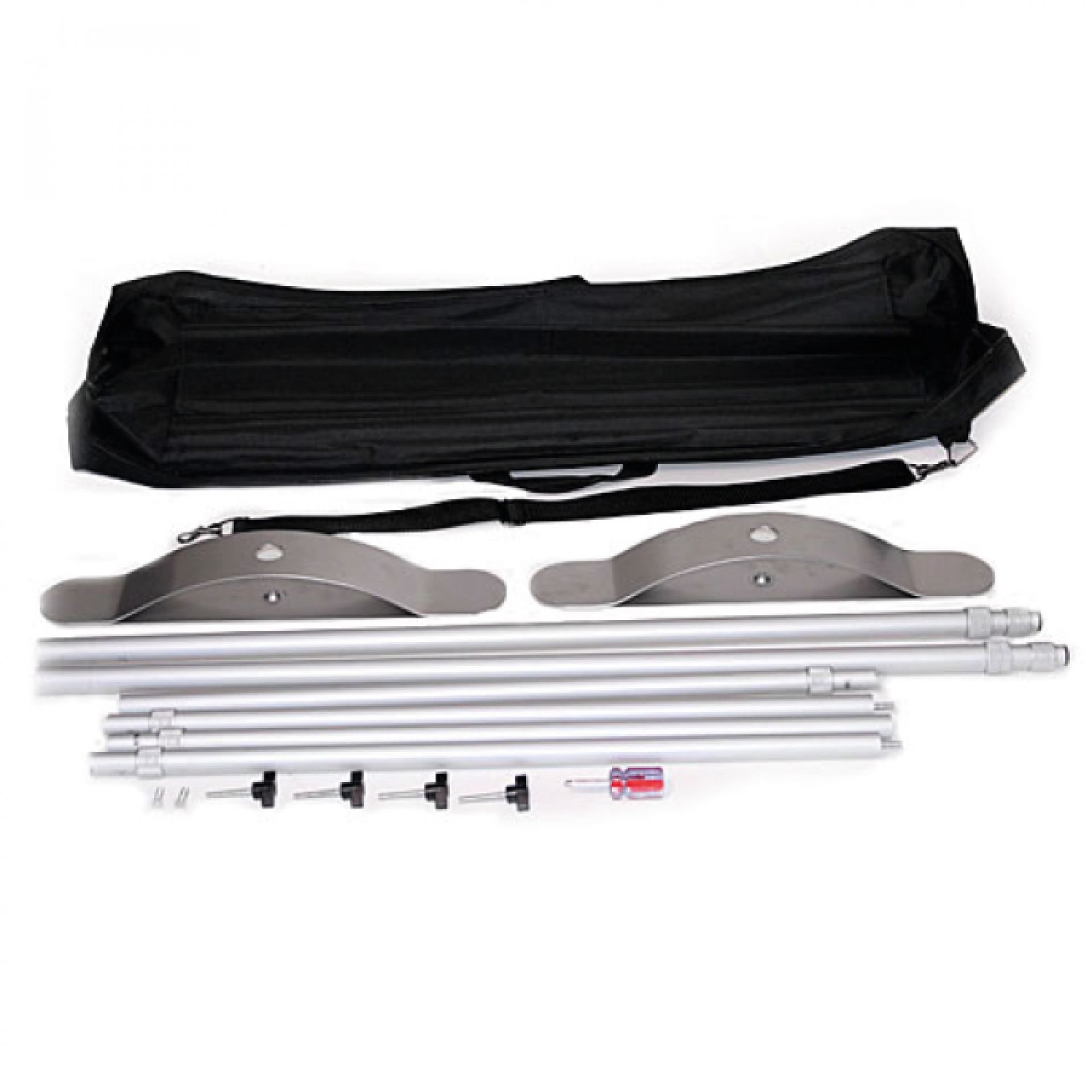 Enrouleur extérieur double-face de grande envergure, le Rolloutdoor possède un mât flexible sur ressorts et des pieds stabilisateurs.