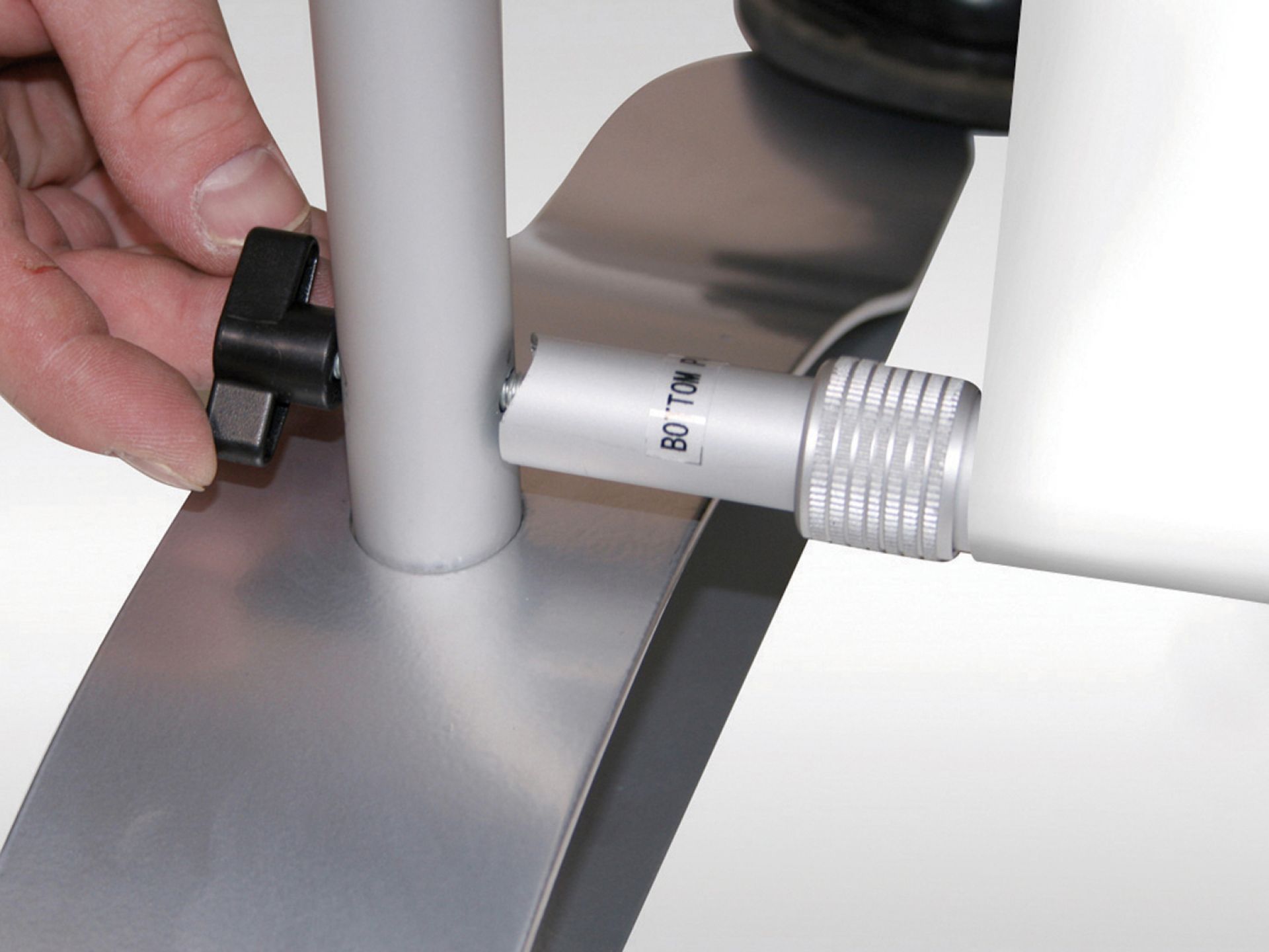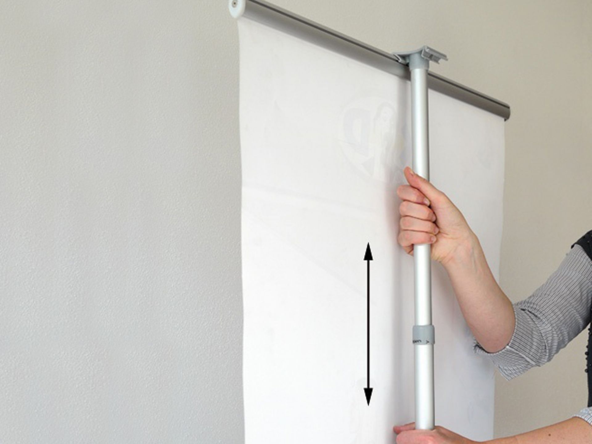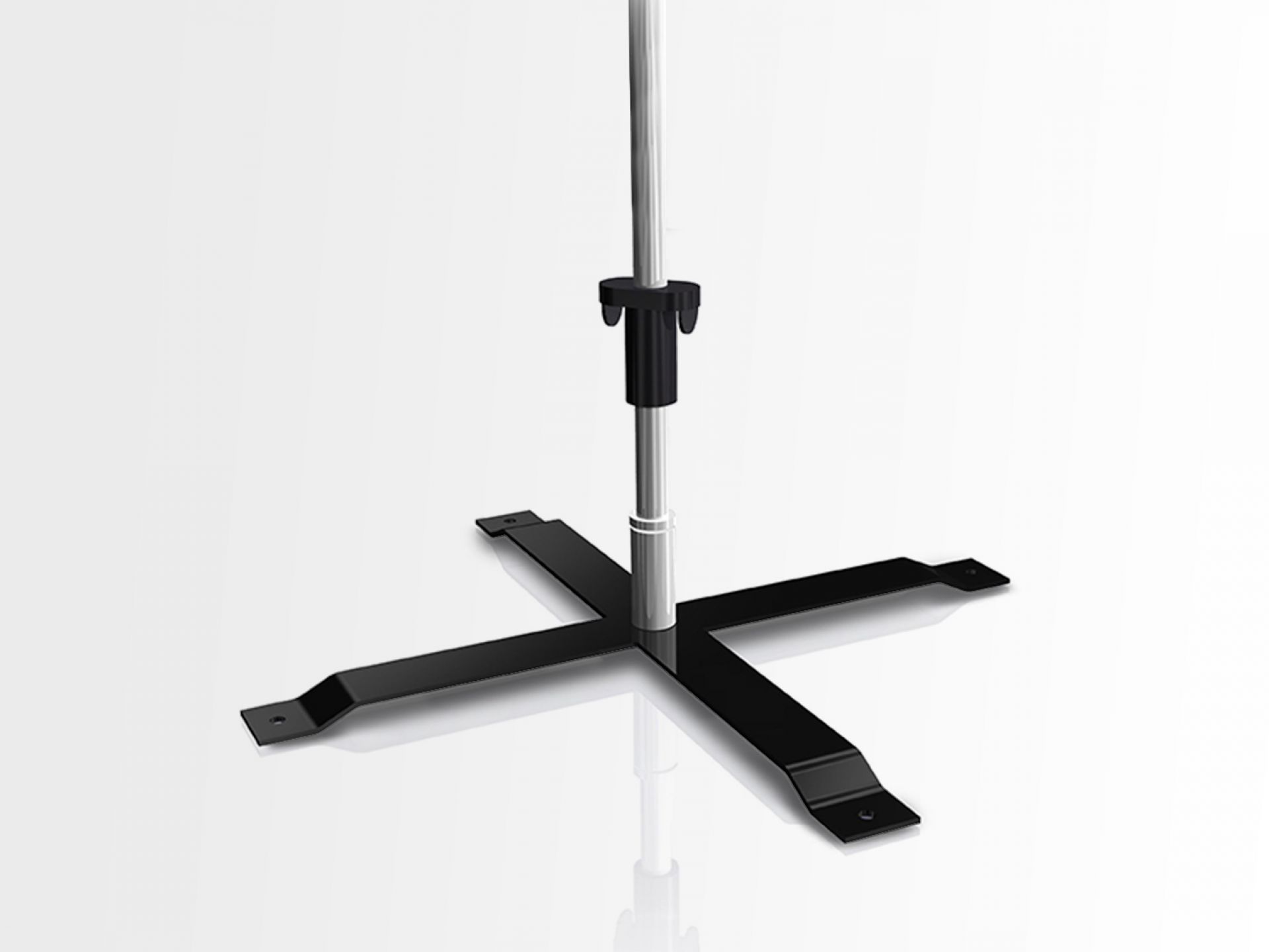Le système se fixe sur un poteau ou un mur et s'ajuste pour s'adapter à différentes hauteurs de visuels.