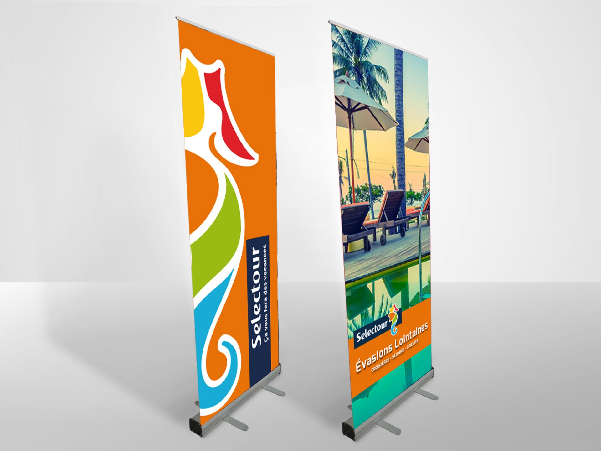 Le Bannerstep est un totem autoportant, qui permet l'affichage de deux visuels en double-face. Placé dans un lieu de passage tel qu'un salon ou un centre commercial, il assurera la promotion de votre communication.
