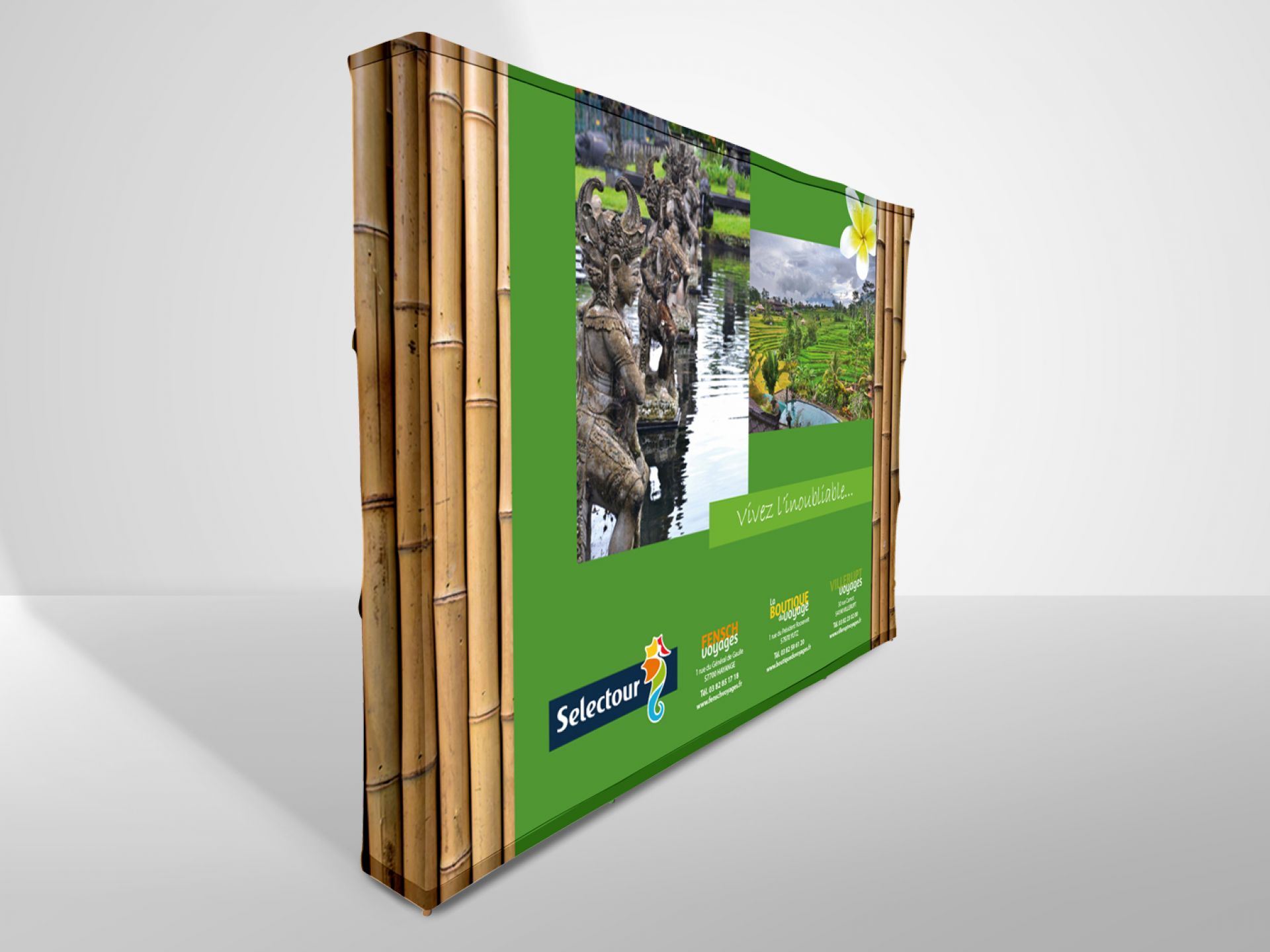 Certains systèmes d'exposition permettent de réutiliser une partie des visuels qui peuvent être coupés et recousus. Demandez-nous conseil !