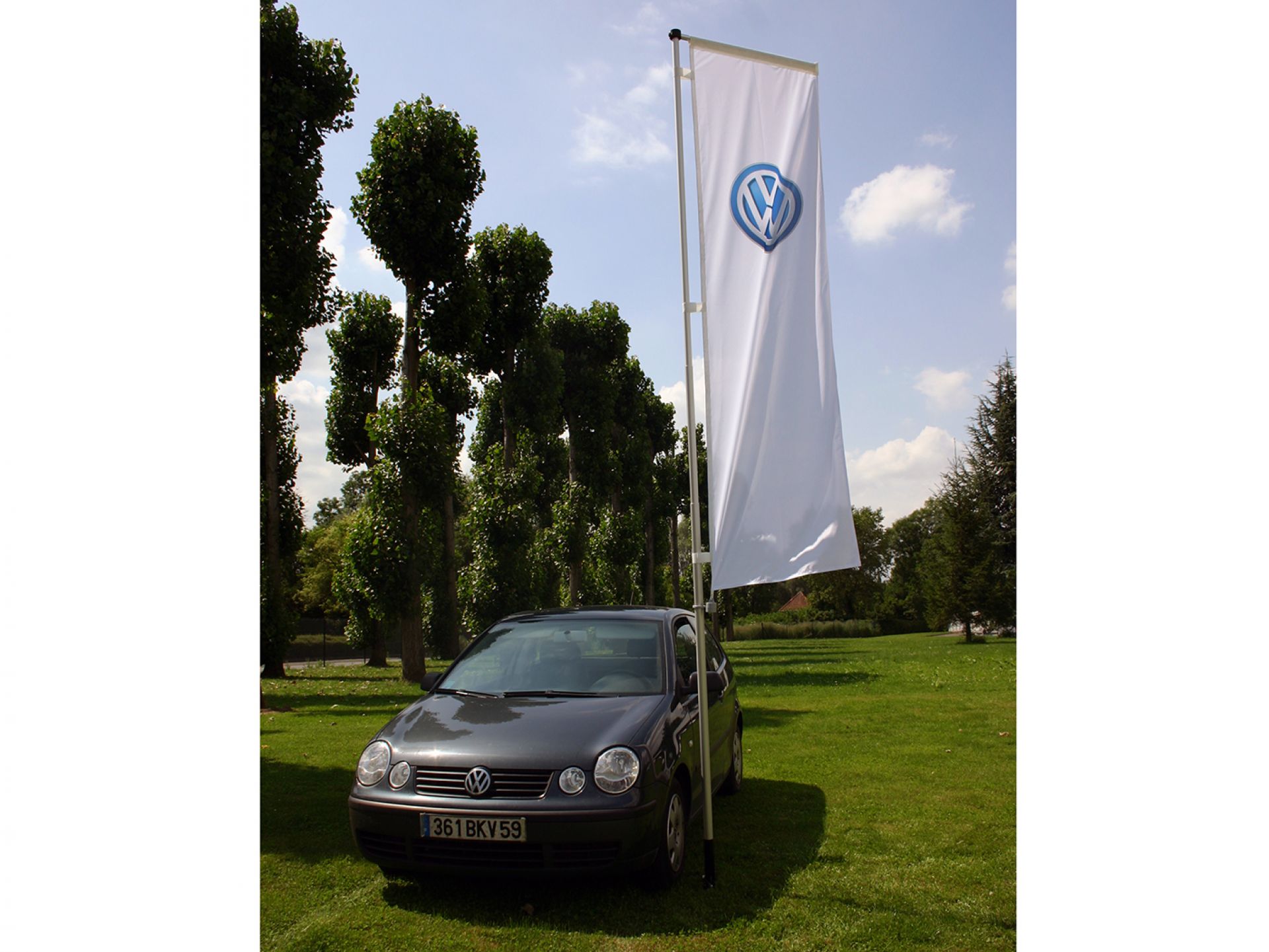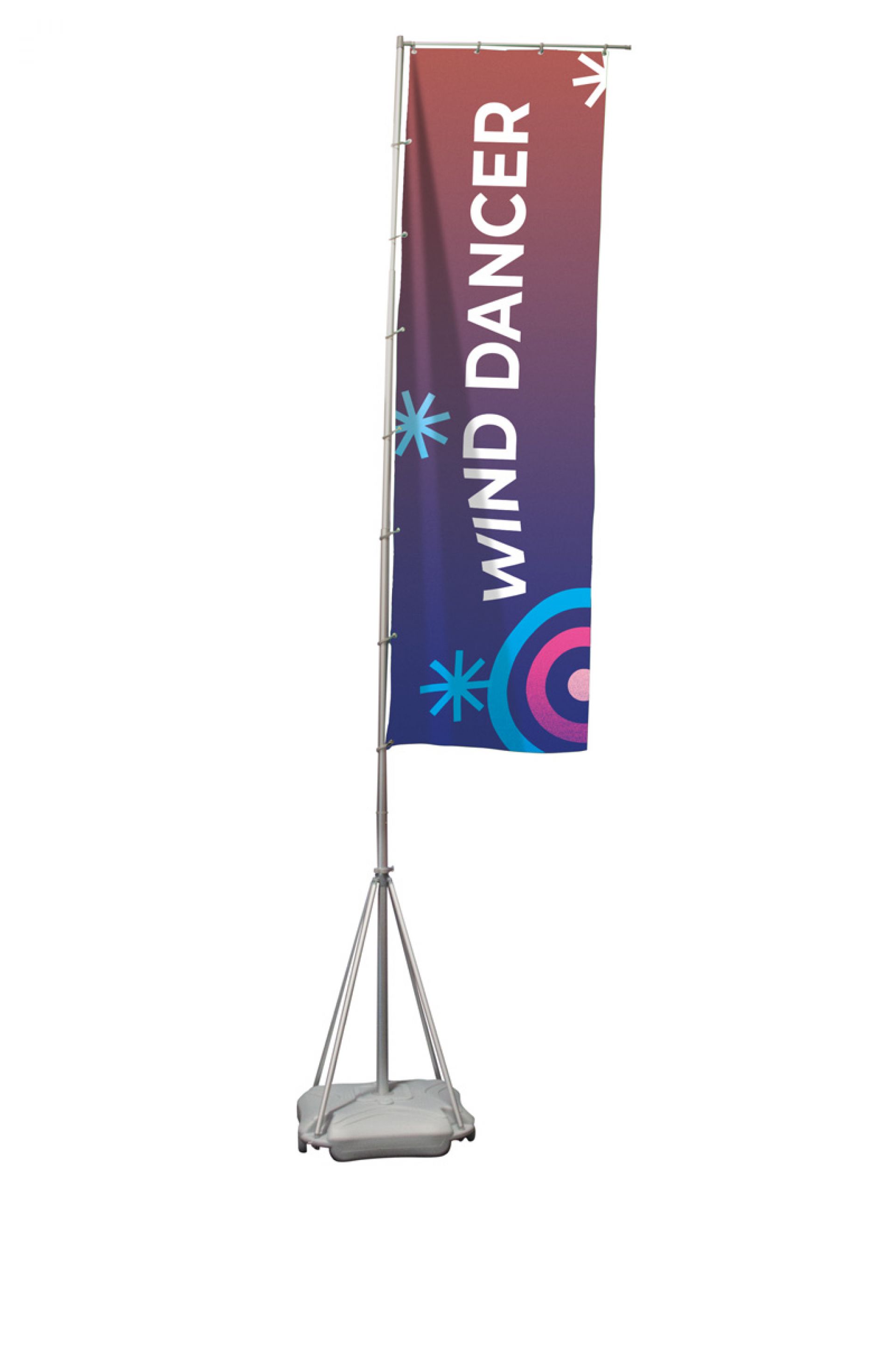 Wind Dancer est un drapeau pouvant se déployer jusqu'à 5 mètres de haut.