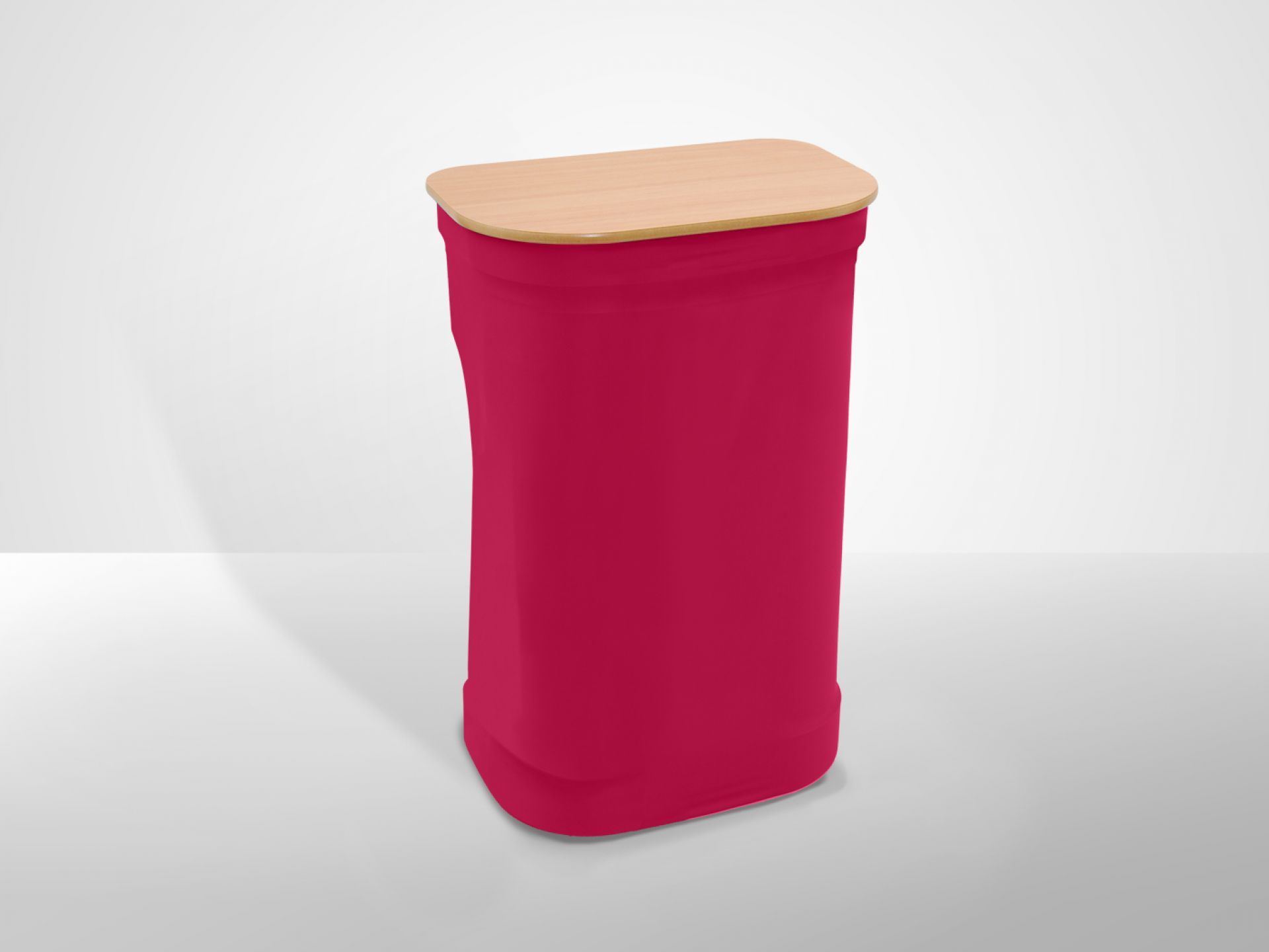 Aerobar est un comptoir d'accueil élégant, tendu de tissu imprimé par sublimation pour un rendu haute définition.
