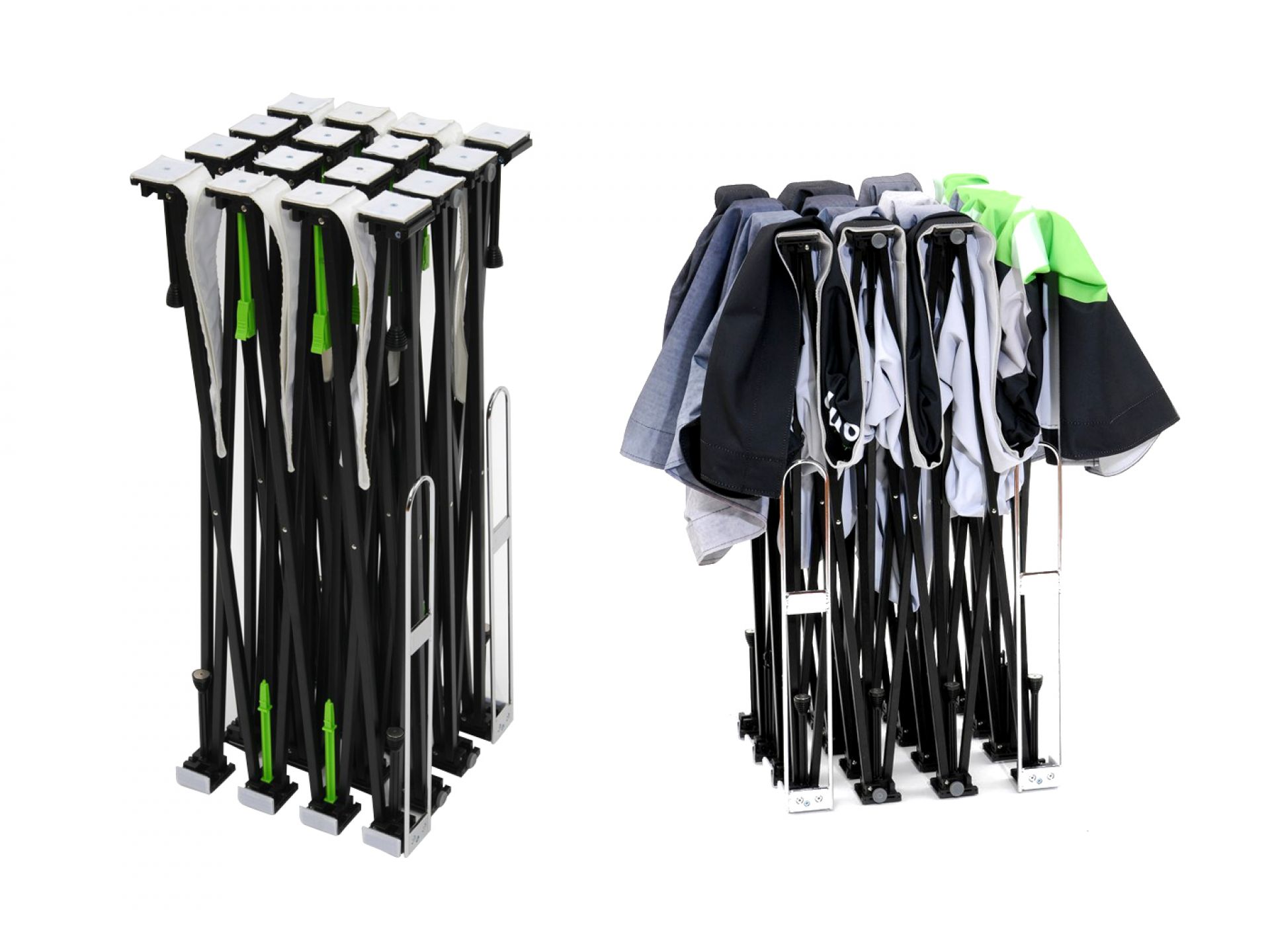 Déverrouiller le loquet, tirer sur la structure et celle-ci se déplie en un tour de main.