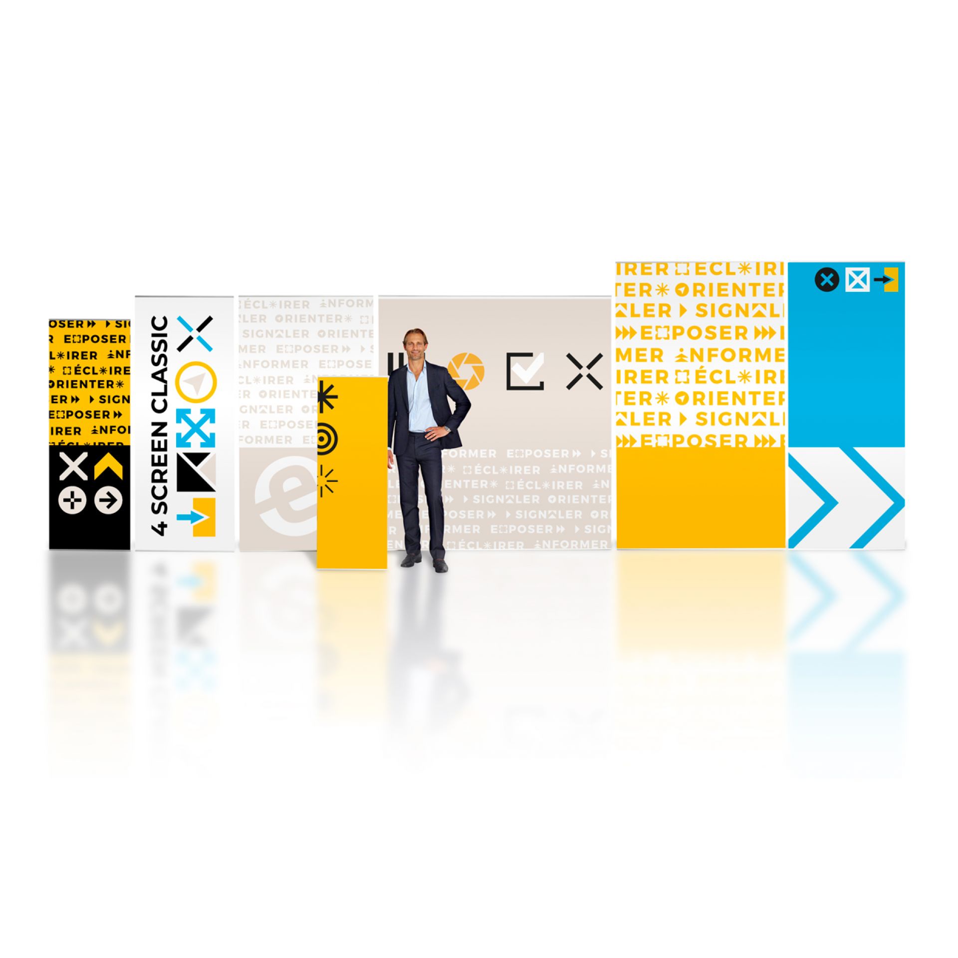 Le 4 Screen Classic est un totem très utile pour votre communication que ce soit lors de salons, expositions ou tout événement promotionnel en intérieur.