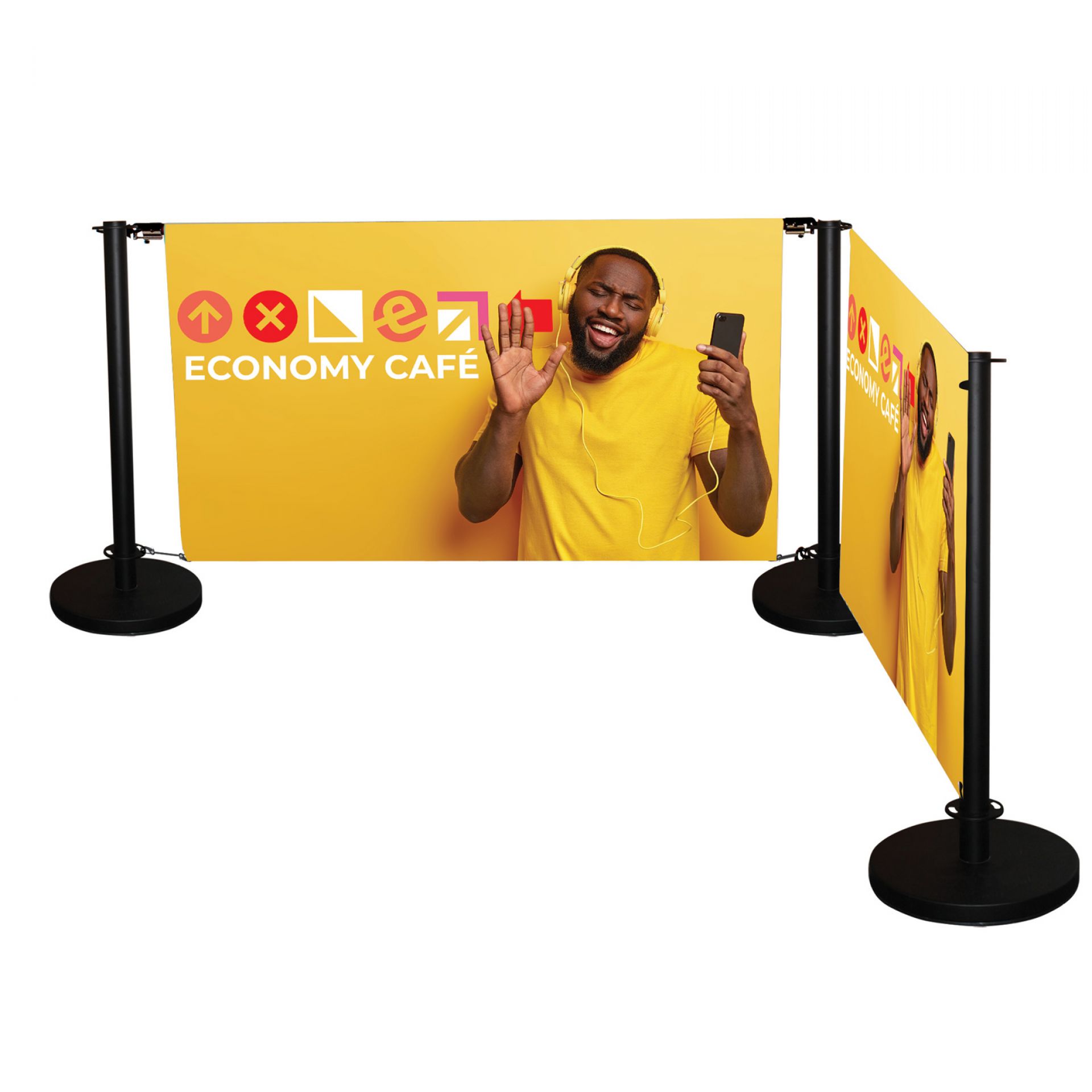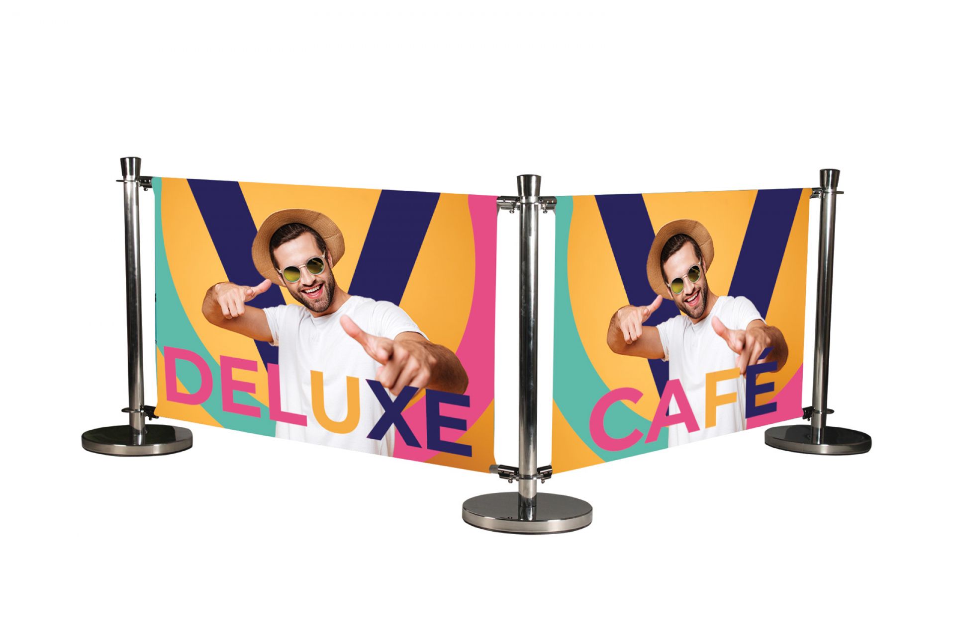 La barrière Deluxe Café permet de délimiter des espaces en toute élégance, et en personnalisant le visuel (option).