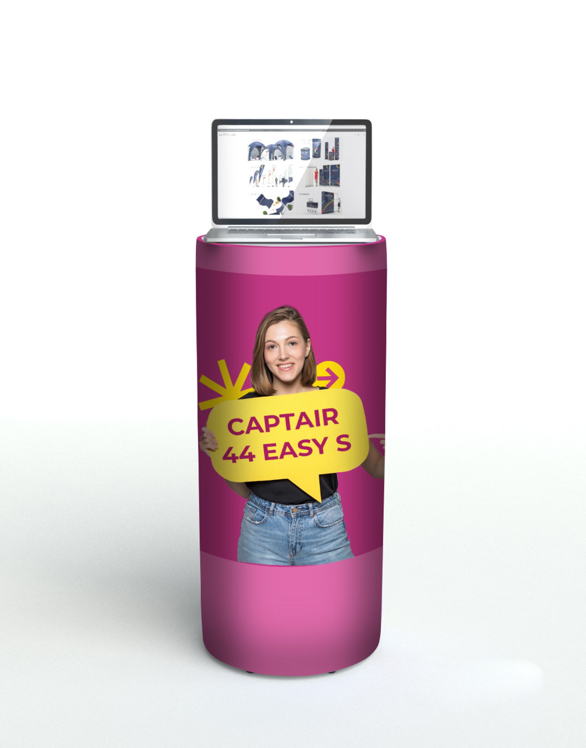 Le C Air² est un comptoir dans la lignée des stands parapluie textiles, au montage et au démontage rapides et intuitifs. Lors de vos salons, séminaires, ou tout autre événement intérieur, ce comptoir vous permettra d'accueillir vos clients et de garder vos outils à portée de main grâce à son étagère interne.