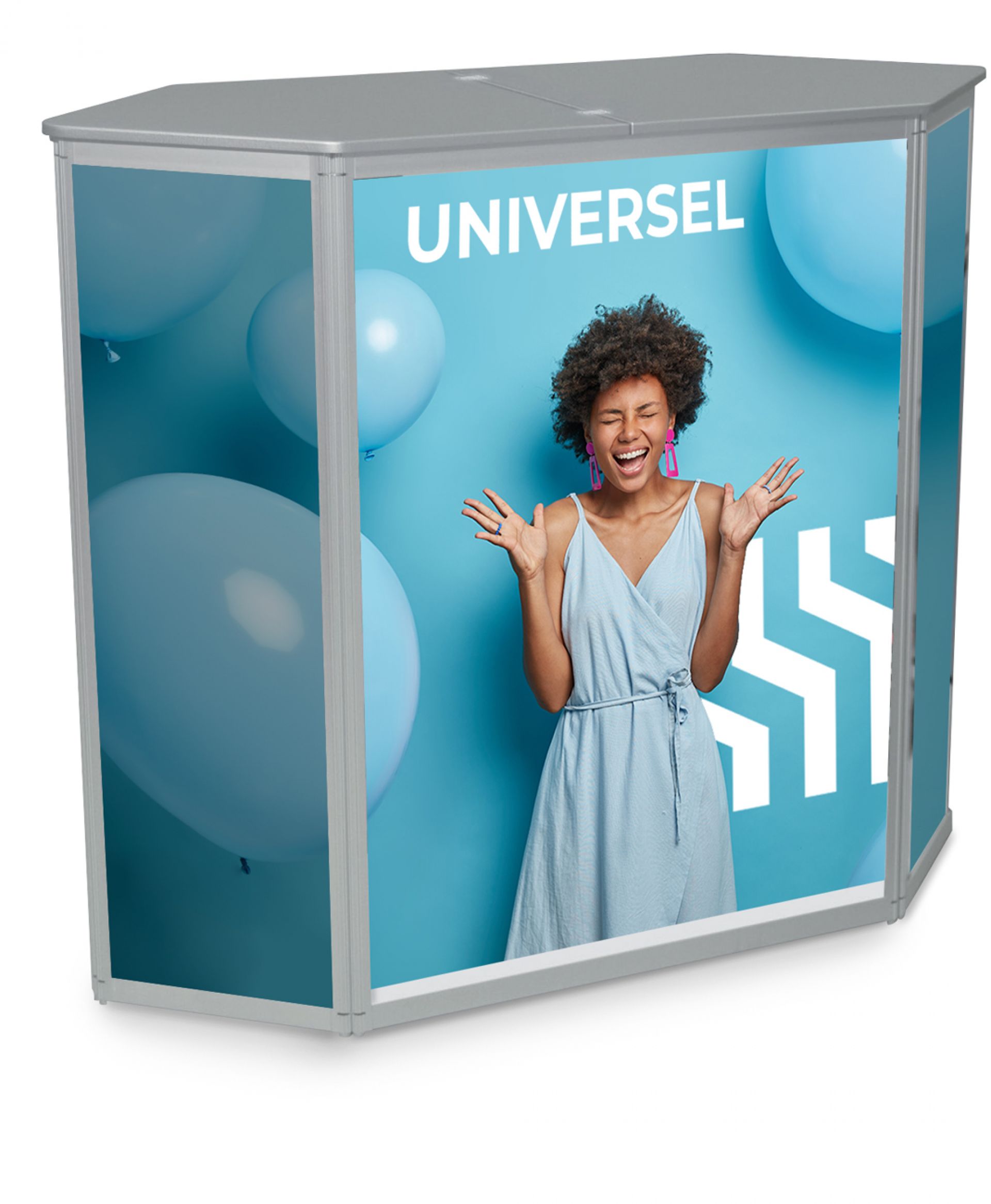 Le comptoir universel offre un point de rendez-vous naturel sur votre stand, tout en mettant bien en valeur votre marque lors de vos événements en intérieur.