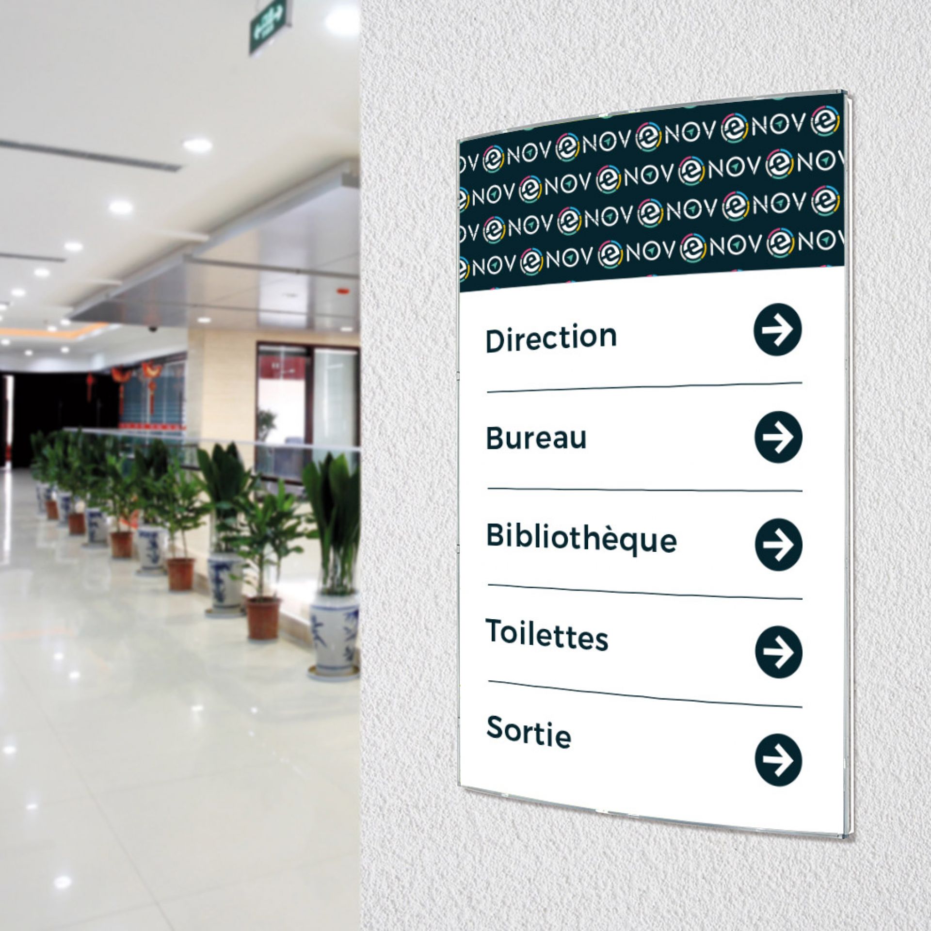 Disponible en plusieurs formats et avec un visuel 100% personnalisable, le totem mural en tôle pliée s’intègre harmonieusement à votre environnement et peut être utilisé aussi bien pour la signalétique directionnelle, l’affichage institutionnel que la mise en valeur de votre identité visuelle.