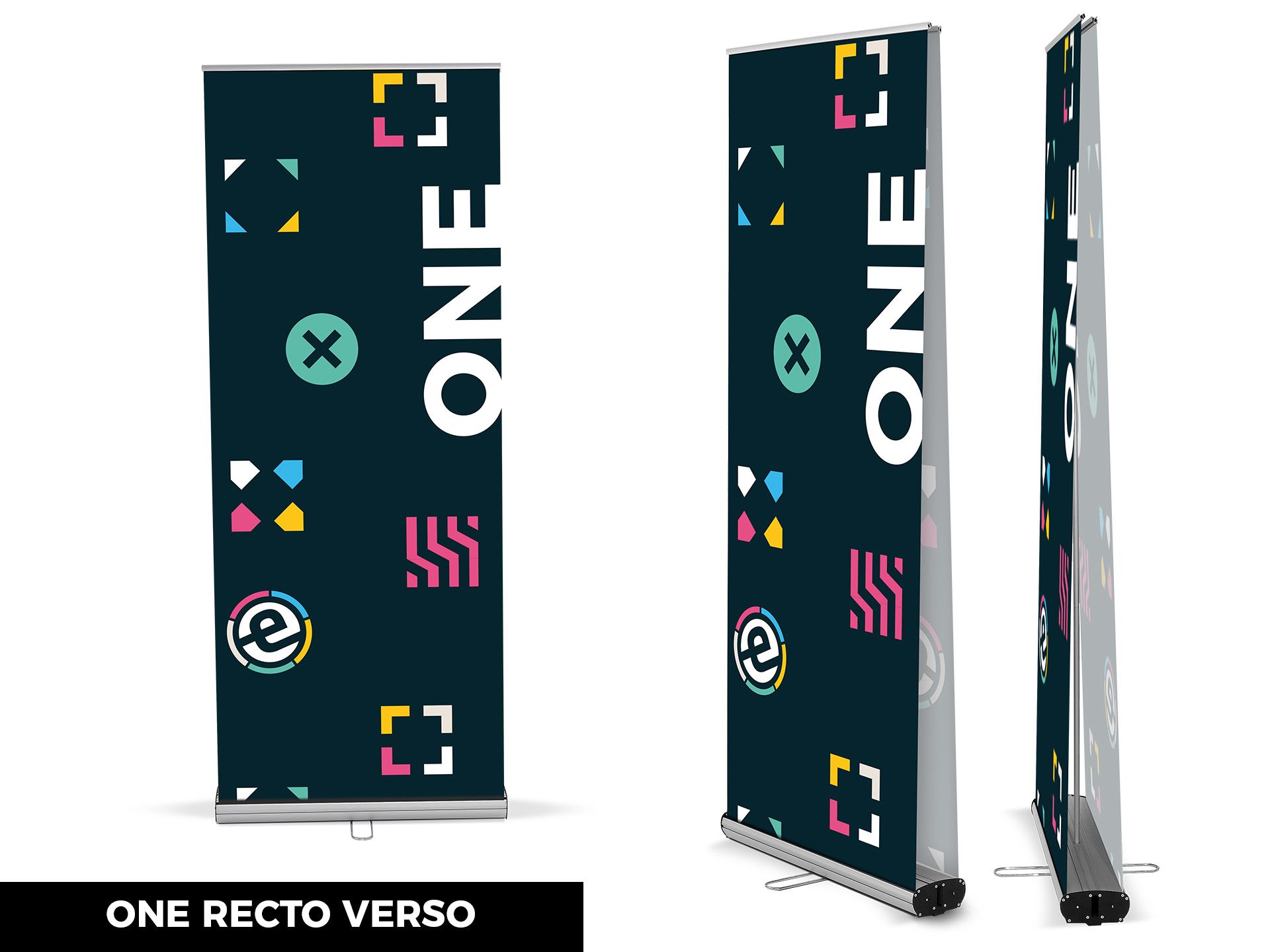 Le Duo Set est un totem enrouleur tout terrain, idéal pour vos conventions, congrès ou séminaires.