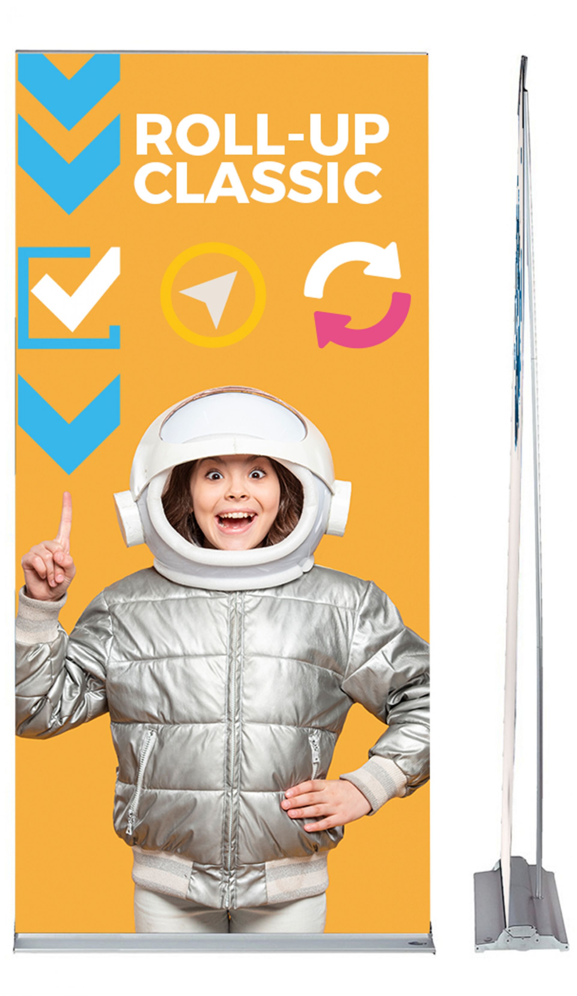 Le totem enrouleur Roll up classic est idéal pour une utilisation soutenue sur tous vos événements en intérieur : salons, expositions...