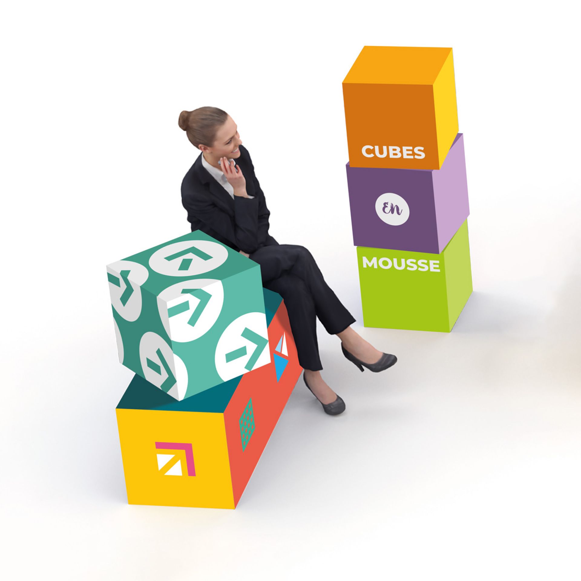 Ces cubes en mousse haute densité sont ludiques et permettent une personnalisation sur chaque face.