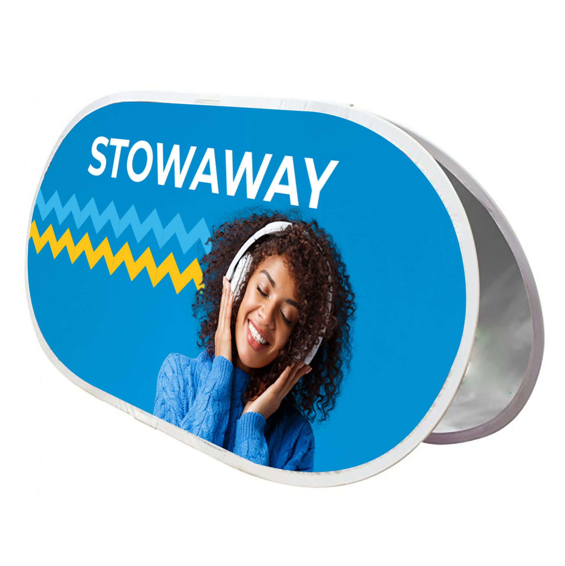 Support original et ludique, Stowaway se déploie en quelques secondes pour afficher votre message.