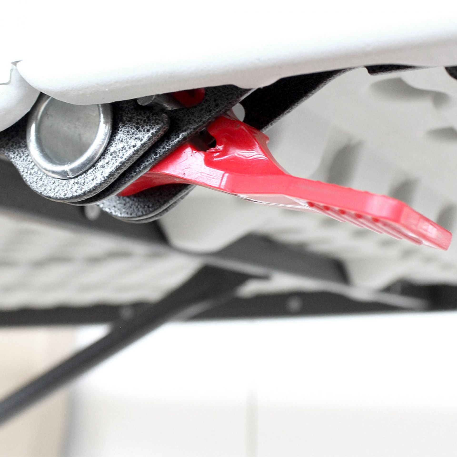 Déverrouiller le loquet, tirer sur la structure et celle-ci se déplie en un tour de main !