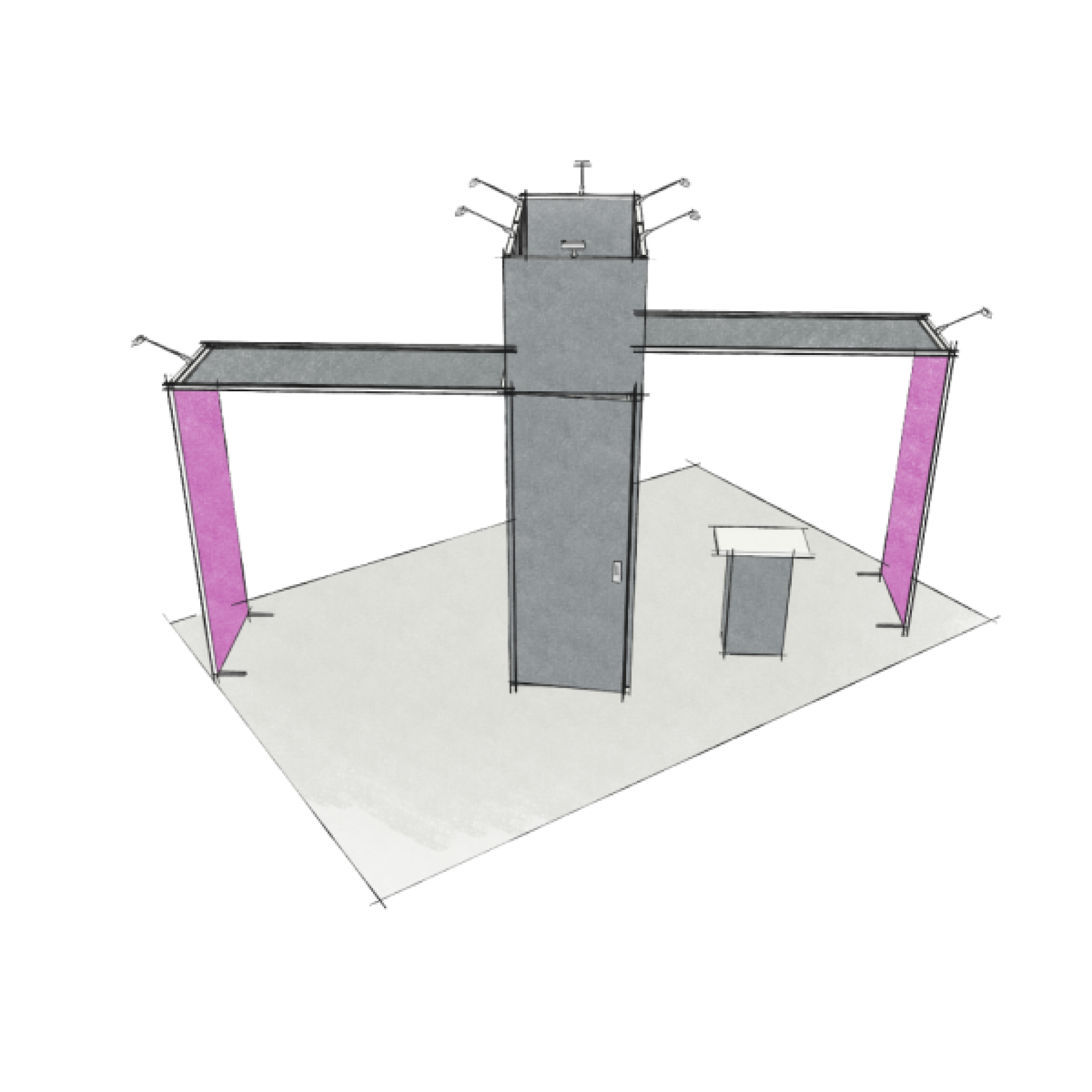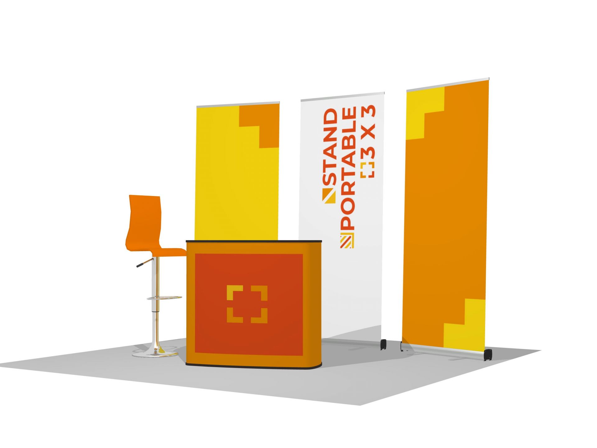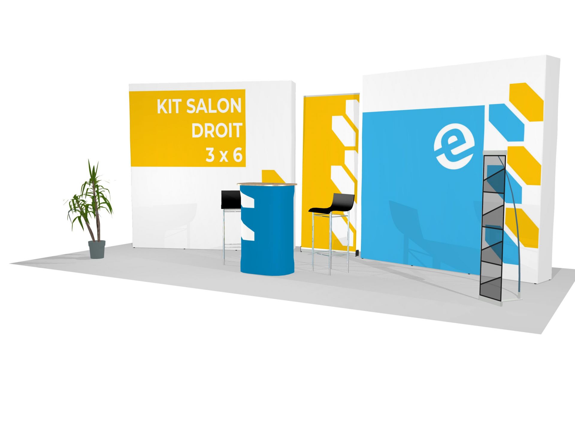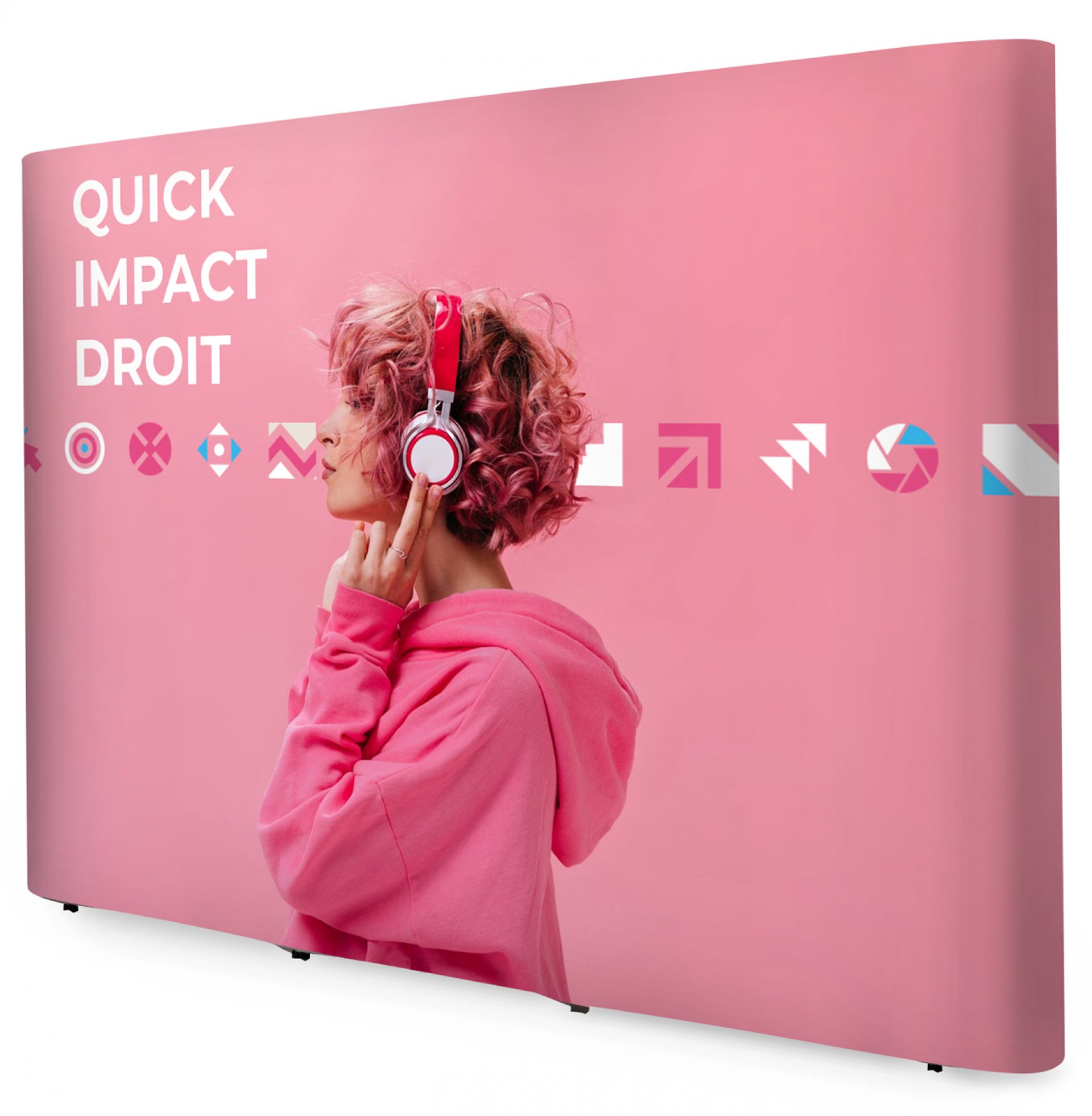 Le Quick Impact Droit est une variante du stand parapluie traditionnel courbe. Idéalement utilisée comme fond de stand, ou photocall lors de salons.
