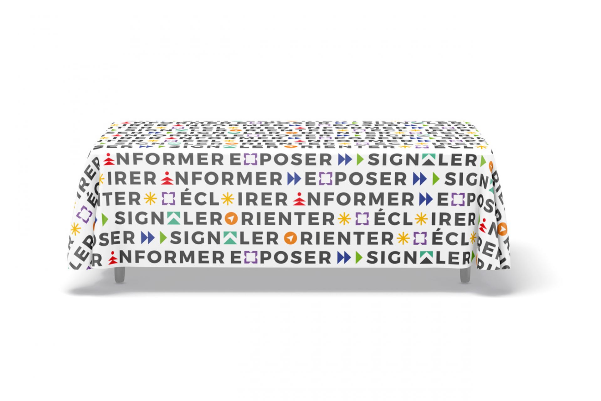 Expocom se charge de la personnalisation, de l'impression couleur haute définition et de la confection de votre visuel sur textile.
