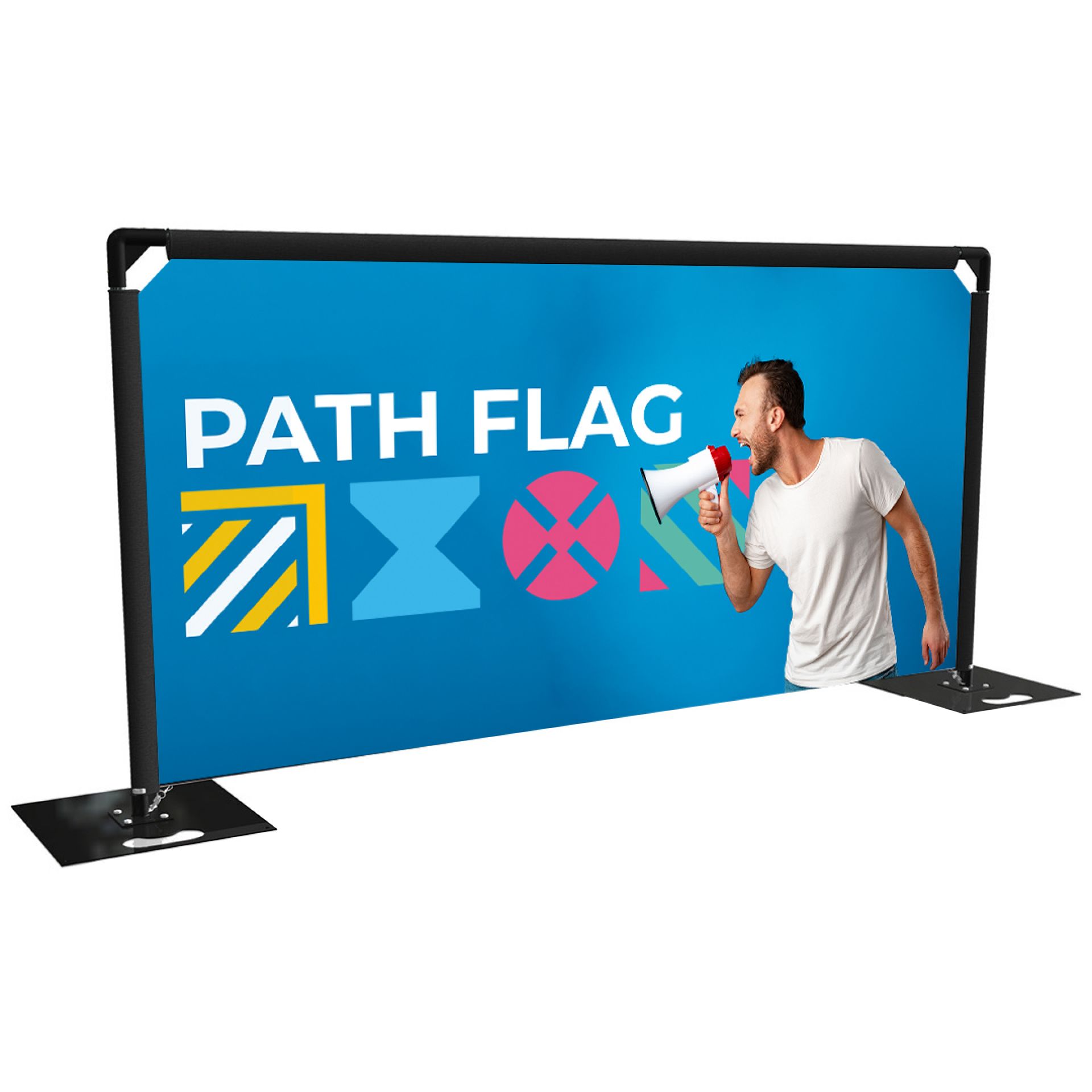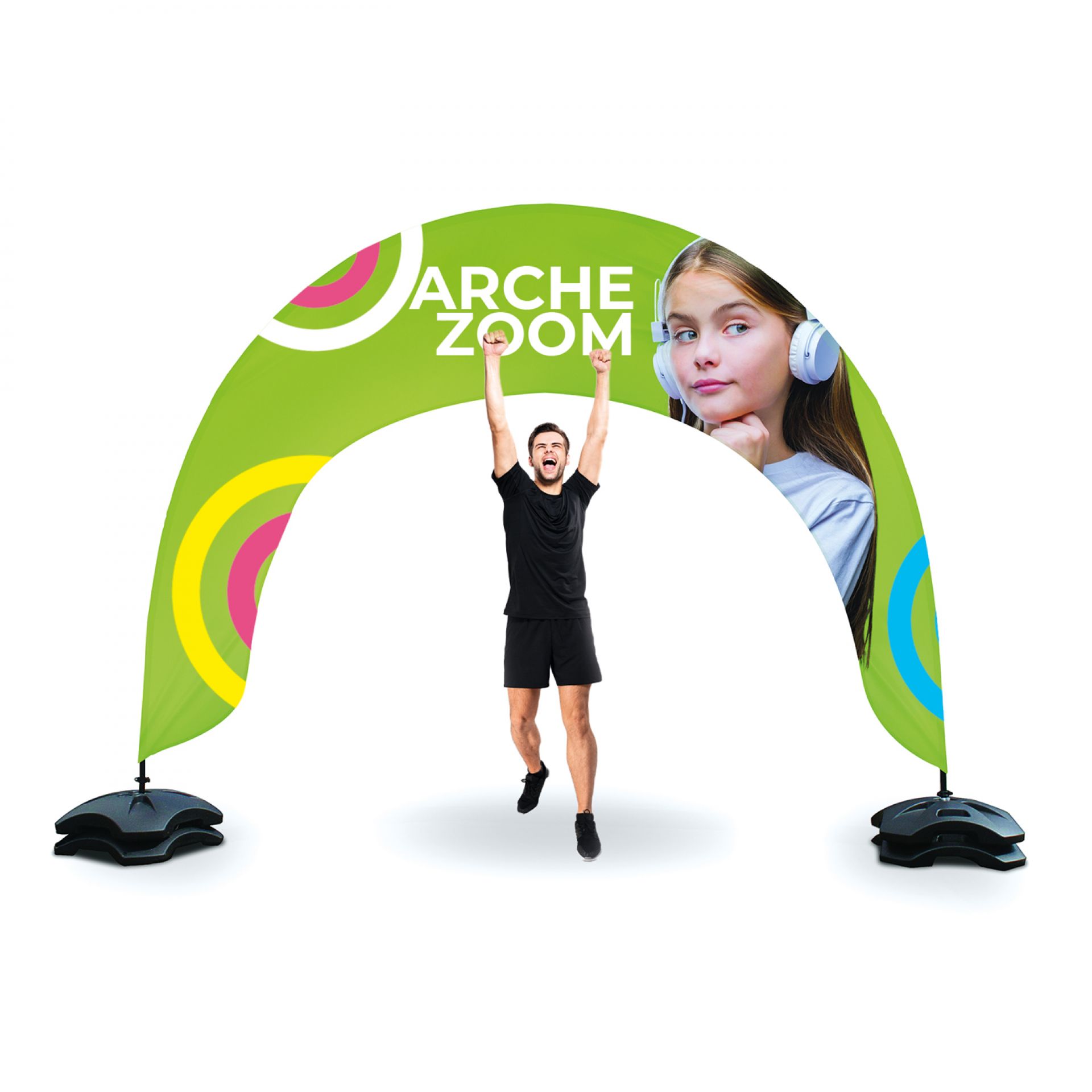 Arche Zoom est un drapeau en forme d’arche, parfaitement adapté pour définir des entrées lors de manifestations sportives ou évènementielles.