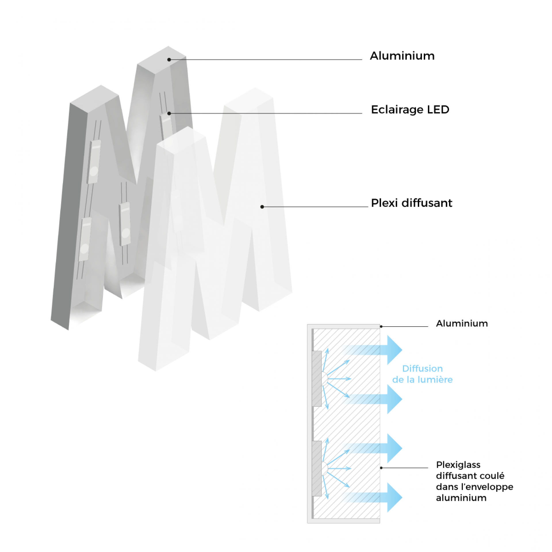 Le visuel est imprimé sur des panneaux Reynobond d’épaisseur 3 mm.