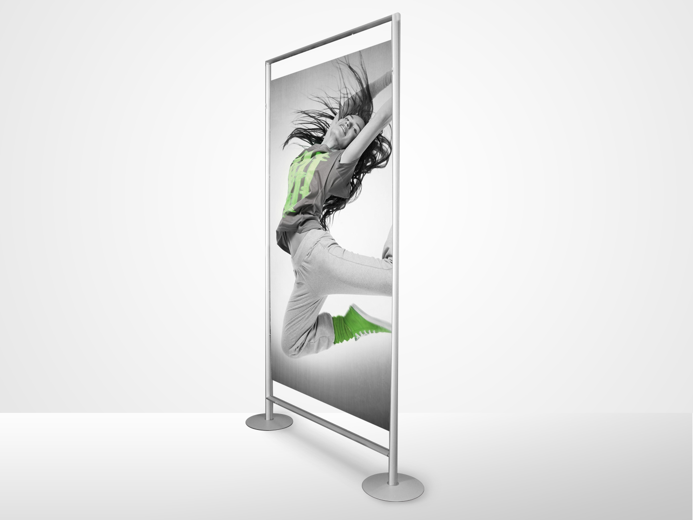 Le Simple Screen est une structure porte-bâche destinée à mettre en valeur un visuel lors d'expositions, de campagnes publicitaires ou d'évènements. Une alternative idéale dans tous les lieux où la fixation et la suspension ne sont pas possibles.