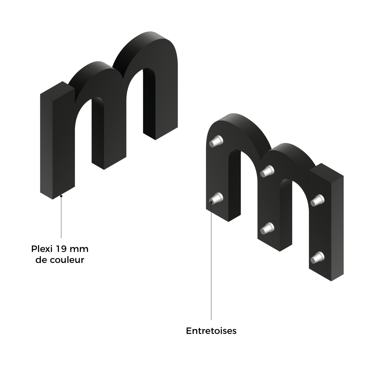Réalisé en Dibond, ce totem allie rigidité, planéité parfaite et résistance aux intempéries, ce qui en fait un support particulièrement adapté aux environnements intérieurs comme extérieurs.