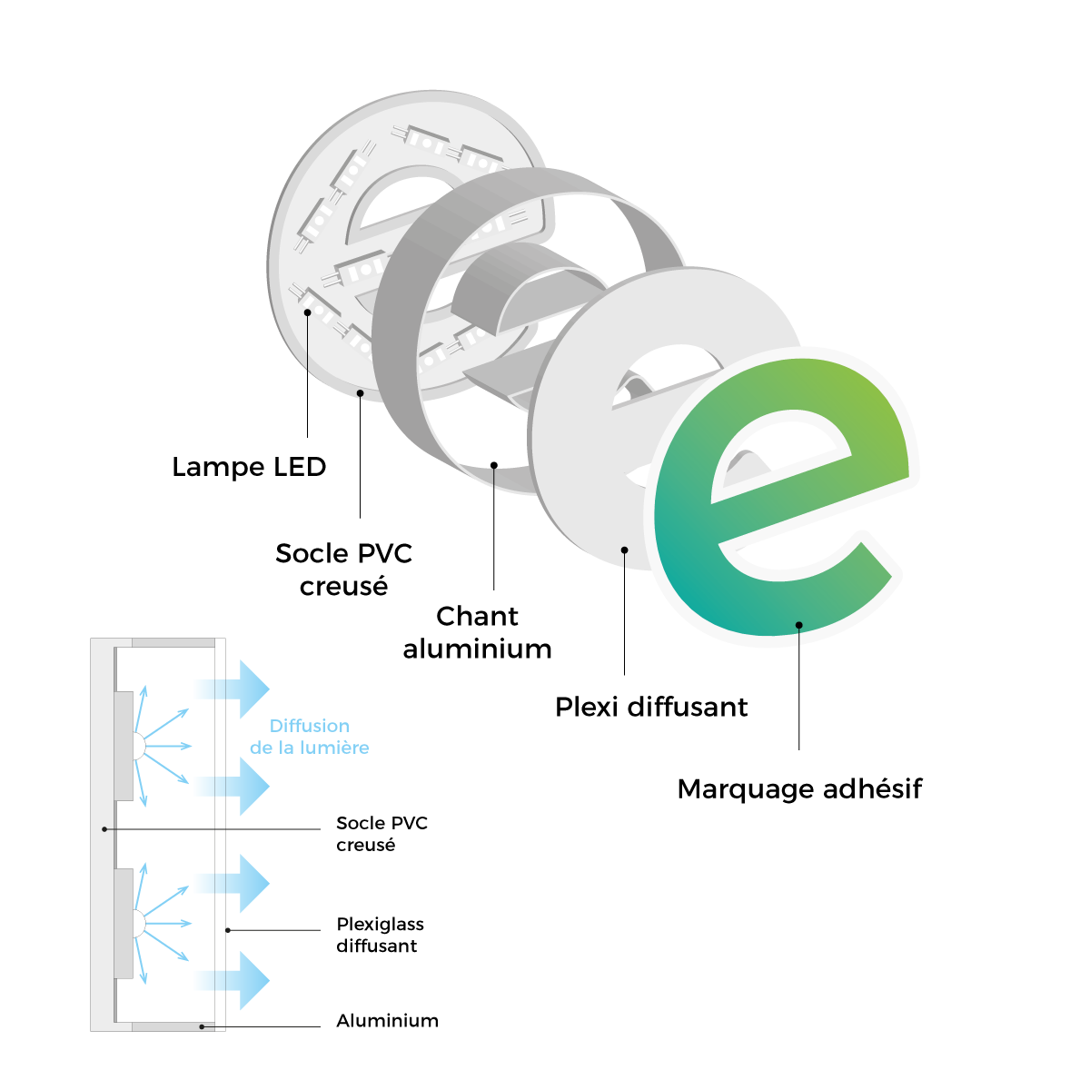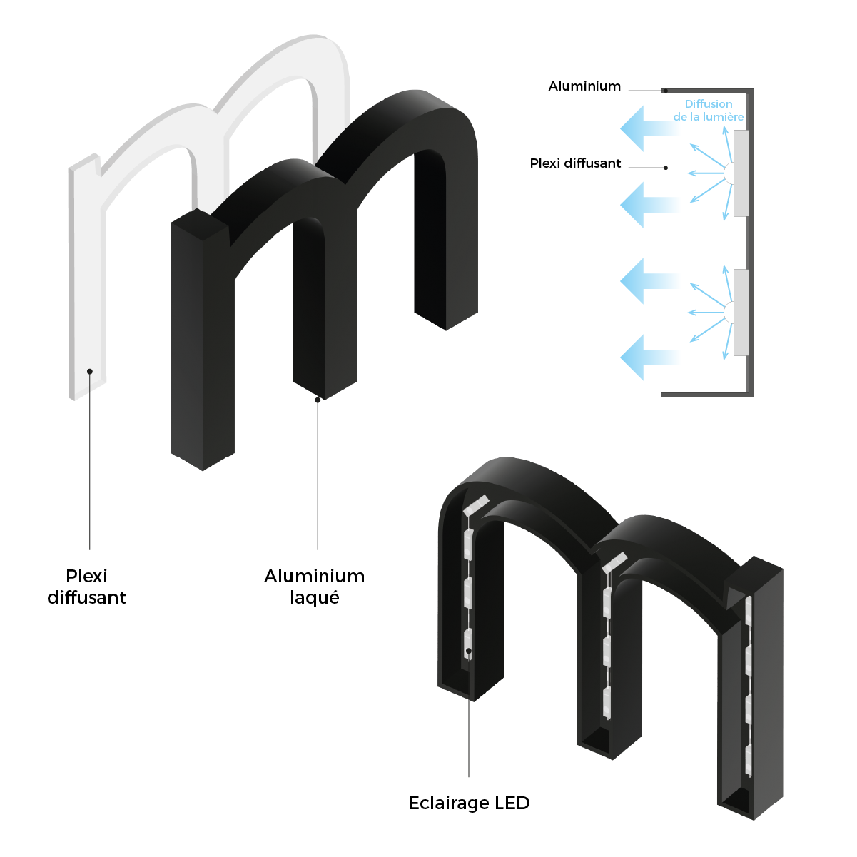Le visuel est imprimé sur des panneaux Reynobond d’épaisseur 3 mm.